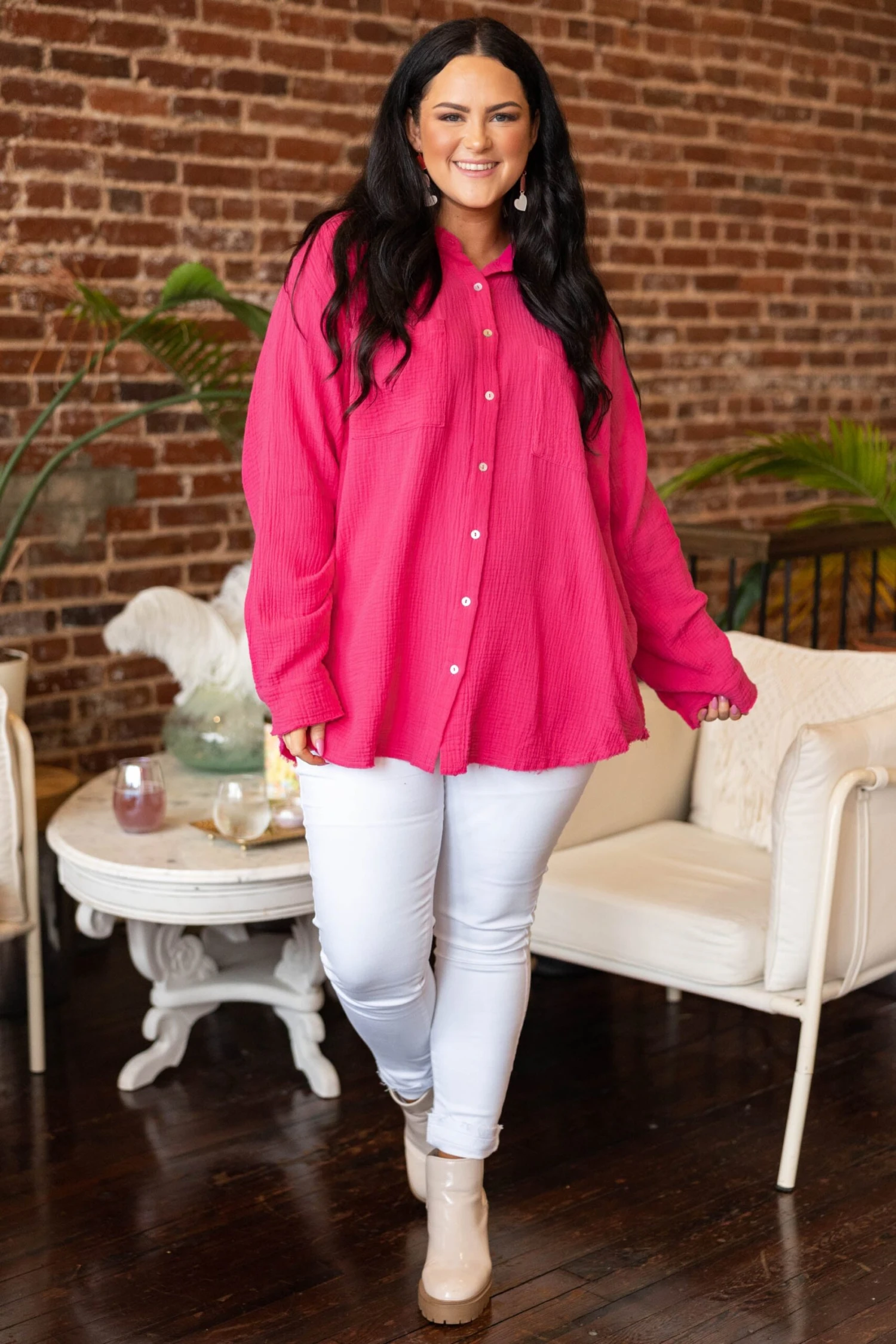 You’ll want to grab this beauty and take it with you on your next trip! It has a bold fuchsia color with a relaxed flowy fit that us so easy to pair with all of your faves! Simply style this top with some skinnies and boots for a chic everyday look!