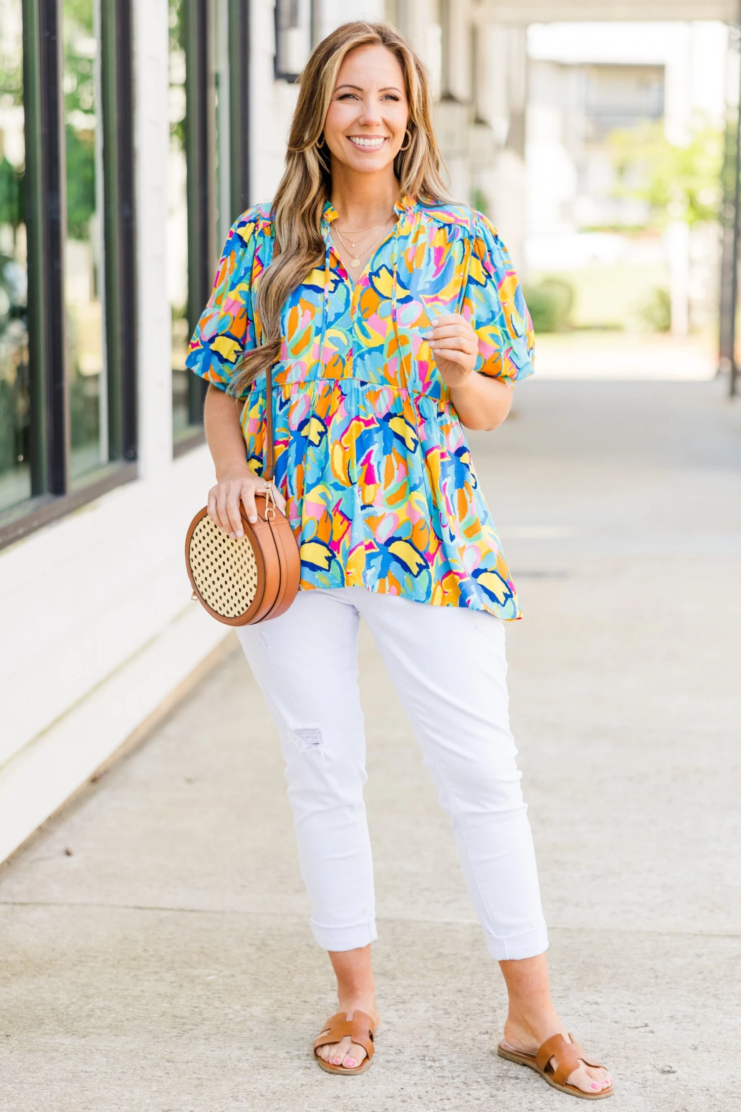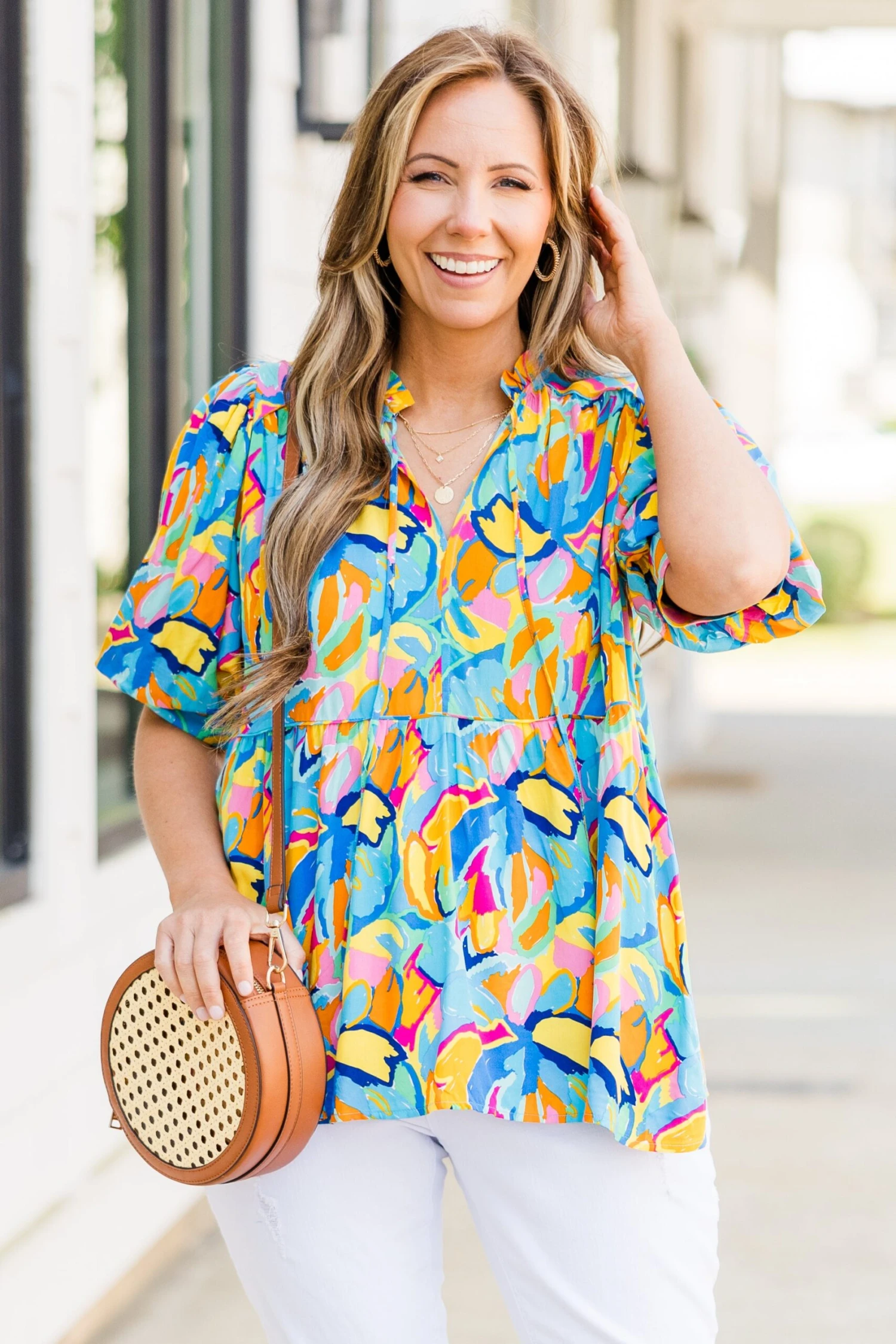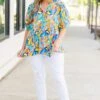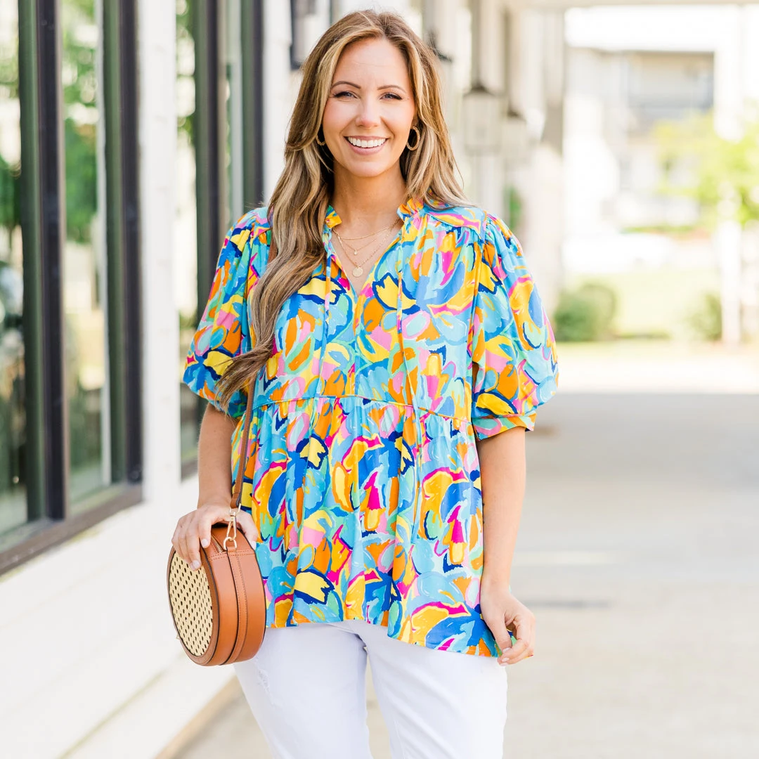 We are so in love with this gorgeous top! It features a lovely blue color mix and a playful babydoll design that is perfect for the season! The gorgeous floral pattern and charming bubble sleeves are a fashion staple! It’s sure to bring a smile to your face and add a touch of whimsy to your wardrobe!