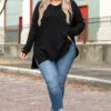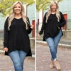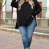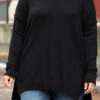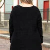 You will feel better when this sweater is in your closet! It is incredibly soft, long line, a classic black color, and has a textured striped back. Pair this with skinnies and booties for an effortlessly chic style!