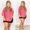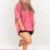 Do yourself a favor and grab this casual cutie! This top has an ash pink color that is perfect for the season! The comfy, flattering fit is great for all day wear throughout the season! Pair this top with shorts or skinnies for an easy, every day look!