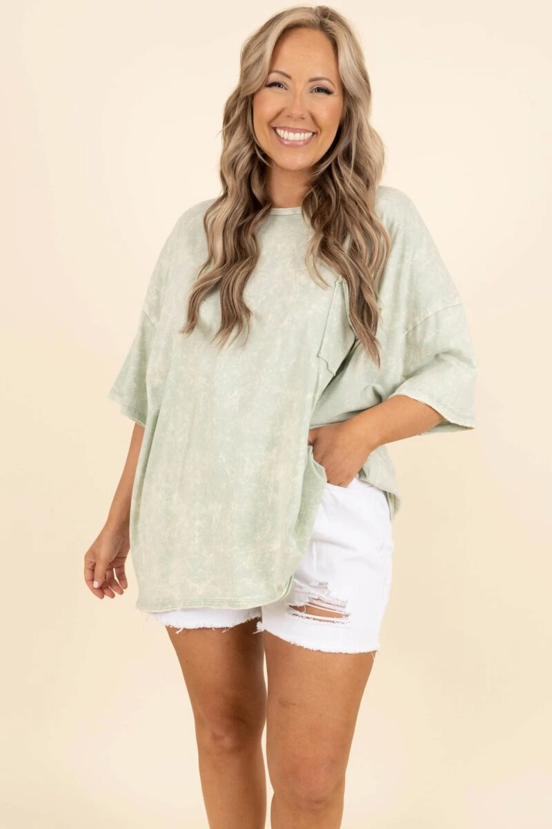 Do yourself a favor and grab this casual cutie! This top has a green mint color that is perfect for the season! The comfy, flattering fit is great for all day wear throughout the season! Pair this top with shorts or skinnies for an easy, every day look!