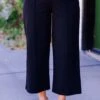 Introducing our I’m Still Standing Cropped Pants in classic black! These cropped wide leg pants feature a front seam detail for a sleek and flattering fit! Perfect for pairing with your favorite colorful blouse, these pants will elevate any outfit! Expertly designed for both style and comfort!