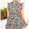 Break the mold in this dress! This babe has our fave floral pattern in a stunning navy color and a classic tiered style! The high neck collar with ruffle sleeves is right on trend right now and the tie at the waist accentuates all the best parts! Style this with some wedges and some gold accessories for the perfect look!