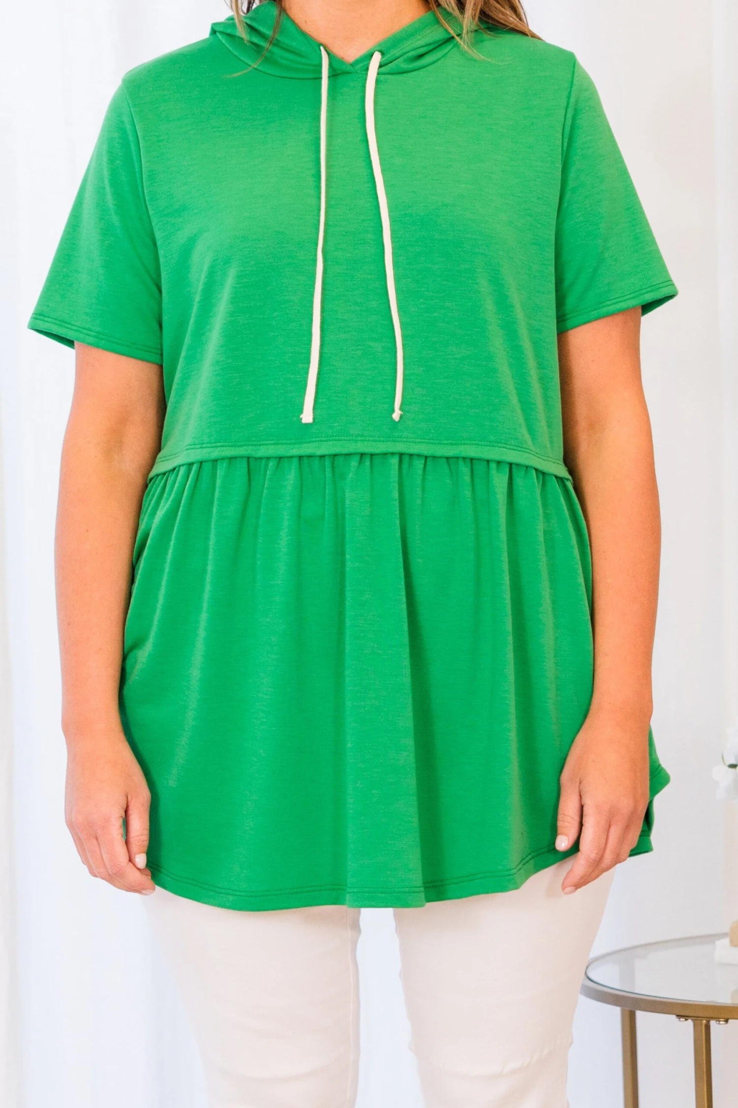 We simply adore this hoodie! The lovely kelly green color is perfect for the season! It offers a lightweight and stylish option for everyday wear! Pair it with your favorite denim or leggings for a casual yet chic look! The perfect choice for those who prefer comfort and fashion!