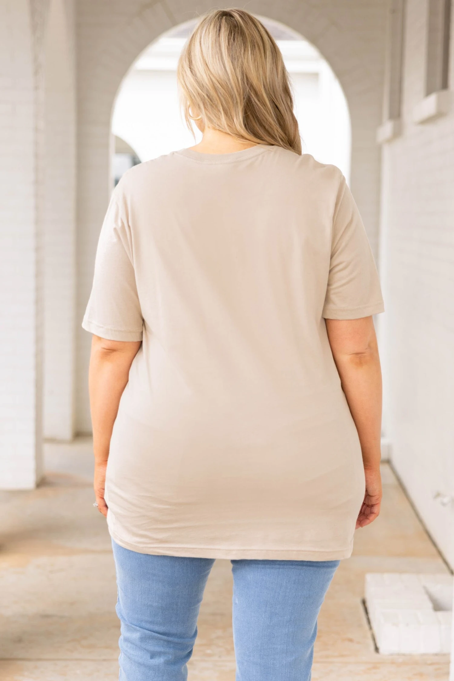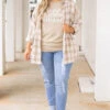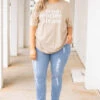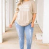 This top is perfect for the coffee lovers out there! The tan color is so cute and the graphic is so fun! Style these with skinnies and sandals for a casual chic look!