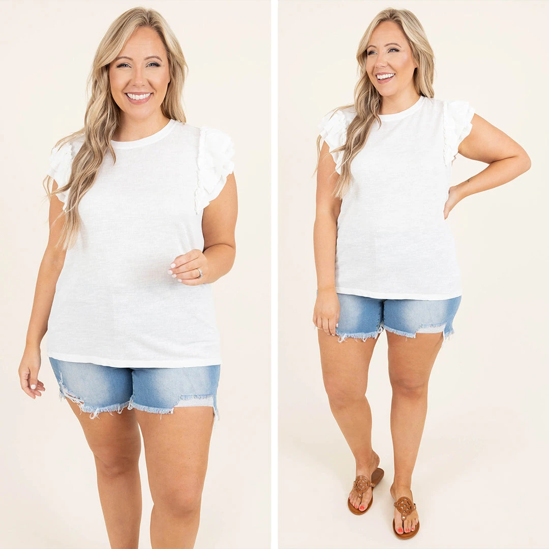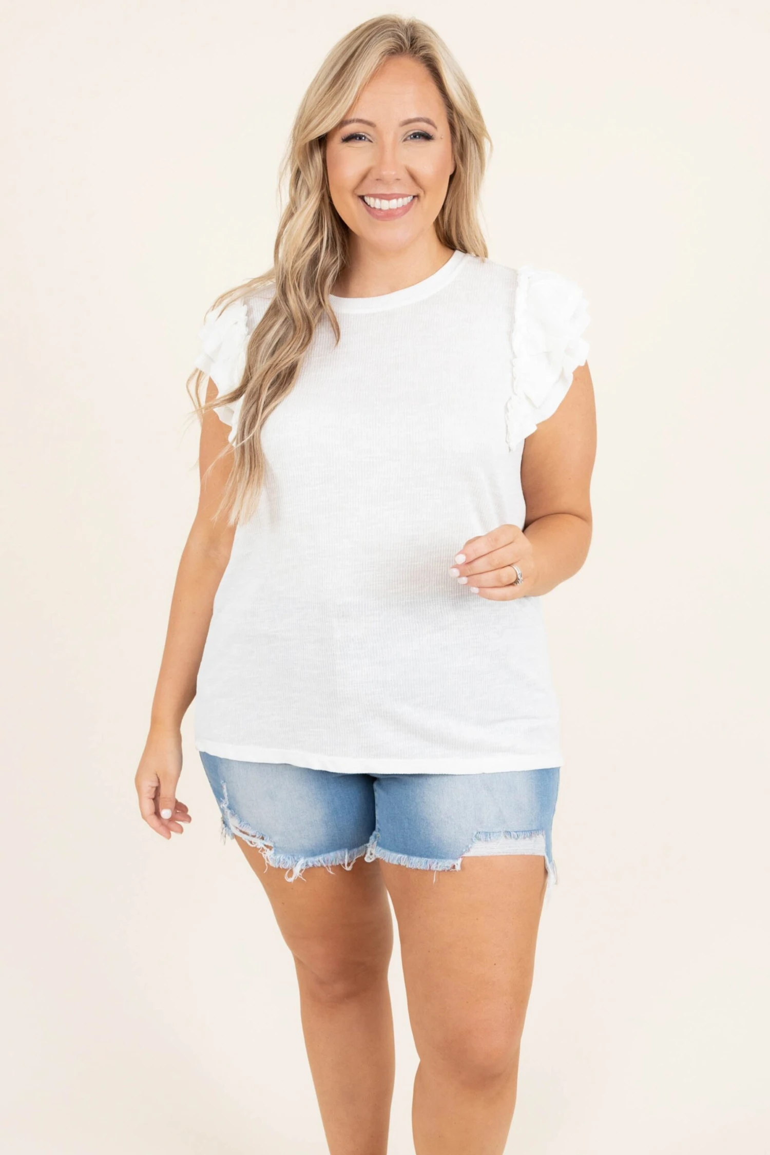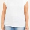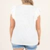 It’s definitely love with this tank! This cutie has a comfy ribbed material in a white color that you can easily dress up or down! The flutter sleeves are so sweet and make this perfect for a day at work or lunch with the girls! Style it with some jean shorts and sandals for the perfect look!