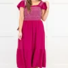 Say hello to this dress in wildberry! This dress features a smocked bodice, flutter sleeves, and functional pockets – perfect for those days when you want to look good and feel comfy at the same time! Who says you can’t have it all?!