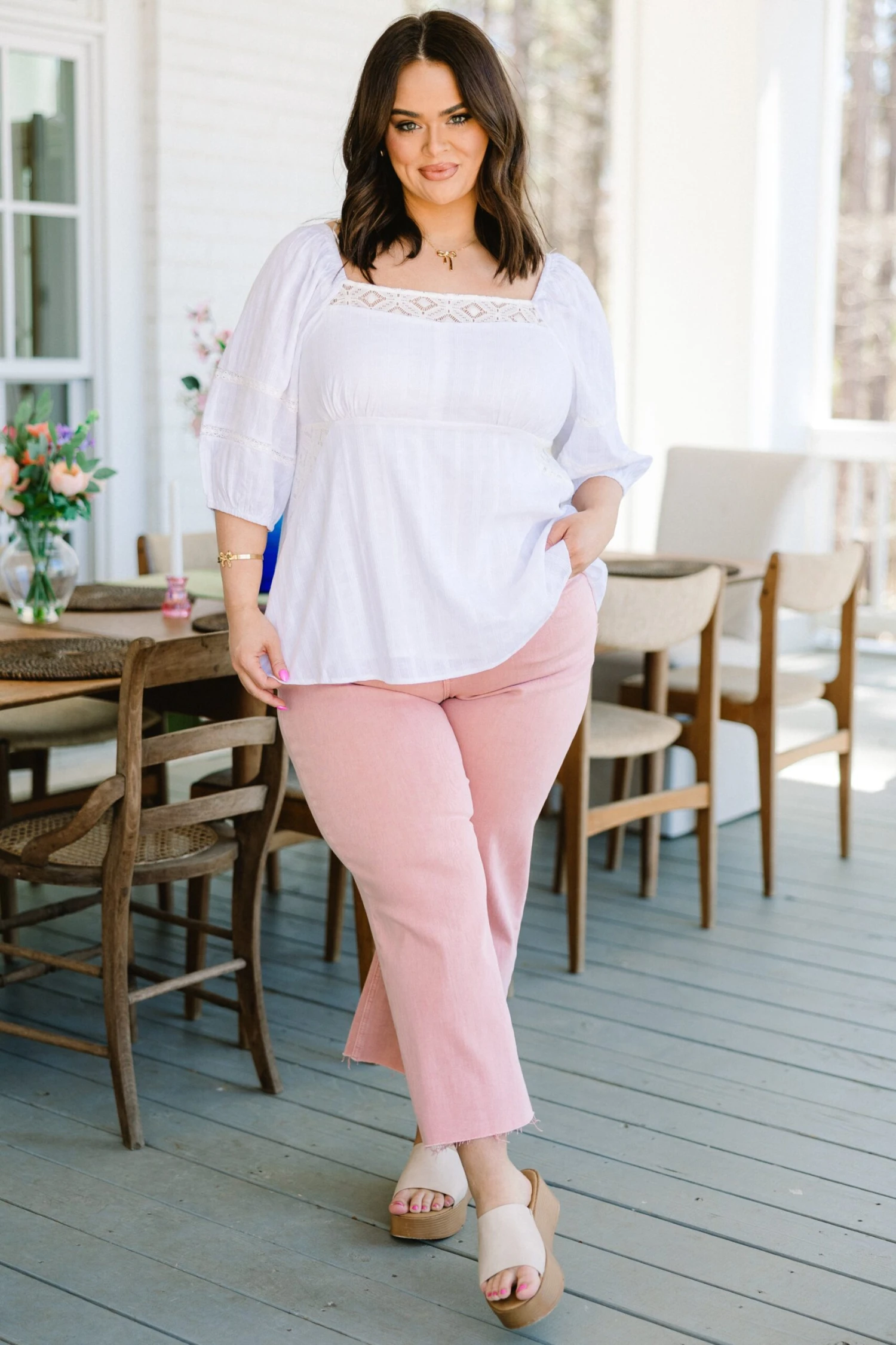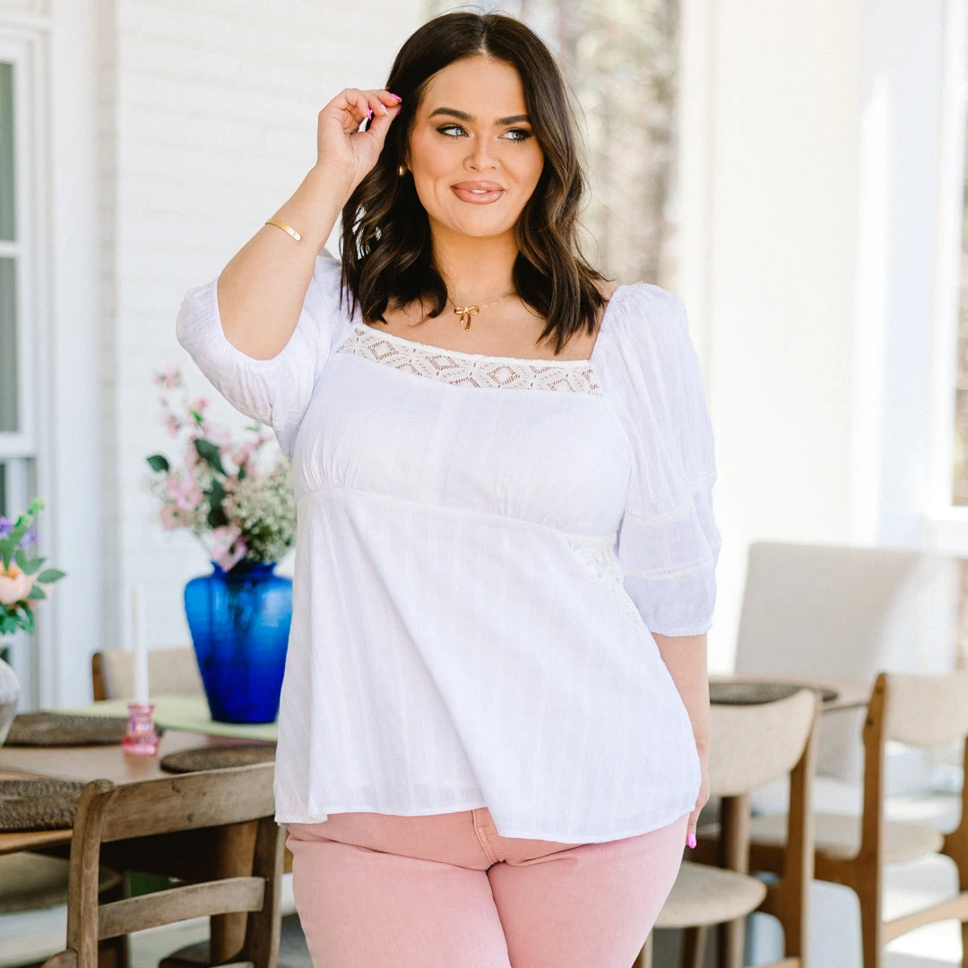 Love at first sight with this top! This sea salt beauty boasts a babydoll silhouette, lace accents, and a square neckline for a touch of elegance! The smocked back and elastic puff sleeves add a modern twist to this classic piece! Prepare to feel fabulous in this adorable top!