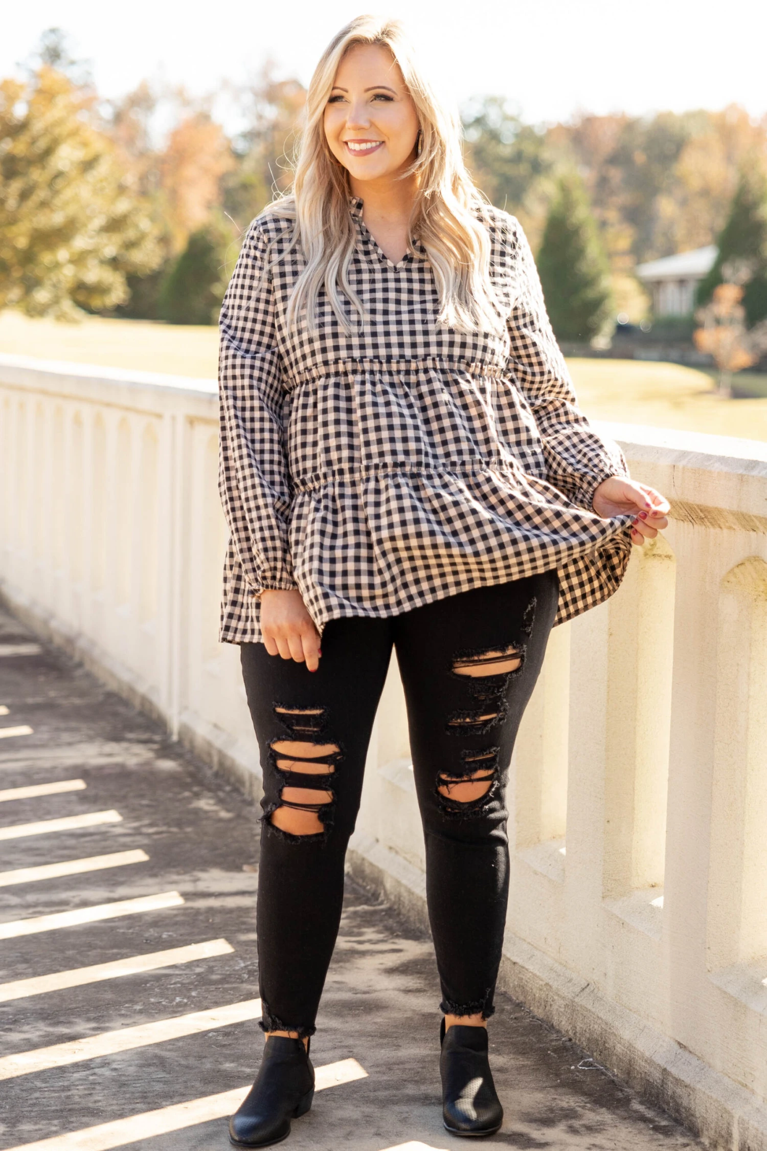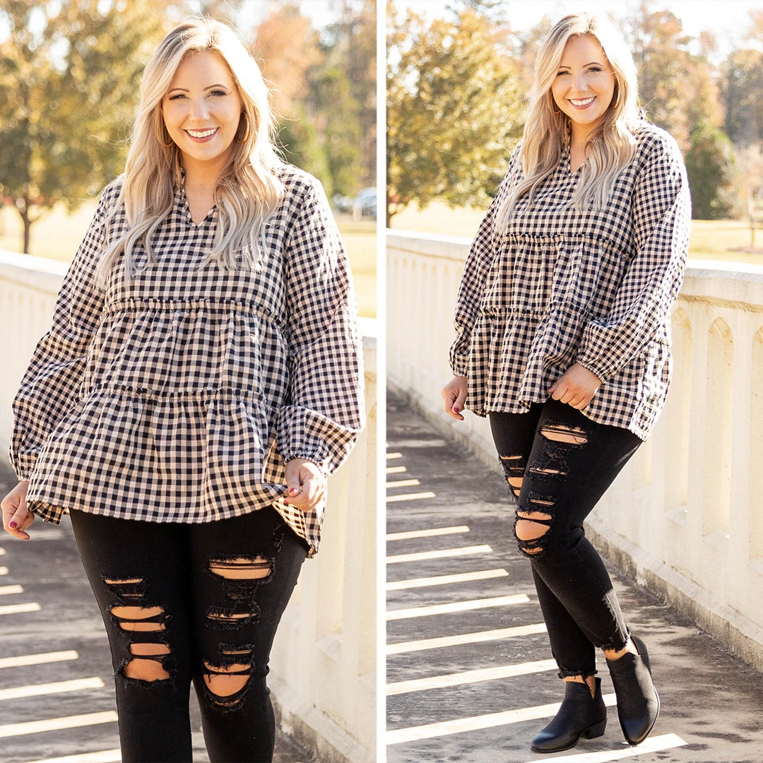 This top was special made, just for you! It has a classic gingham pattern with neutral colors you can style for every occasion! It’s comfortable for all-day wear, has a flowy fit, and features a flattering babydoll fit! Pair this top with skinnies and booties for an effortlessly chic look!Â
