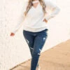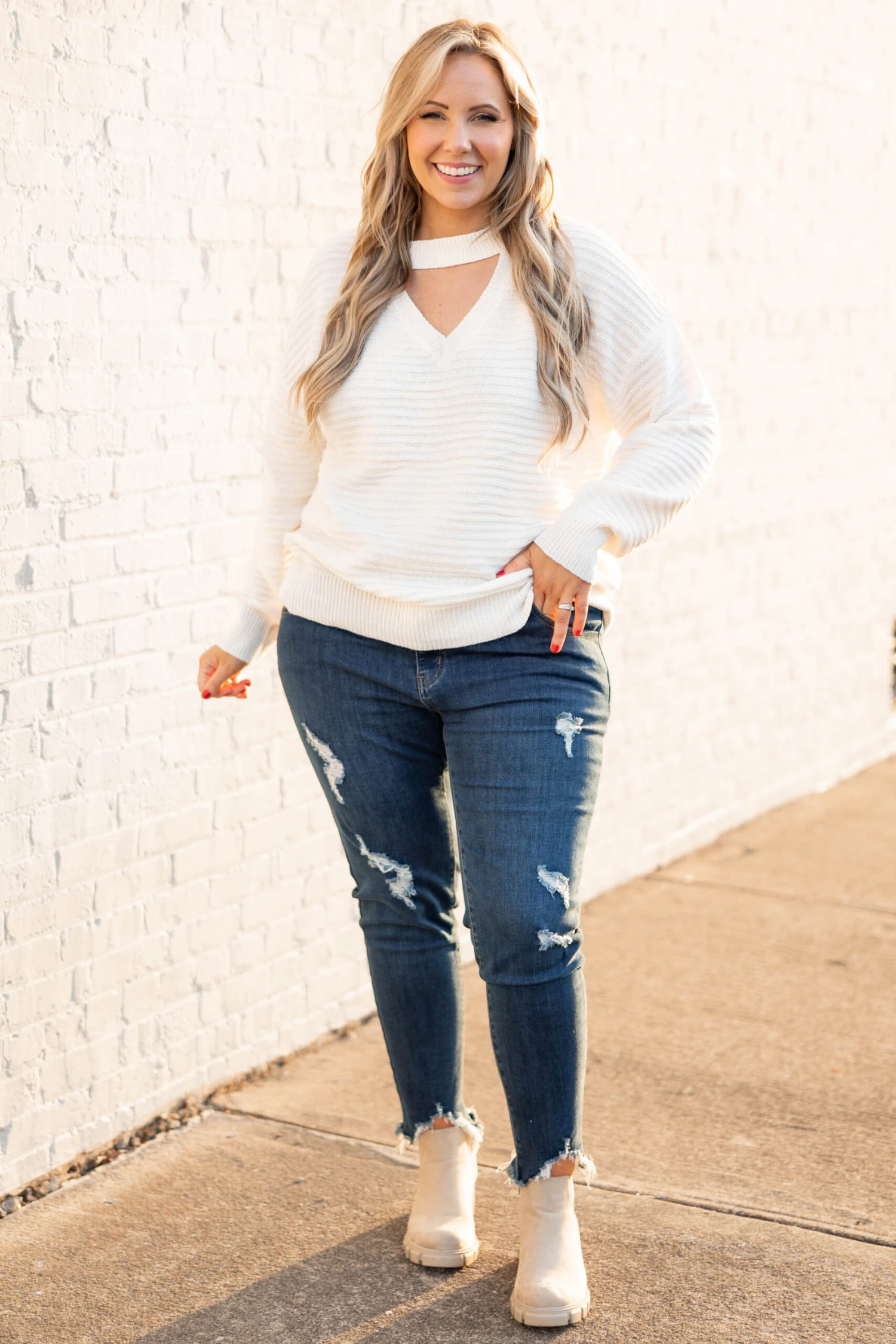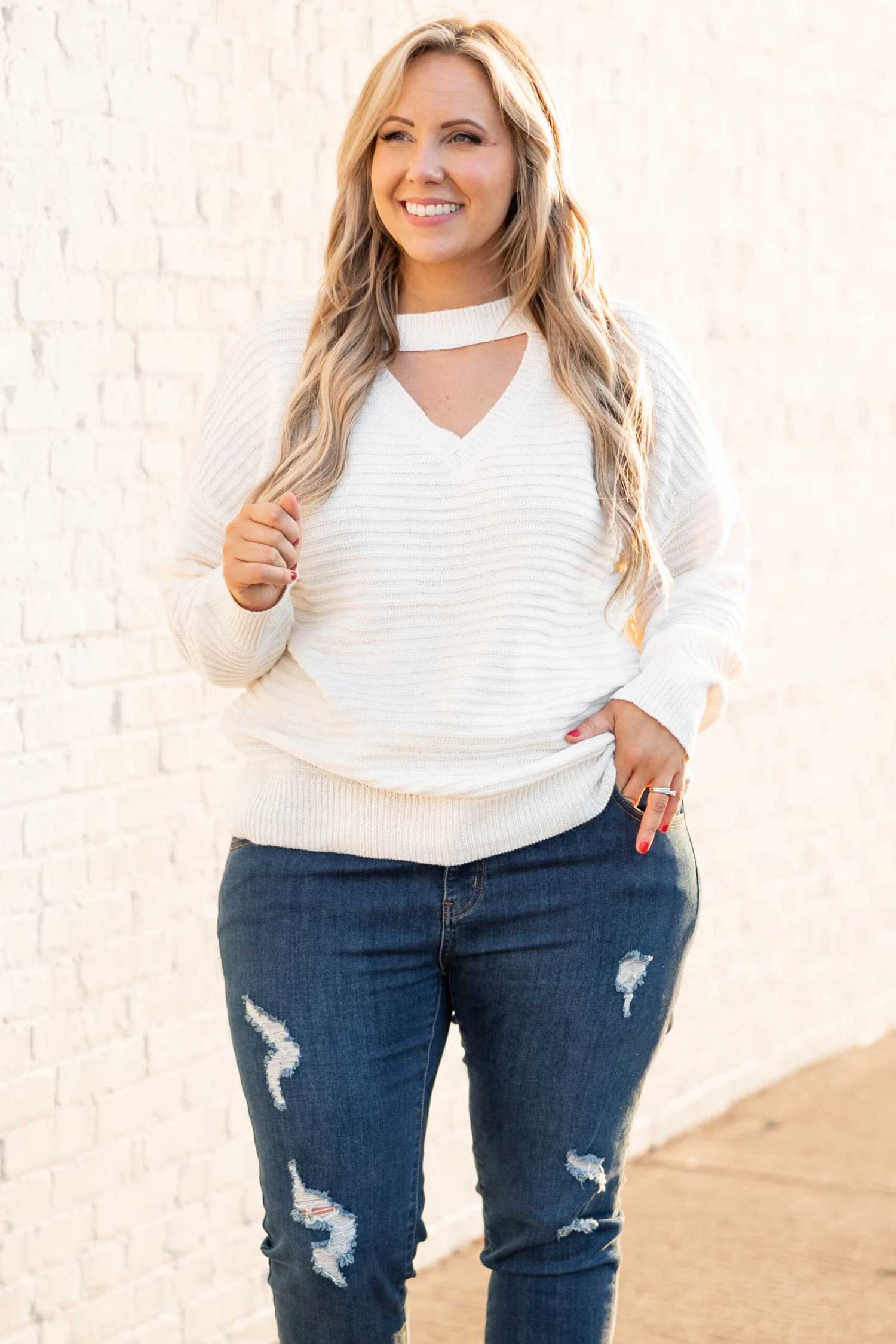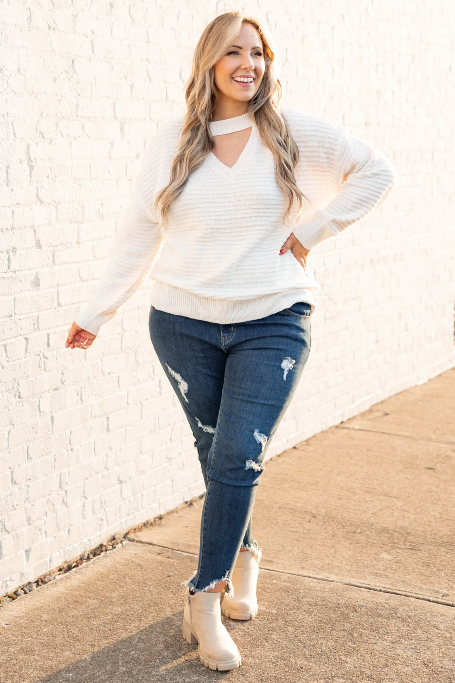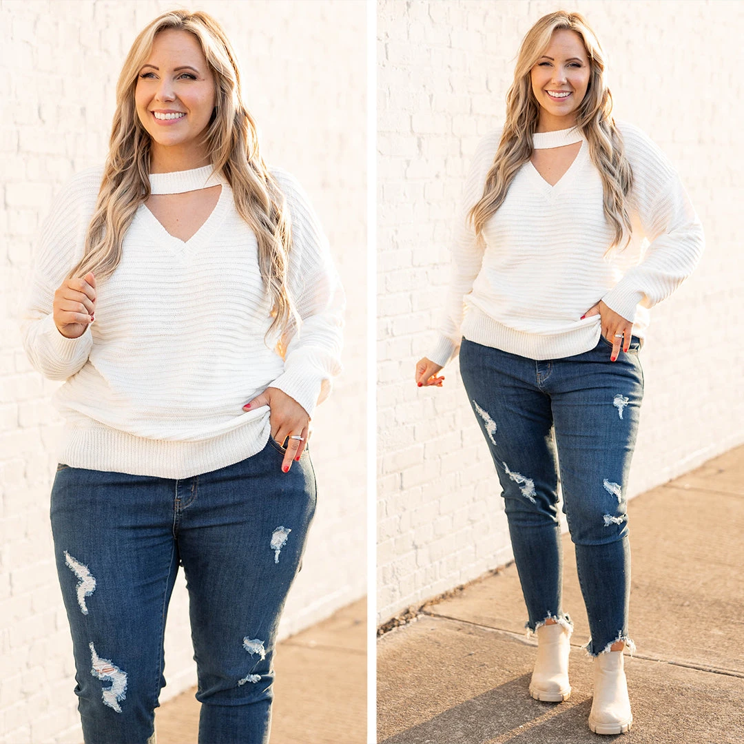 This top will definitely leave a lasting impression! The classic white color and flirty cut out is super trendy and sweet! The stretchy, figure flattering fit is perfect to pair with all of your faves throughout the season!Â
