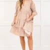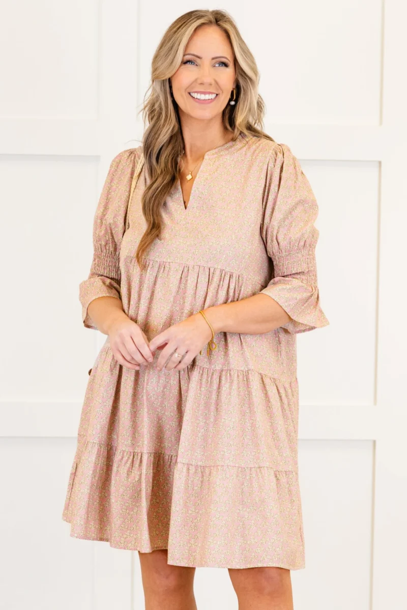 Indulge in the timeless elegance of the Infinite Allure Dress! The babydoll silhouette and tiered skirt create a flattering and feminine look! The split v-neckline and smocked cuffs with mini bell sleeves add a touch of sophistication, while the trendy ditsy pattern exudes exclusivity! Elevate your wardrobe with this luxurious piece!