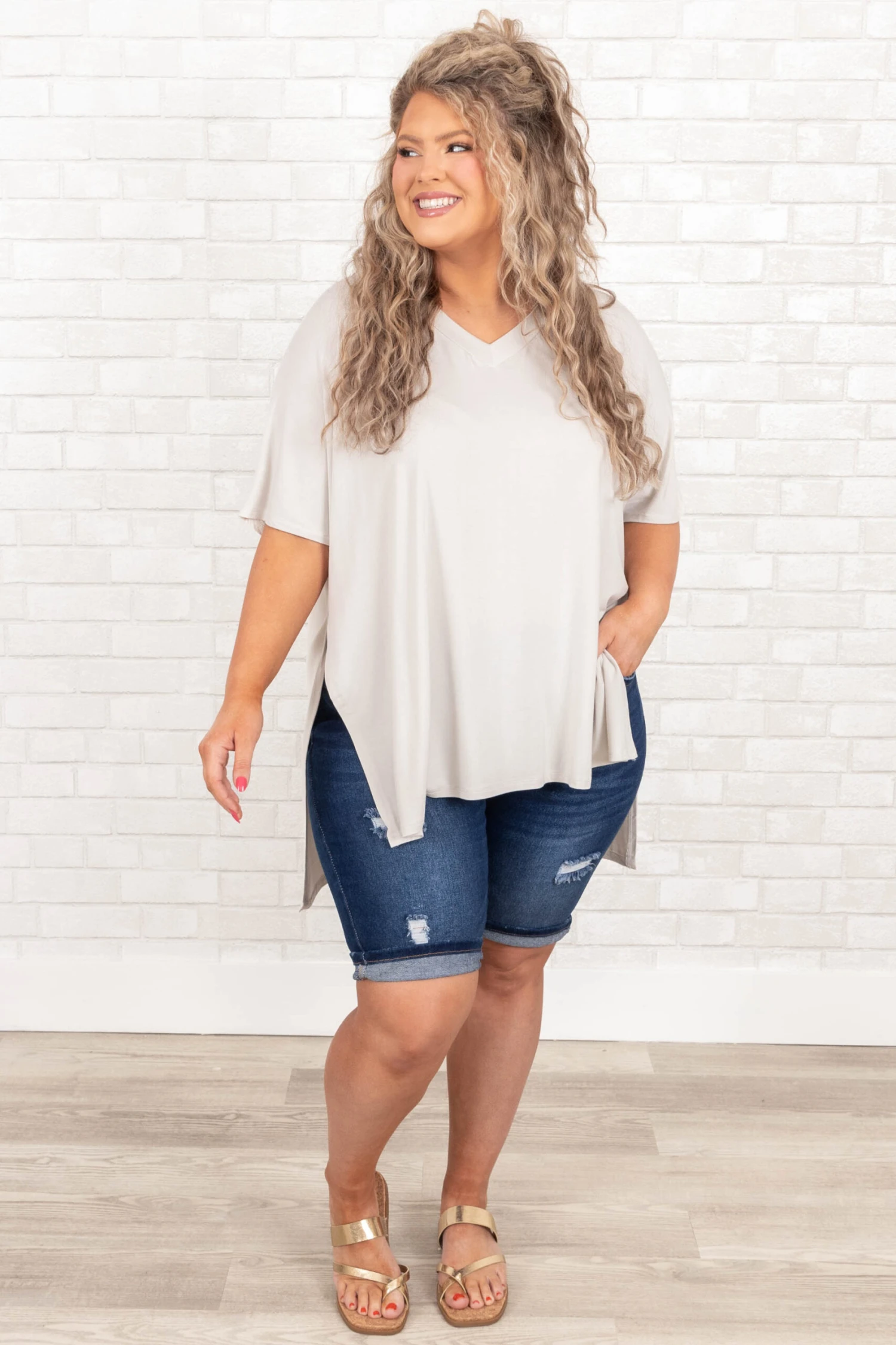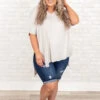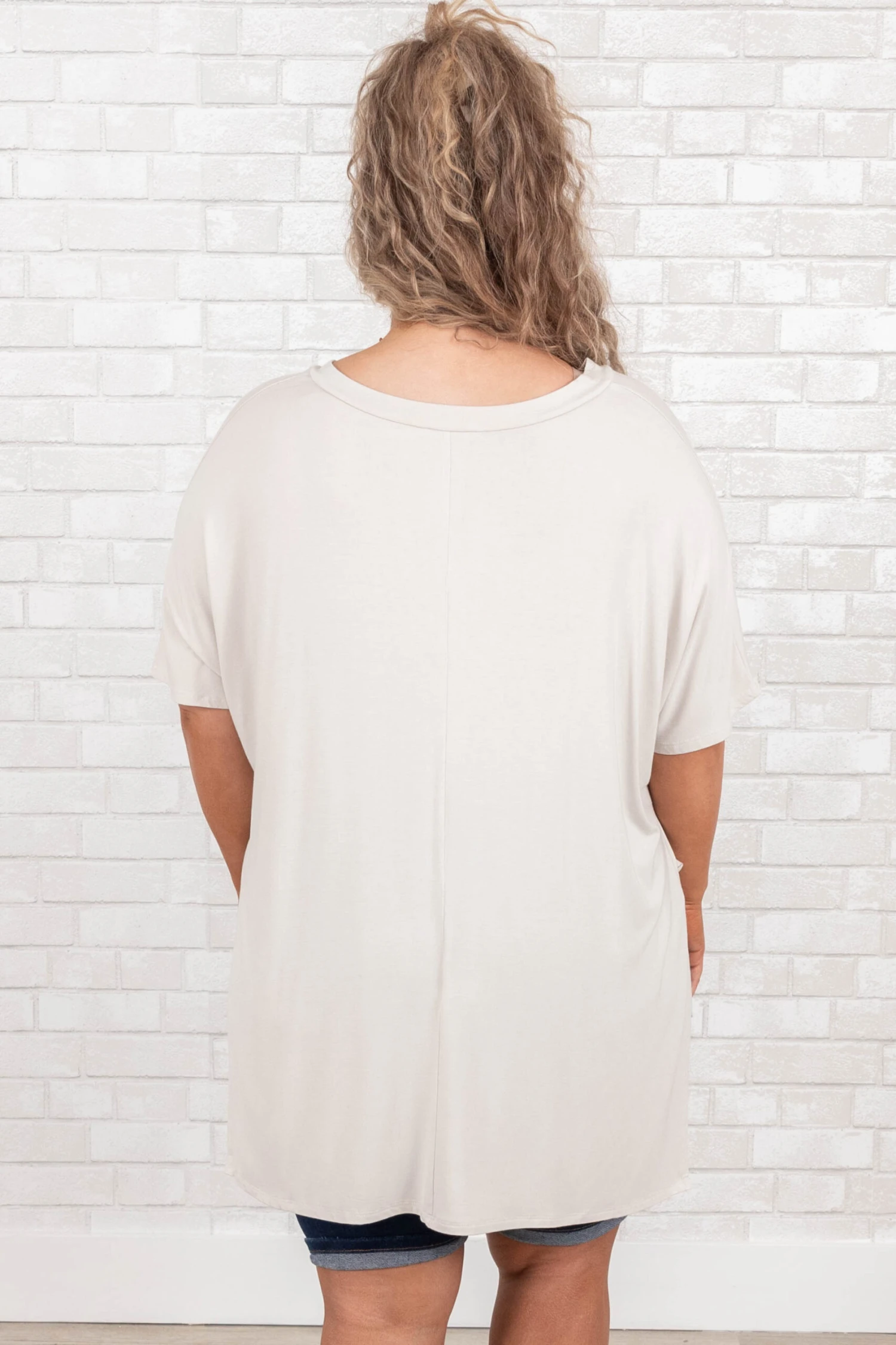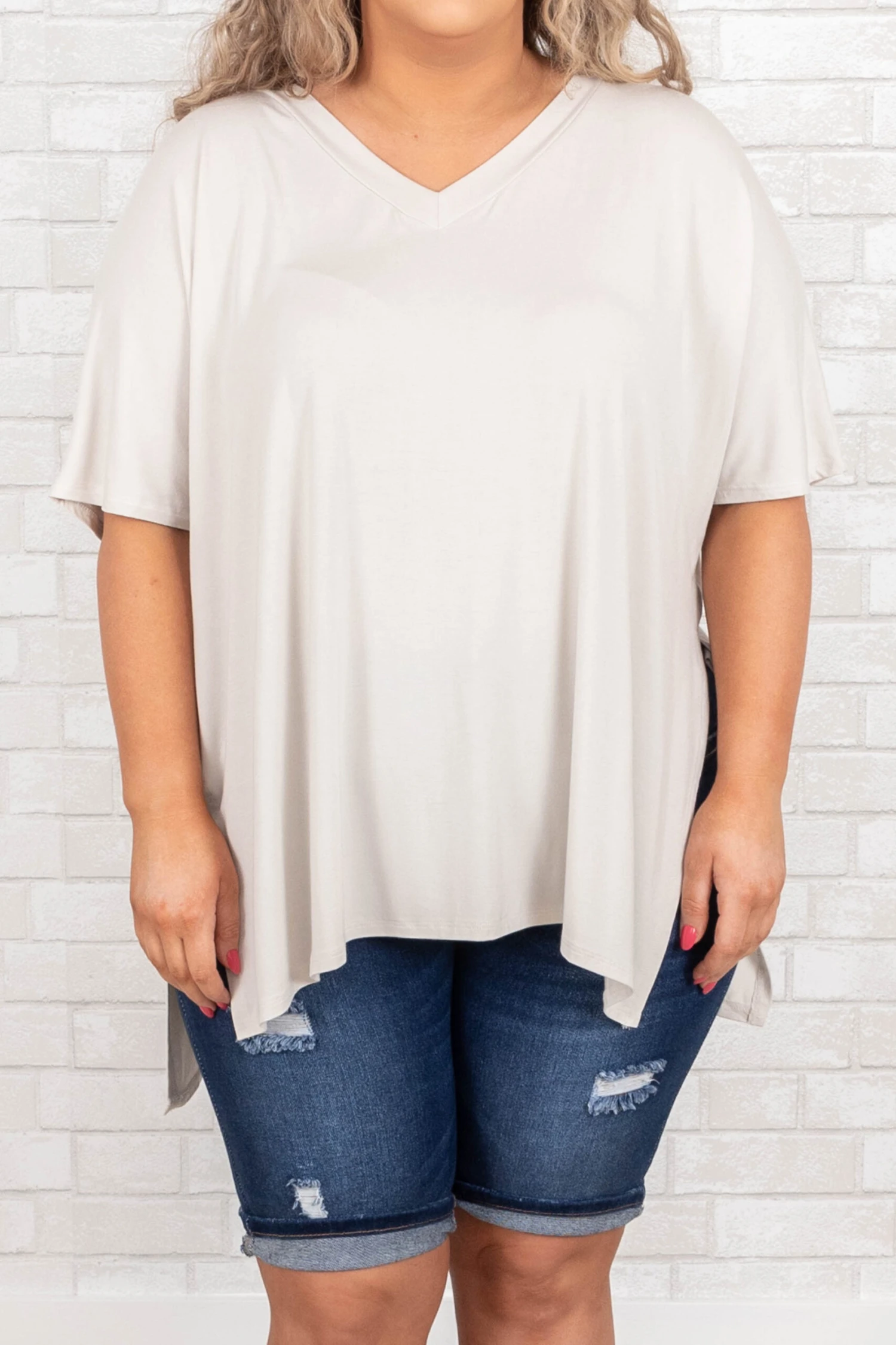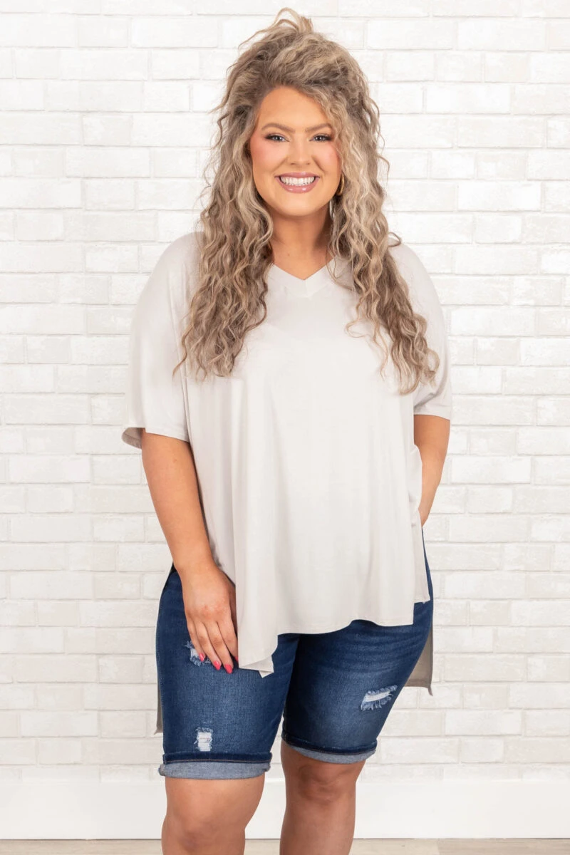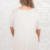 Channel your inner sweetness in this top! The bone color will have all eyes on you with it’s fierceness and the oversized flowy style is so flattering! This basic cutie is so easy to dress up or down but we love it best with some shorts and sandals for a perfect look!