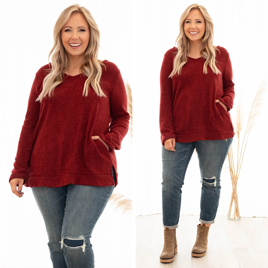 This tunic is just what you need to welcome cooler weather! This tunic has a stunning burgundy color you can dress up or down. It’s comfortable, easy to style, and has the cutest front pockets for the ultimate trendy look! Simply pair this tunic with leggings or skinnies for an easy everyday outfit!