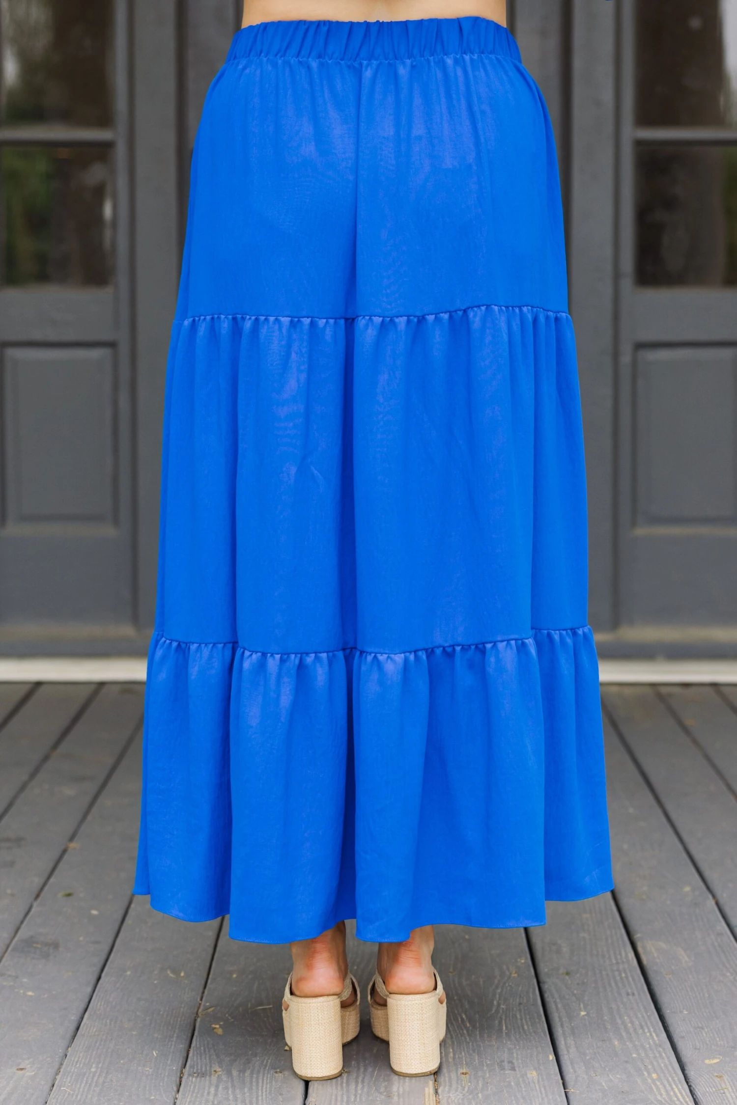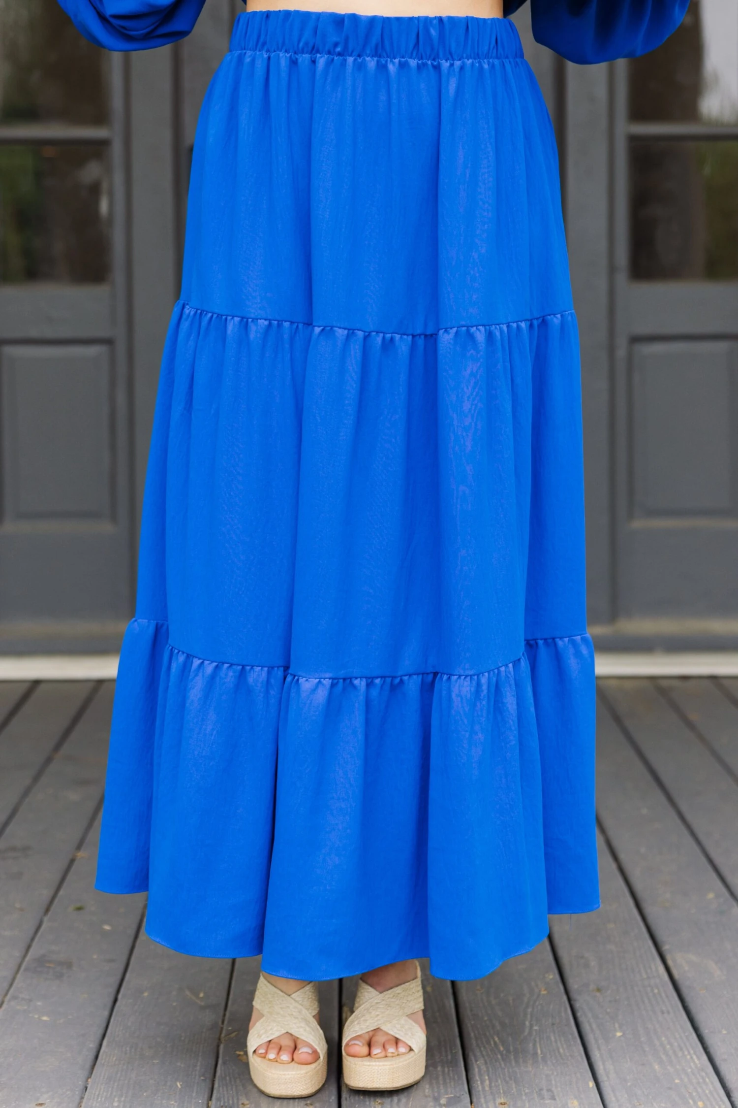 Let this beauty inspire you for the season! This skirt is perfect for all occasions! The bold royal blue color and flowy fit ensure that you will look and feel your best! Feel comfortable and confident in this FAB maxi skirt!