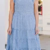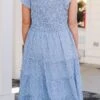 Let us make your dream dress happen for you! This blue beauty features a smocked bodice and a beautiful floral pattern that is just in time for the season! With its perfect midi length and flowy fit, it’s ideal for a walk through the park or on the beach!