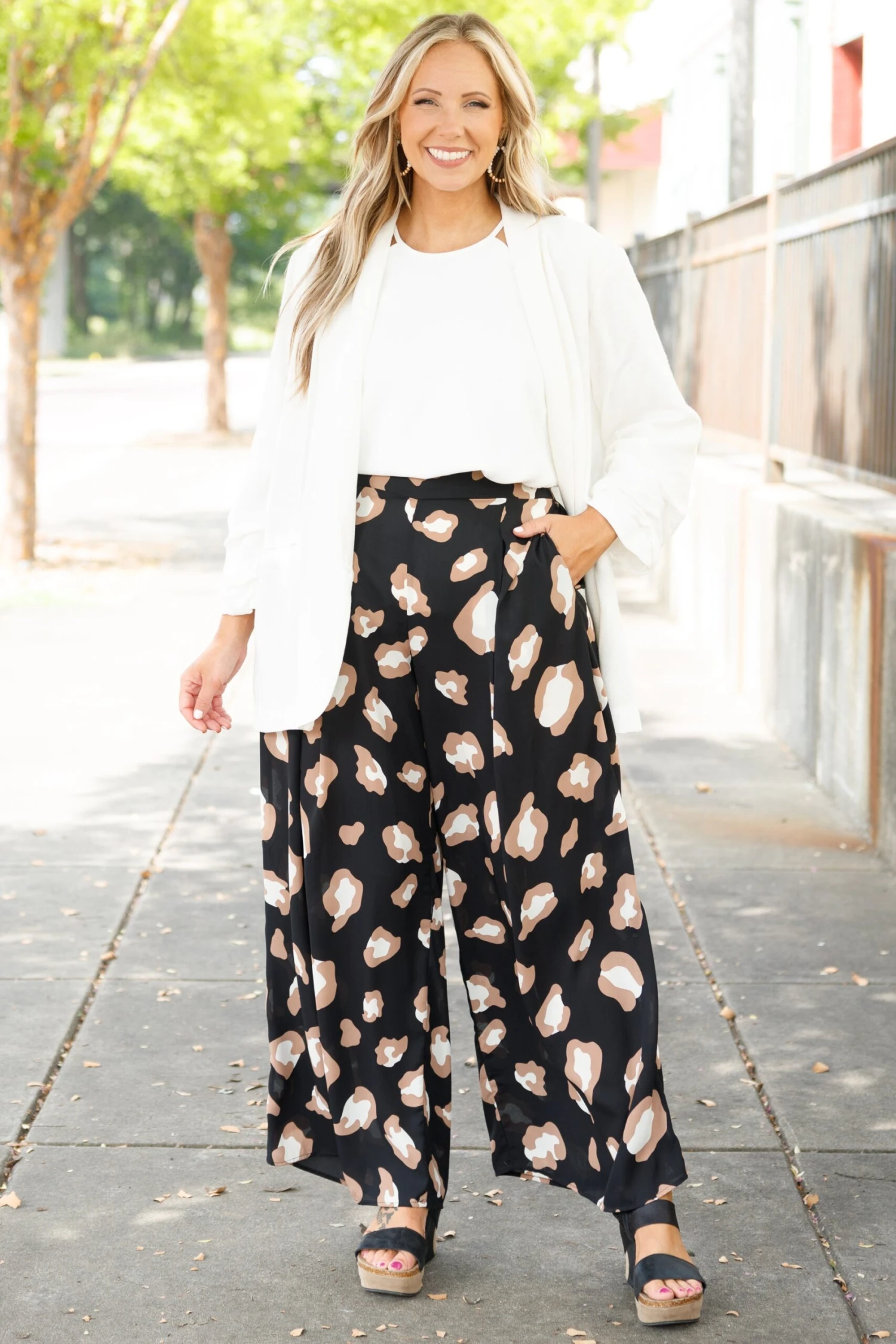 These fierce pants are the perfect wardrobe addition for the fashionista! They feature a trendy leopard pattern with a lovely black-mocha color, making them incredibly classy! The figure flattering fit ensures you will always look your best!