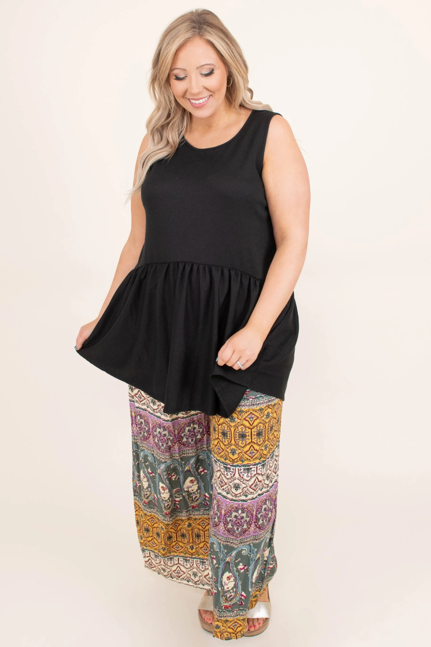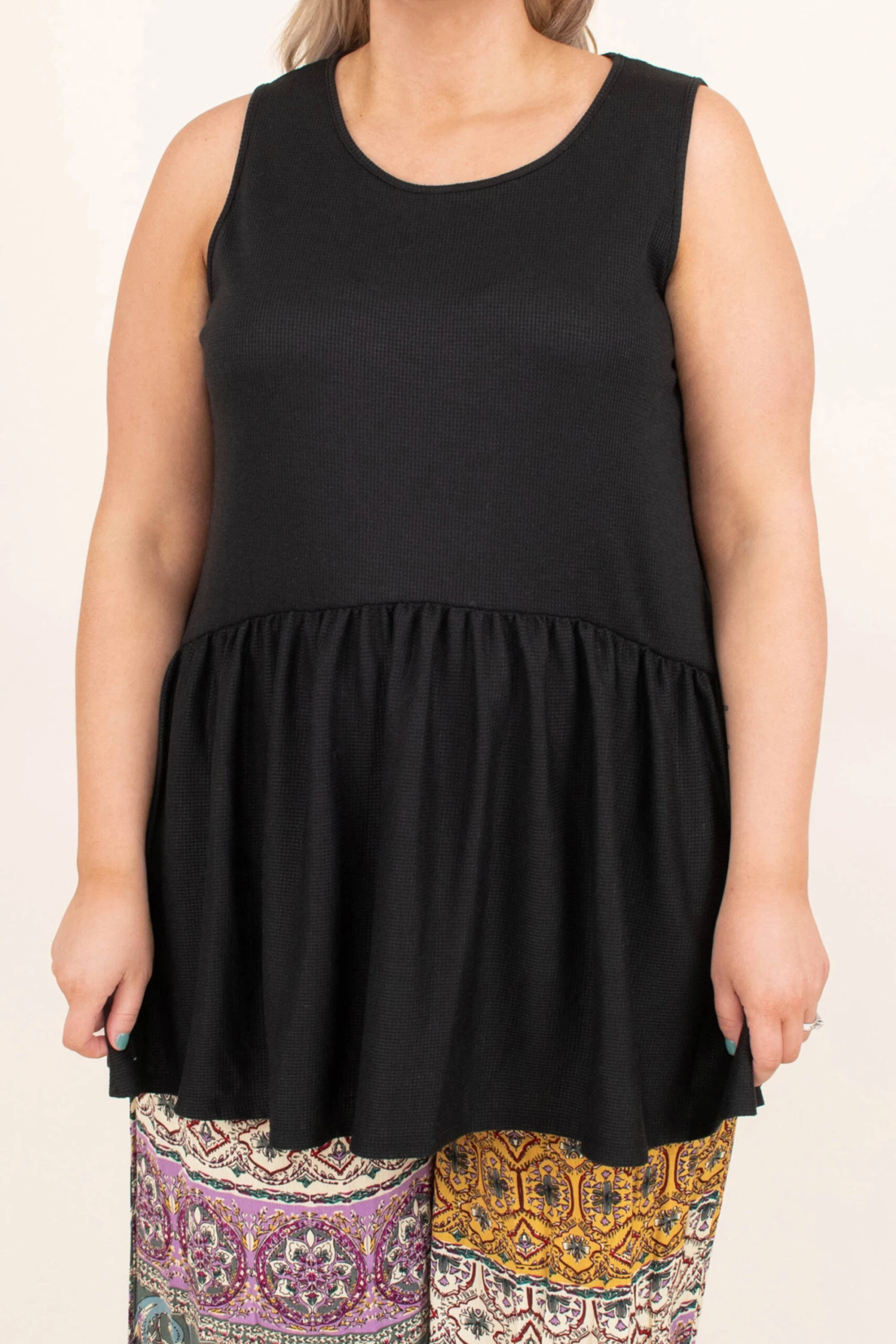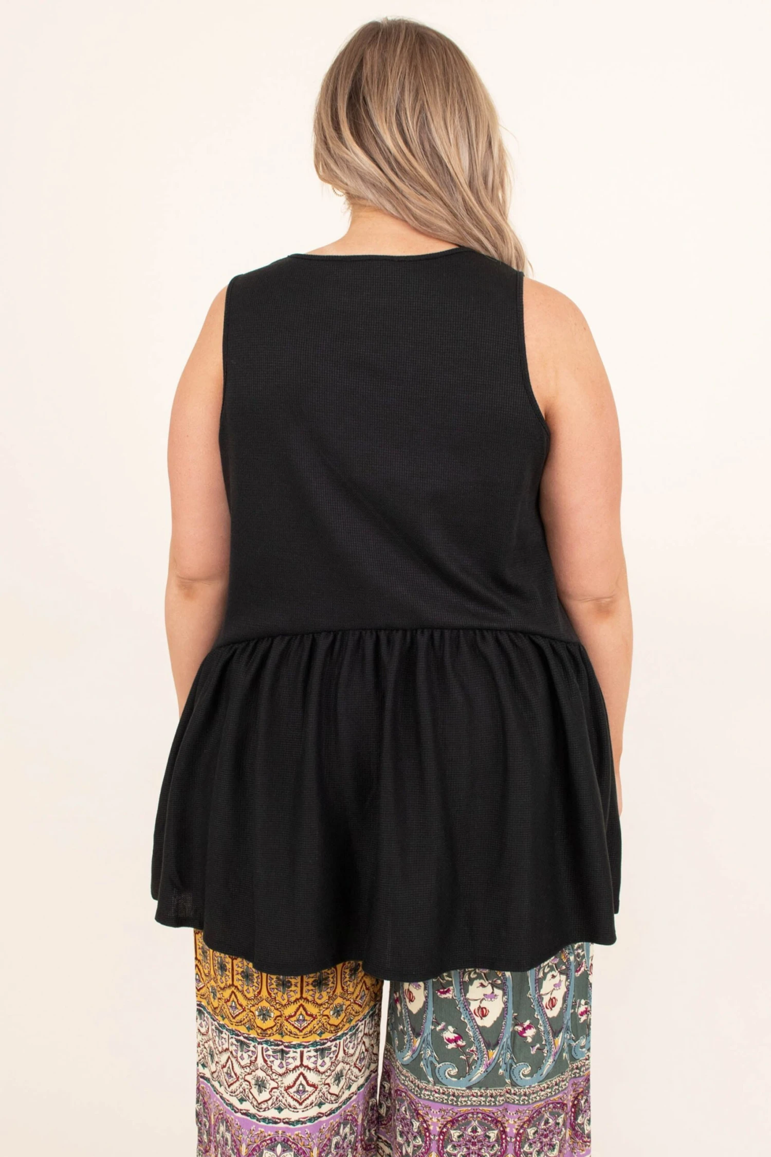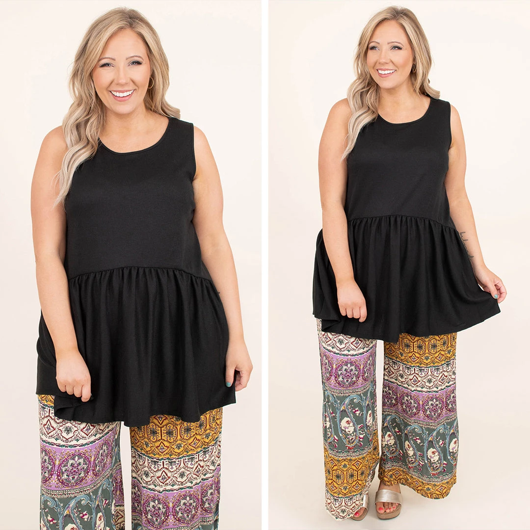 This top is your destiny! It will for sure become your new favorite staple piece! The babydoll style is so classic and the solid black color can be paired with anything! We love it paired with a fun pant and some cute wedges!