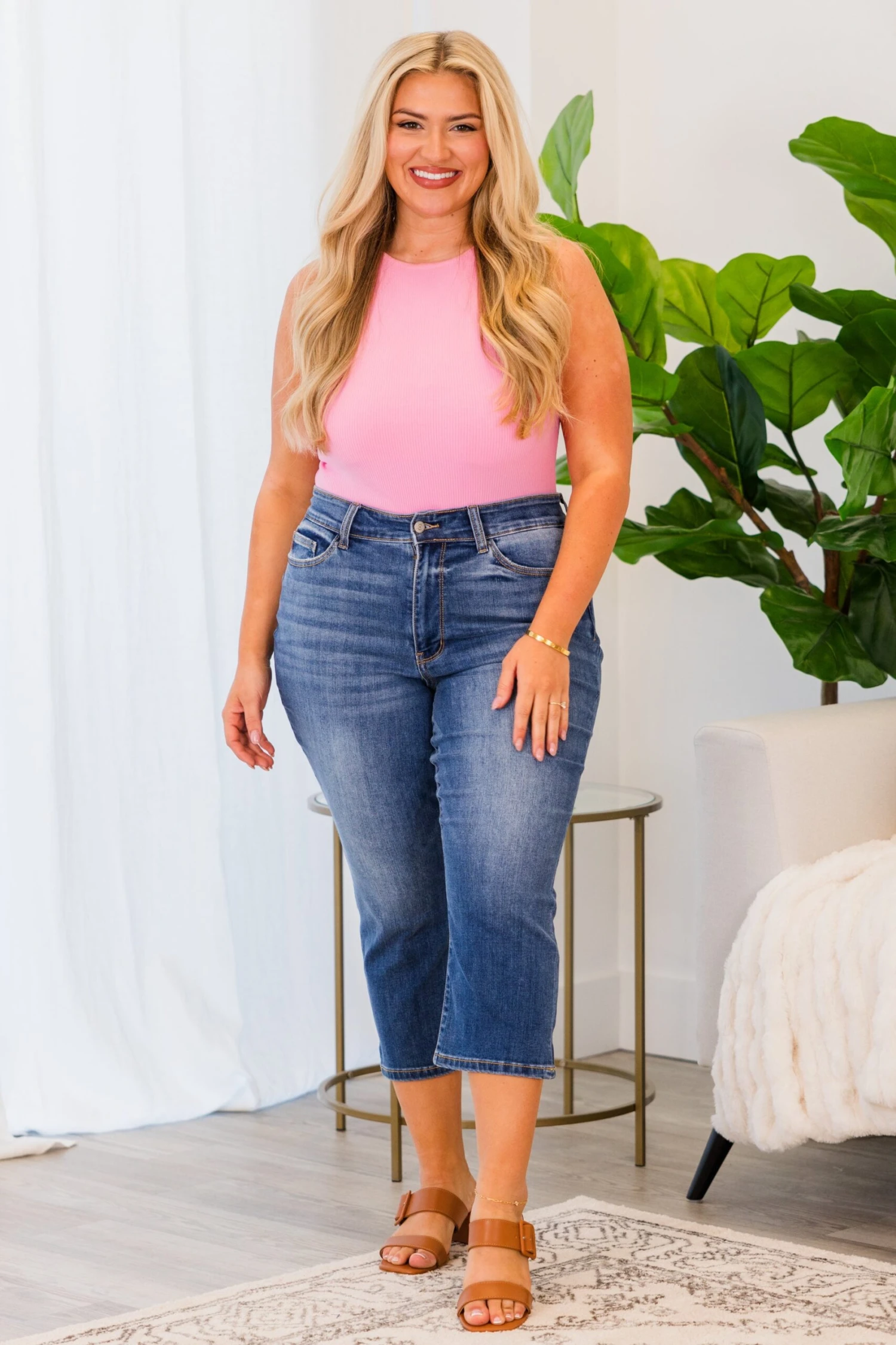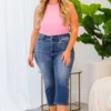 Discover the timeless style of Judy Blue: Aligned With You Capris in Medium Wash! With a classic capri cut, these pants offer a flattering and comfortable fit! Elevate your wardrobe with these versatile and stylish capris that never go out of style.