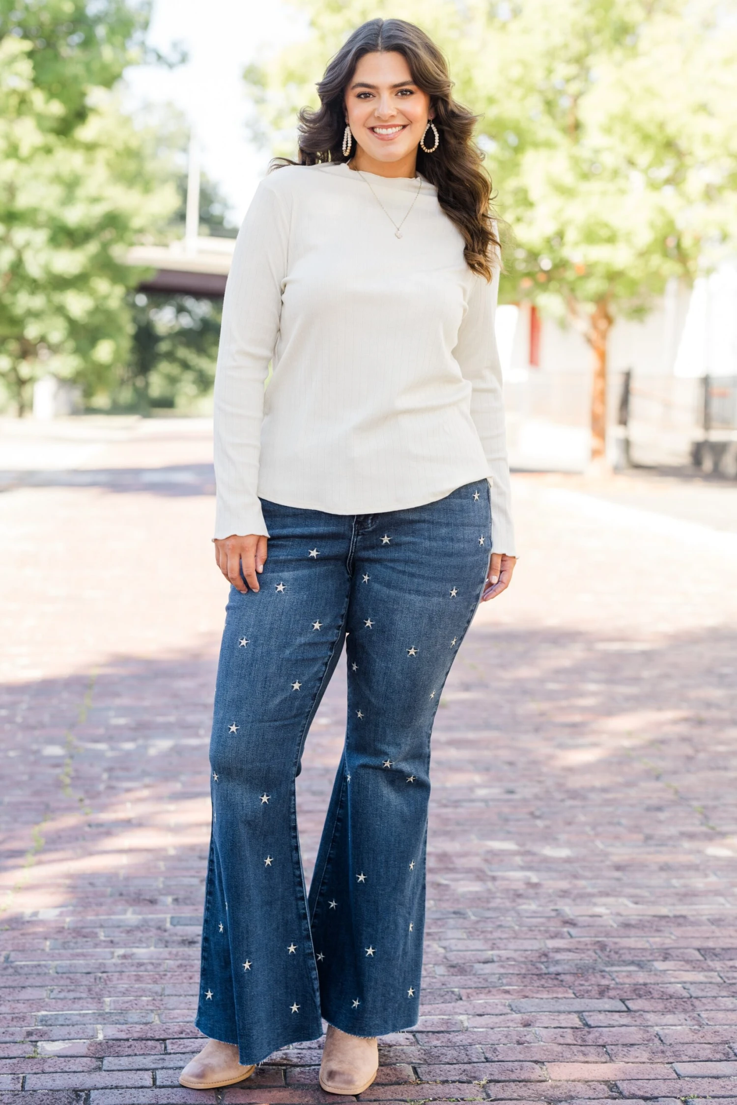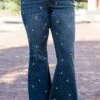 Add some star power to your wardrobe with these Judy Blue’s Seeing Stars Jeans! These flare jeans feature fun star accents and a flattering fit that will have you feeling like brighter than a star! With a frayed hemline for added style, these jeans are perfect for those looking to make a statement!