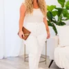 Introducing Judy Blue’s White Out joggers, the perfect addition to your summer wardrobe! These high-rise cuffed denim joggers feature a zip fly and button closure, along with an adjustable drawstring detail at the waist for added comfort and style! Say goodbye to boring outfits and hello to effortless, trendy looks with these joggers!