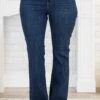 Stay ahead of the fashion game with these jeans in a stylish dark wash! This pair features a unique two button closure and an elasticized waistband for comfort! With a high rise and two back pockets, these jeans are perfect for both fashion and function!