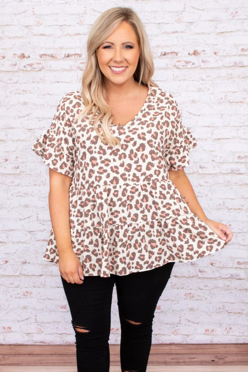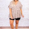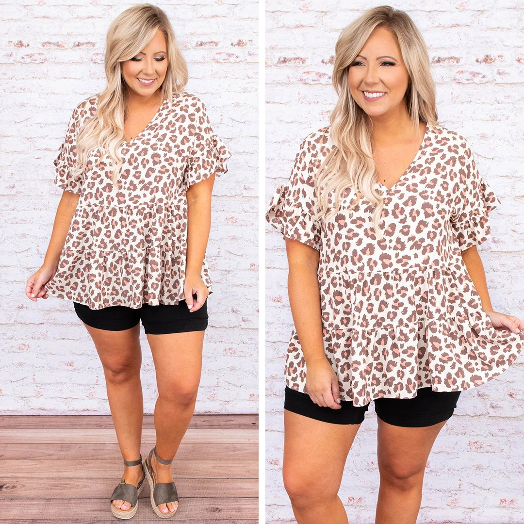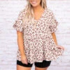 This top is the beginning of the path to your new wardrobe! It has a trendy leopard print with neutral colors you can style for every occasion! It’s comfortable for all day wear, has a flowy fit, and features the cutest ruffled babydoll design! Style this top with skinnies or shorts for an effortlessly chic look!Â