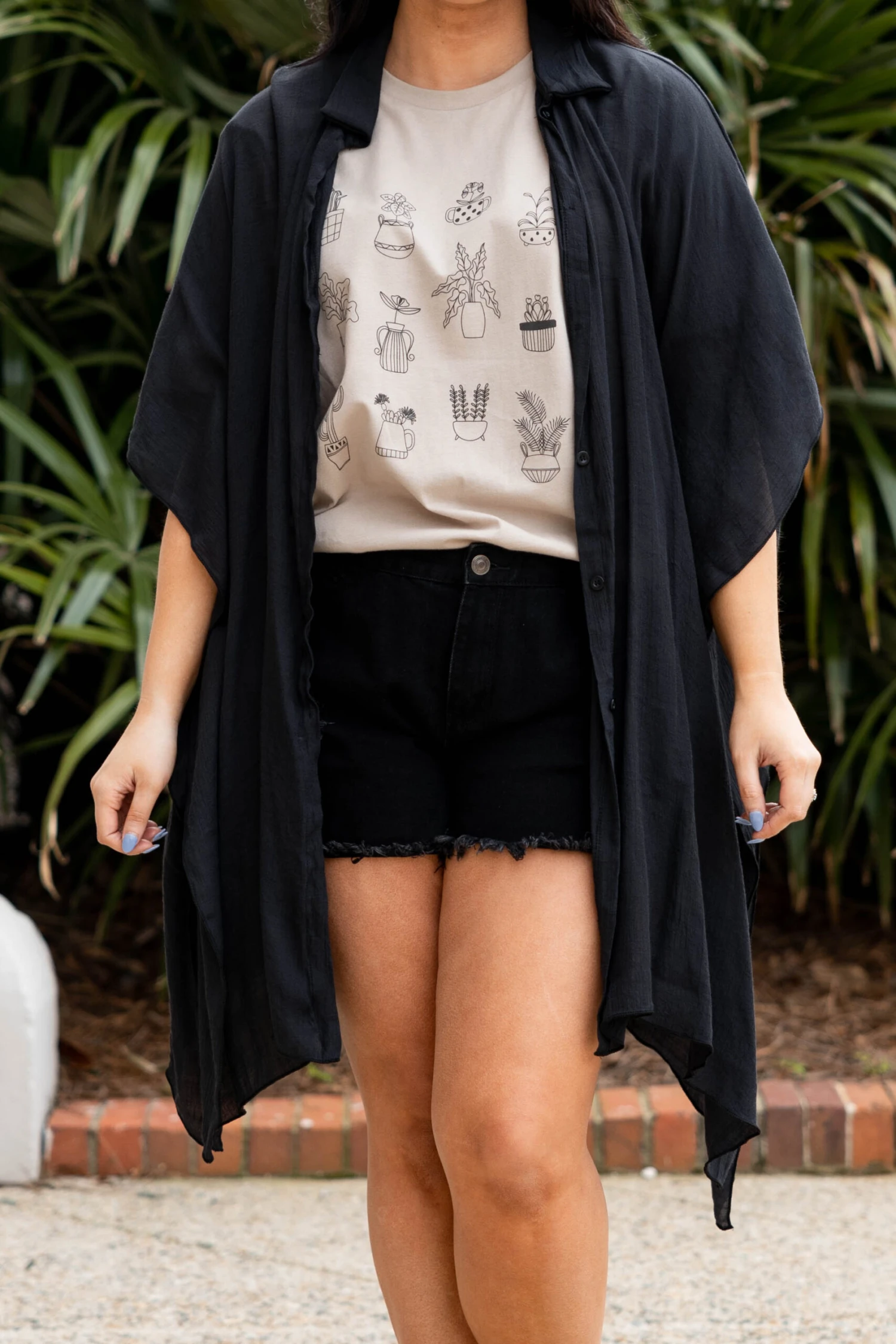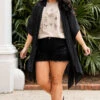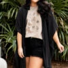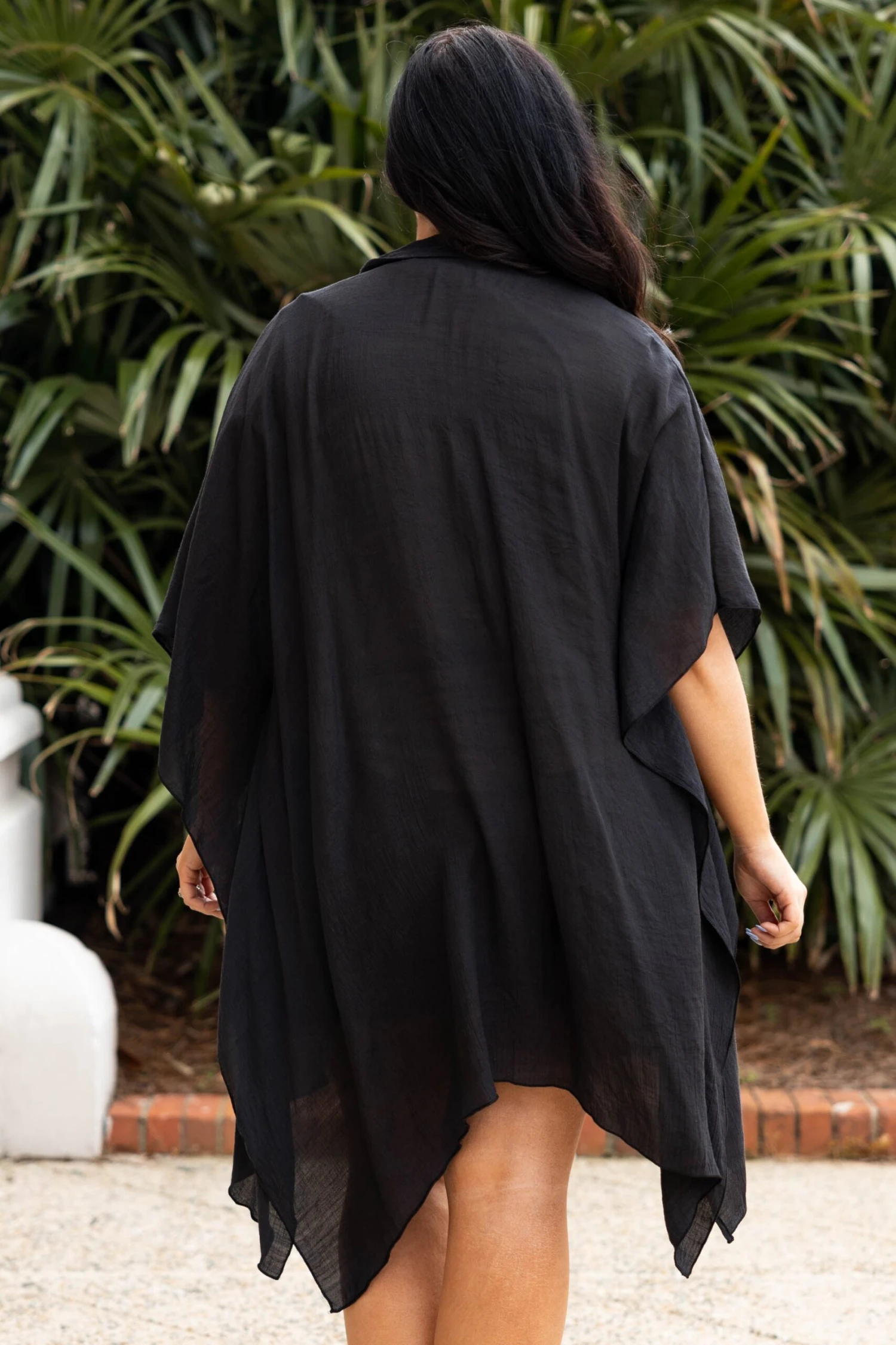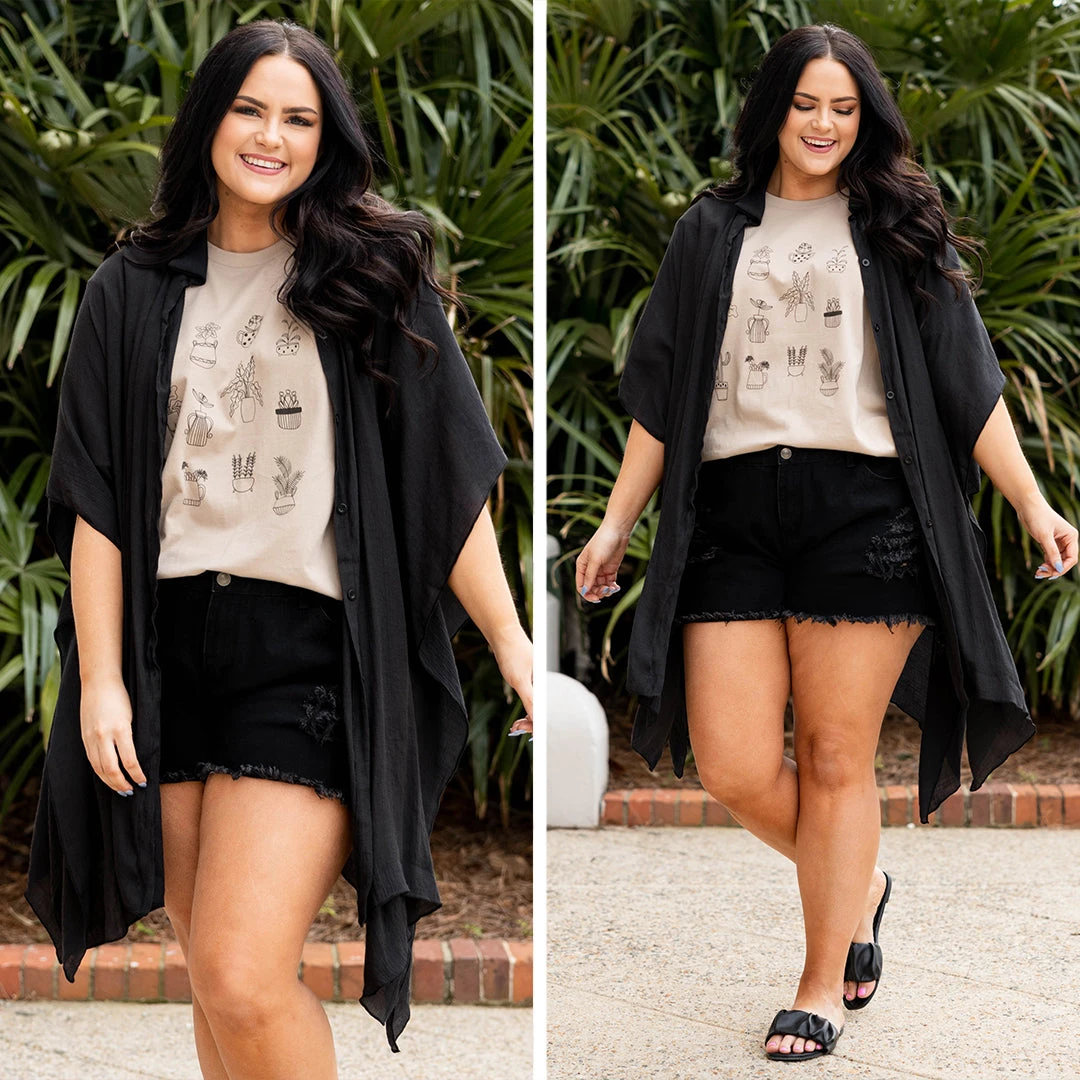 Grab this cutie while you still have a chance! The neutral black color makes this the perfect layering piece for the season! The lightweight design and flowy fit is great to style over a cute swimmie or a flirty dress and sandals for a classic chic look!