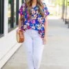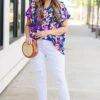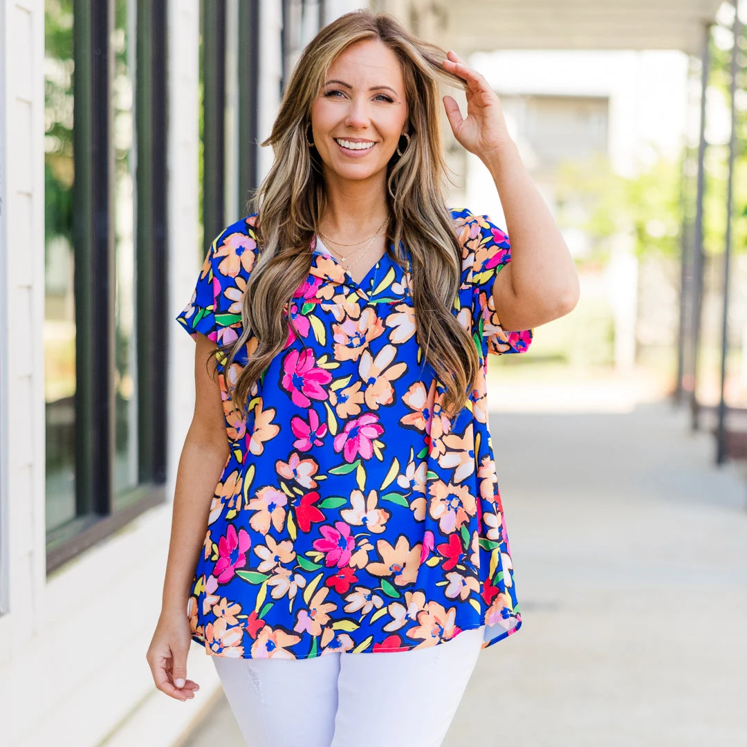 Take a sec and grab this cutie before it’s too late! Featuring a bold floral pattern, this top is the perfect addition to your seasonal wardrobe! Pair it with your favorite skinnies and accessories for a look that’s effortlessly cute!