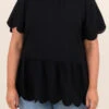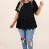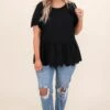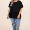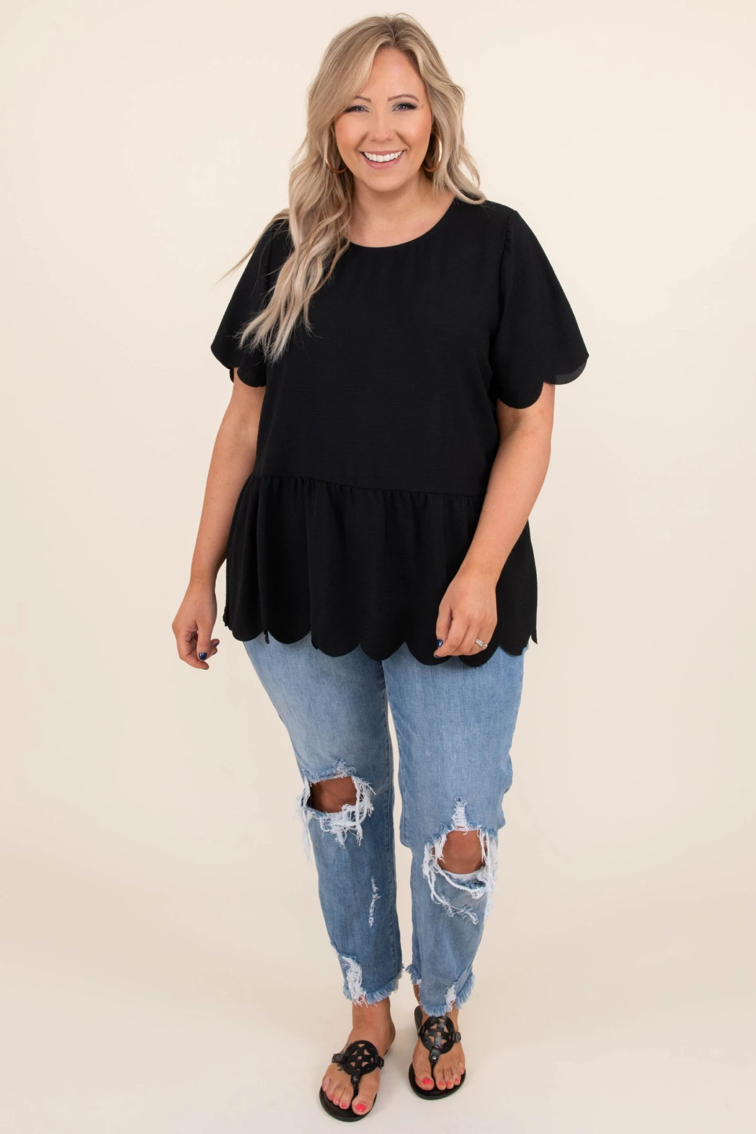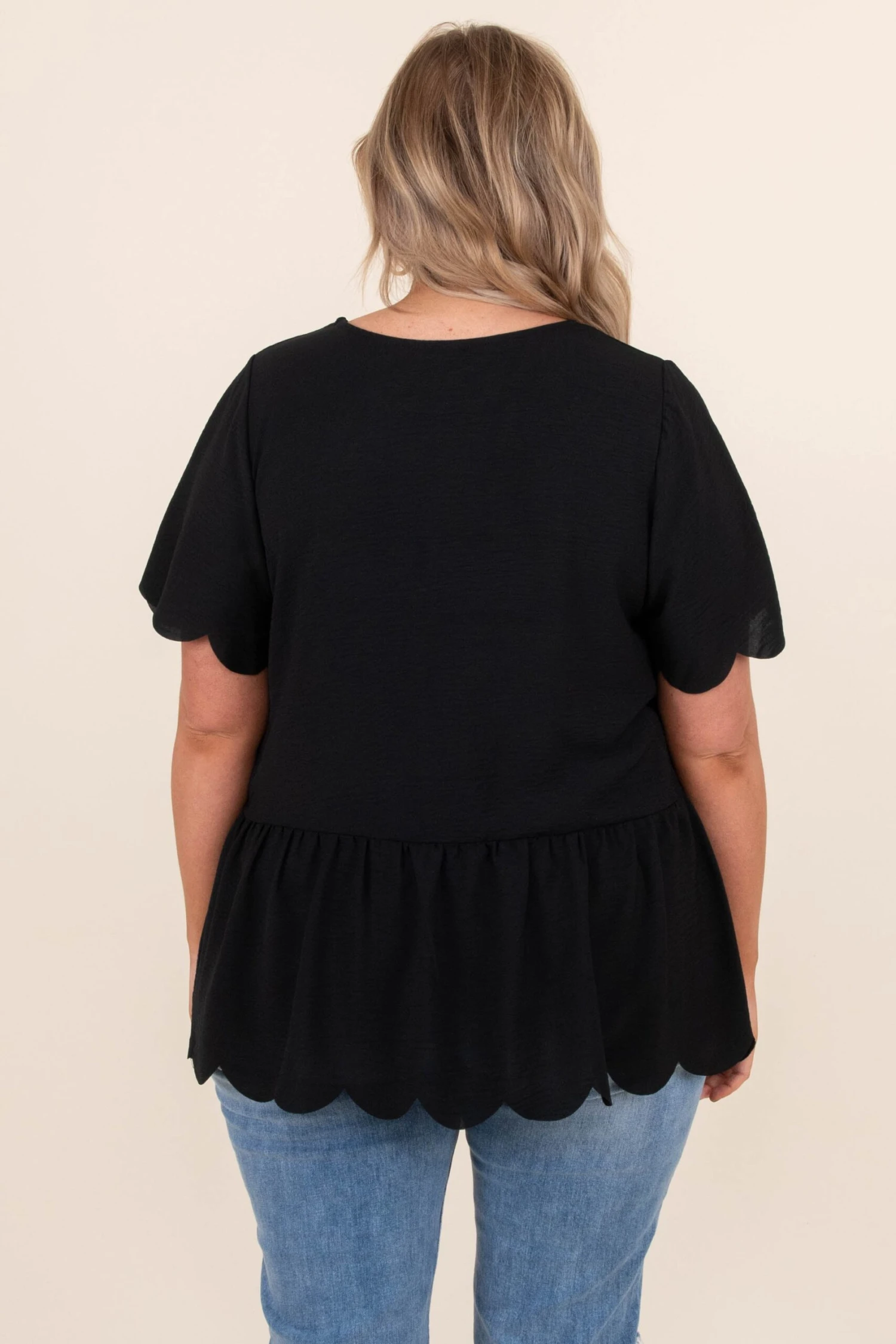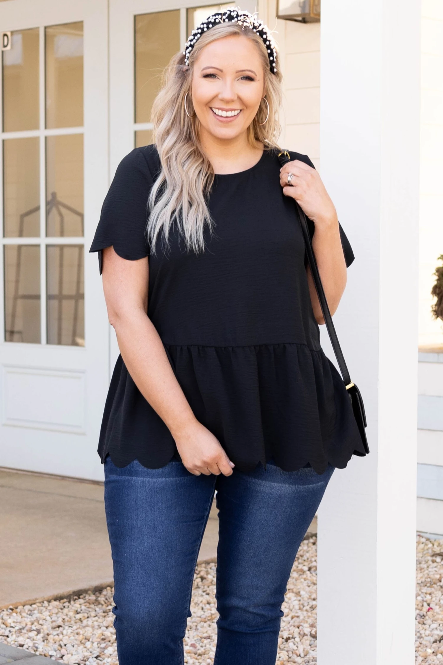 Give your wardrobe a promotion with this trendy new top! This top has a solid black color that’s perfect for the season! It’s comfortable for all day wear, has a figure-flattering baby doll fit, and can be styled with your favorite shoes and accessories! Pair this top with skinnies and wedges for an effortlessly chic look!Â