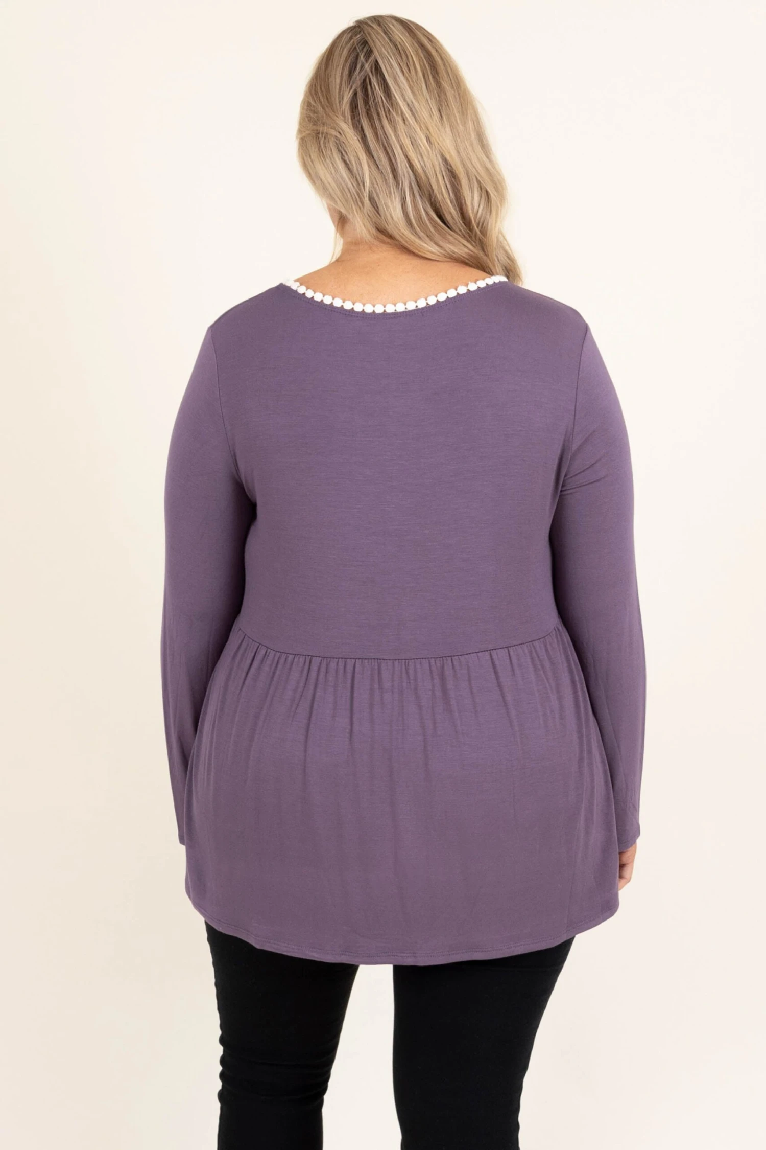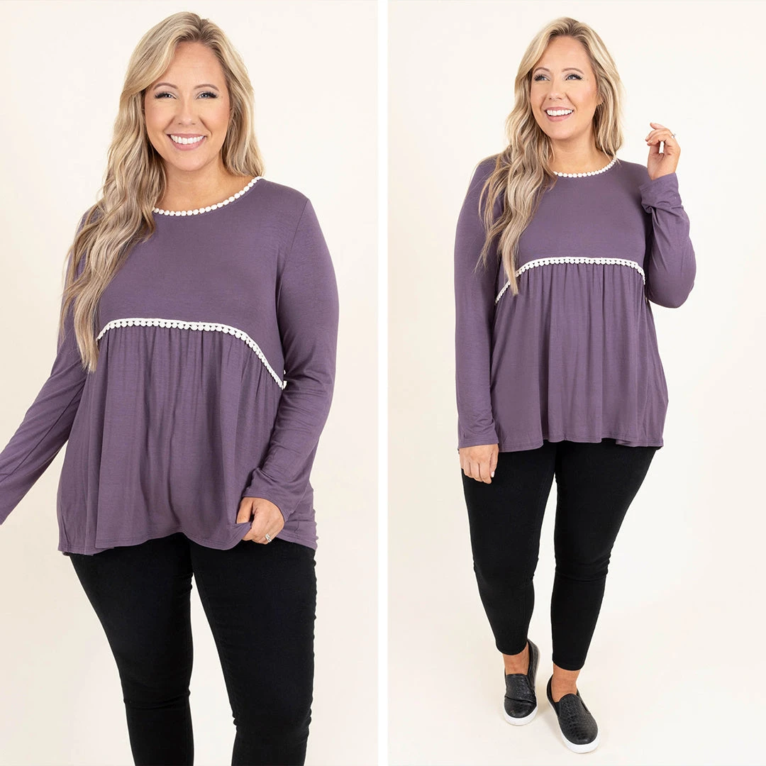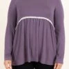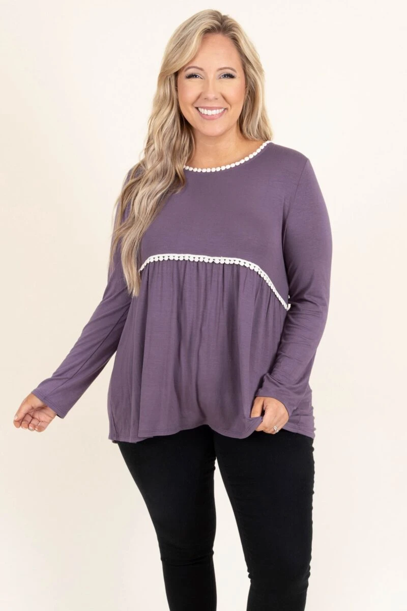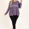This top has been stealing our hearts! This top is perfect for afternoon tea, a day or night out, and every other event you may have on your agenda! Its solid lilac color can be paired with everything in your closet, and the fabric is so soft that you’ll WANT to wear it with everything! Toss it on with skinnies and boots for an easy everyday outfit or keep it casual with leggings and sneakers.Â