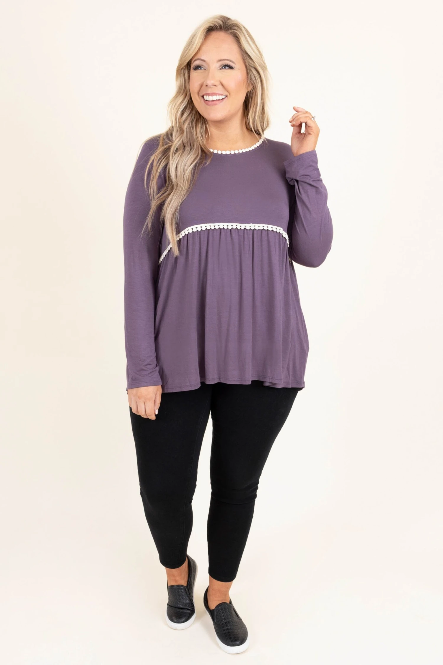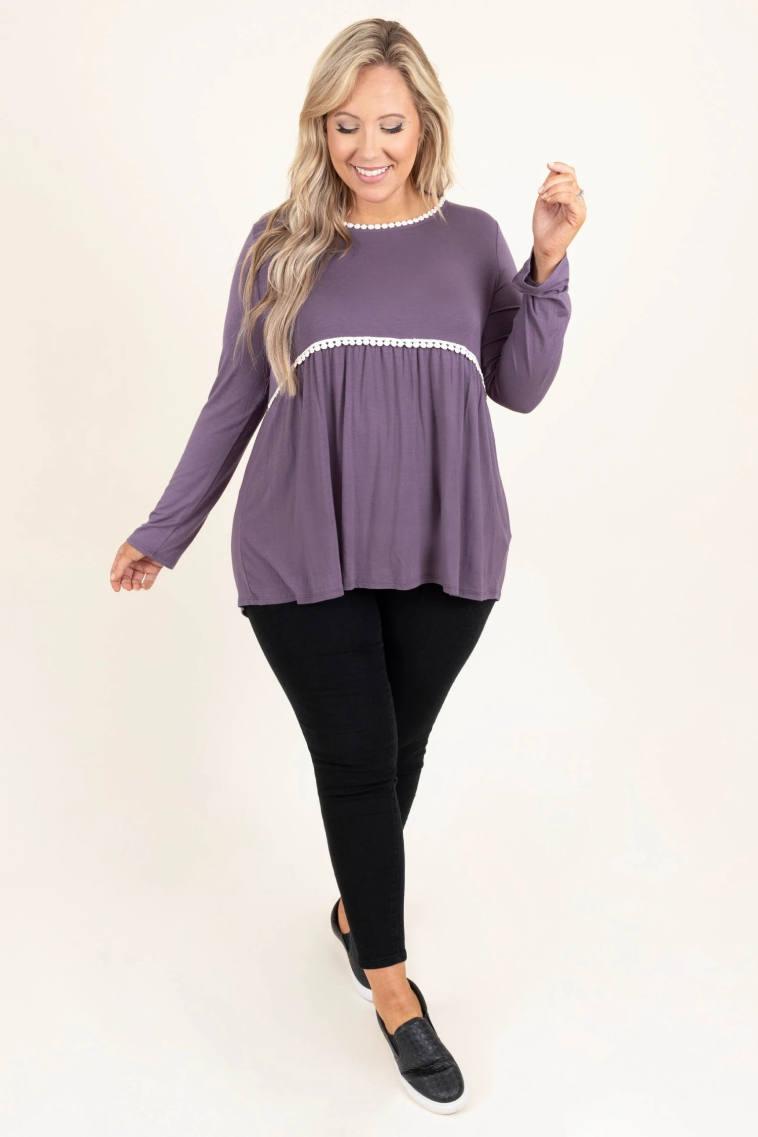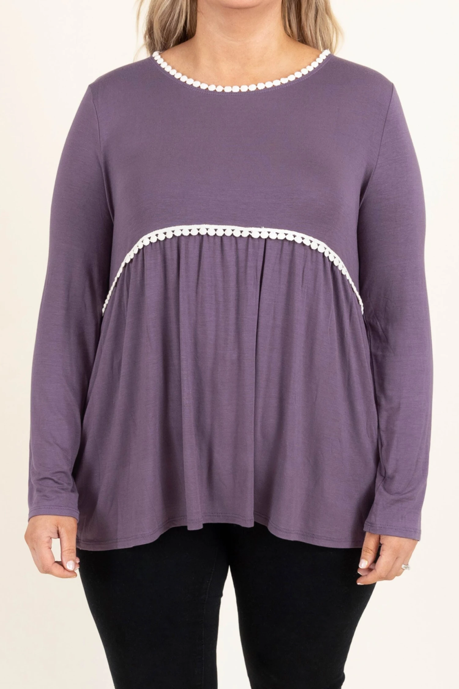 This top has been stealing our hearts! This top is perfect for afternoon tea, a day or night out, and every other event you may have on your agenda! Its solid lilac color can be paired with everything in your closet, and the fabric is so soft that you’ll WANT to wear it with everything! Toss it on with skinnies and boots for an easy everyday outfit or keep it casual with leggings and sneakers.Â