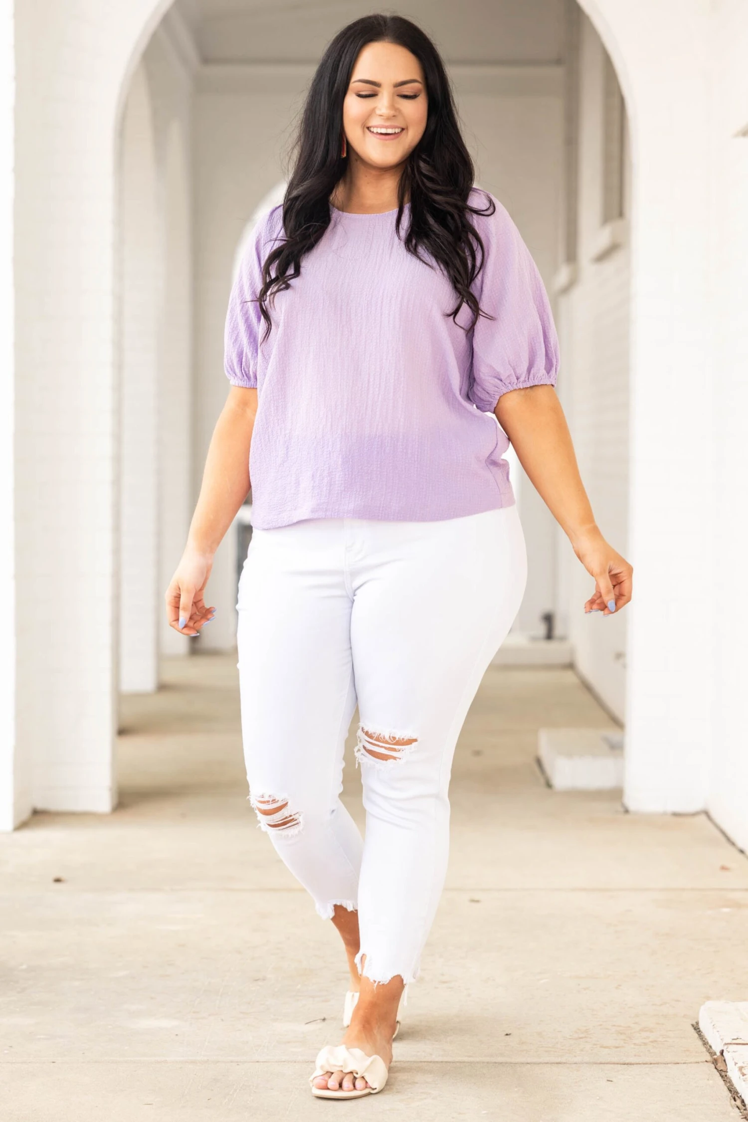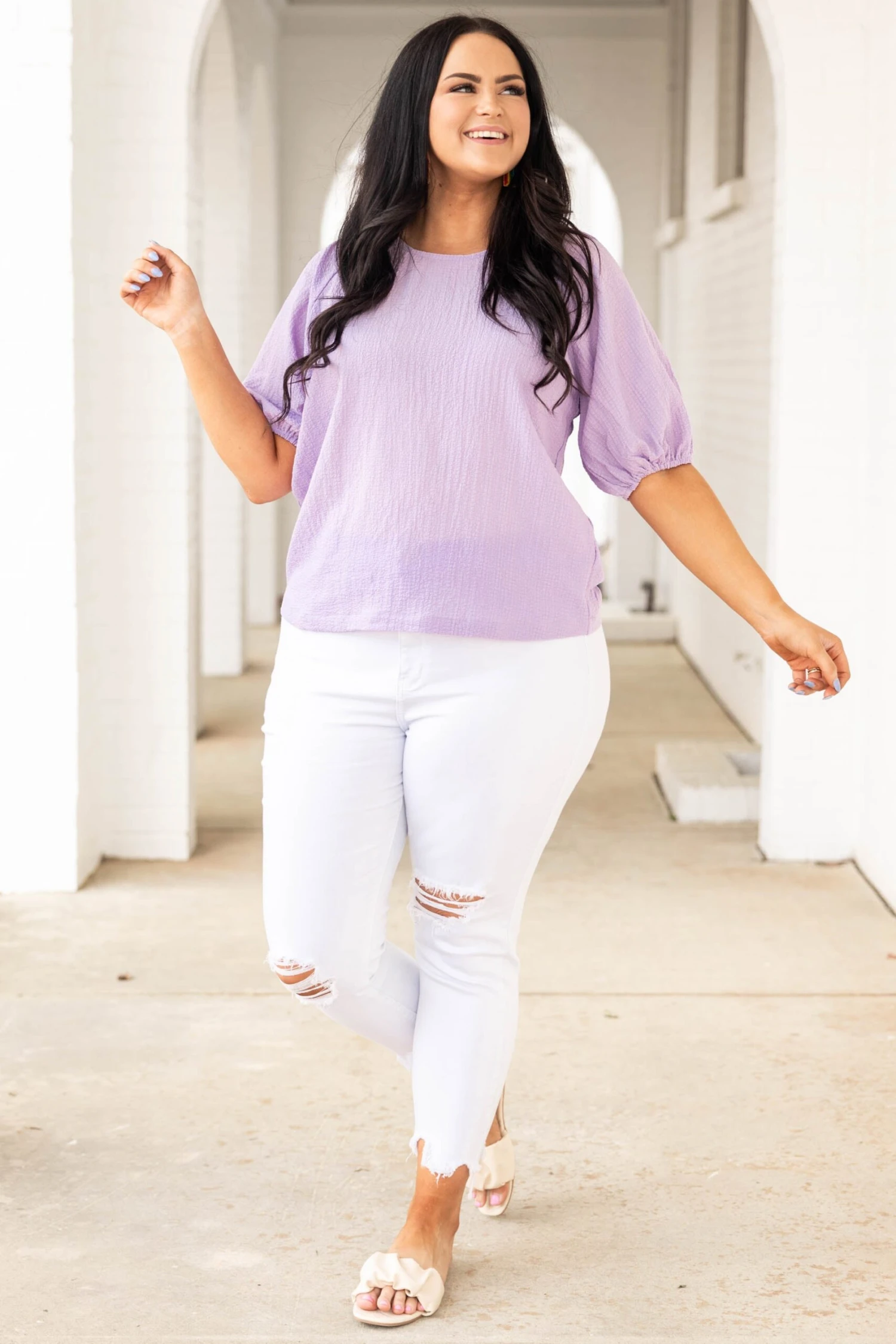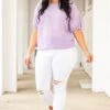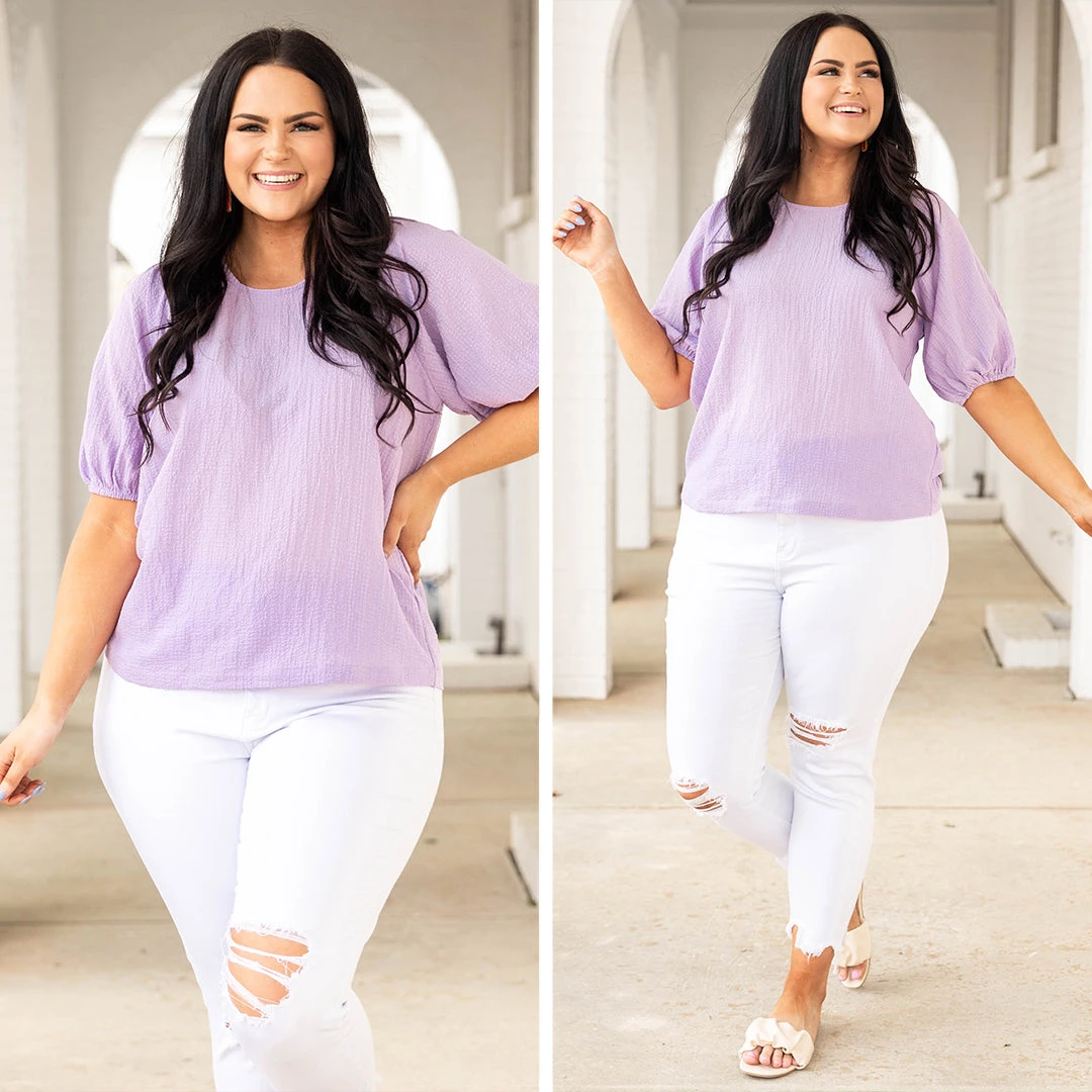 Keep it sassy and classy in tis gorgeous top! It has a beautiful lavender color with a comfy, textured fabric that is so easy to pair with all of your favorite skinnies and shorts! Style this top with some distressed skinnies and flats for a classy casual look!