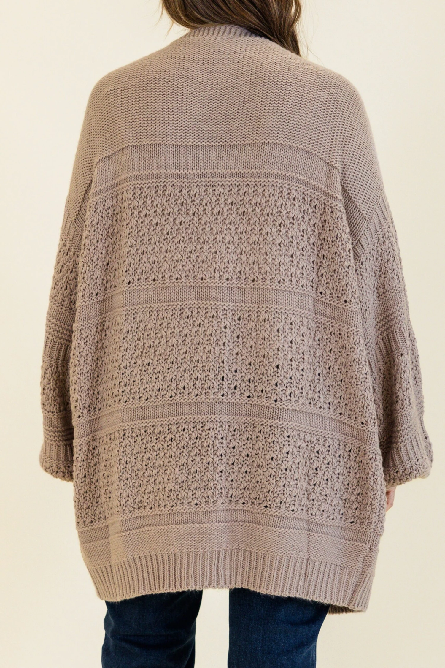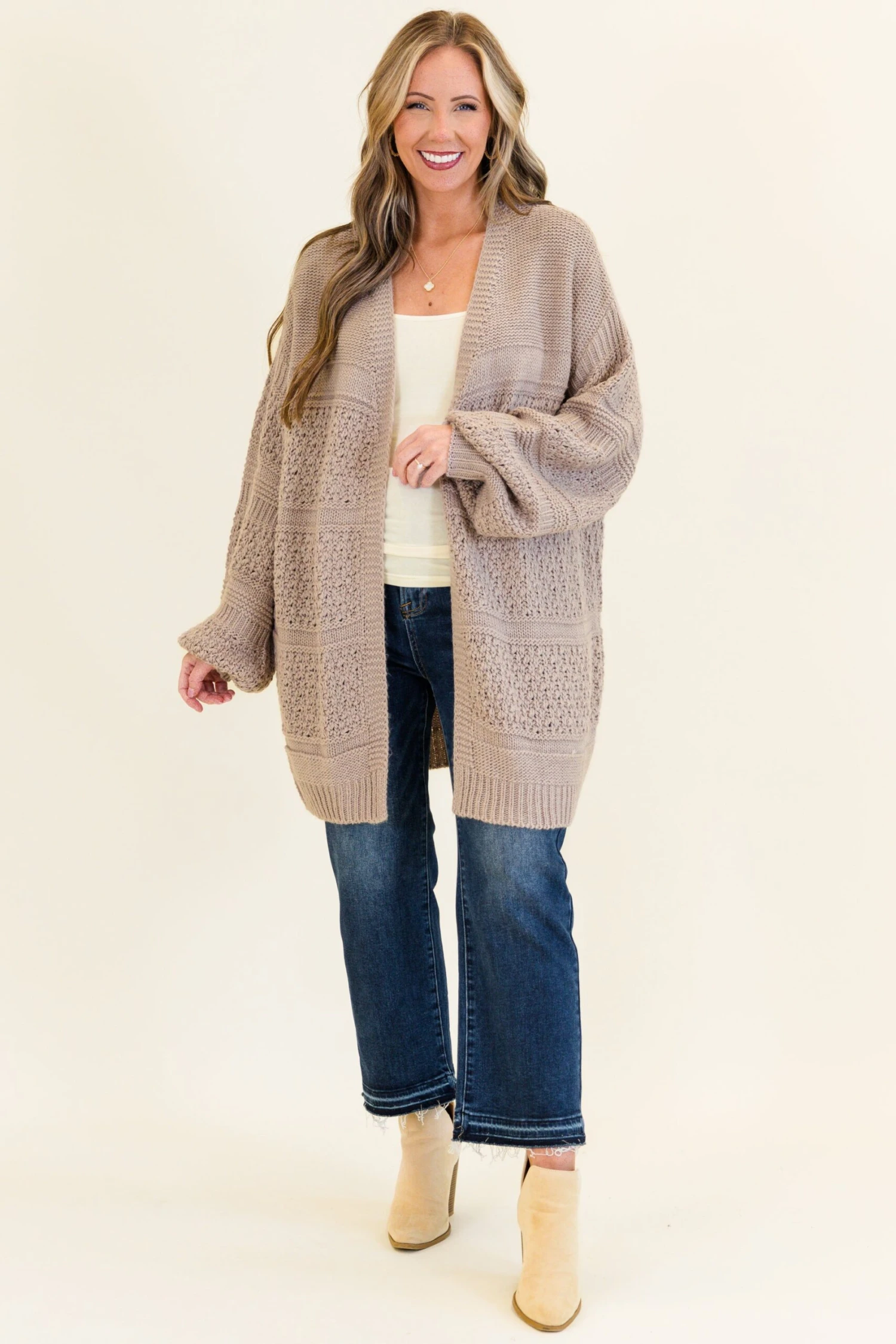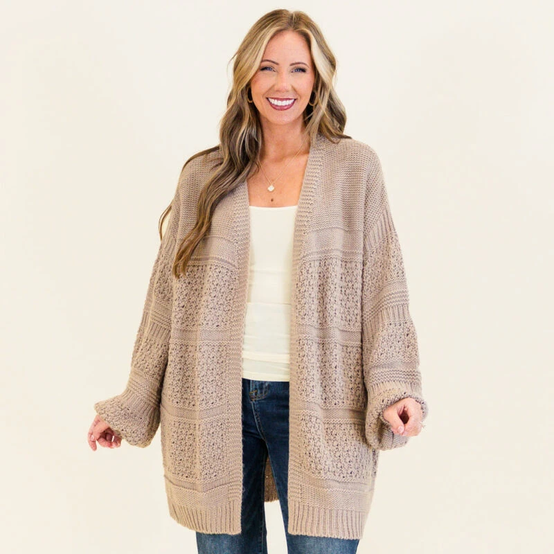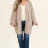 Stay cozy and stylish with our Keepin’ Cozy Cardigan in taupe! Featuring an open front and cable knit design, this cardigan adds a touch of warmth and texture to any outfit! With a relaxed drop shoulder and classic color, it’s a staple piece for any wardrobe!
