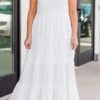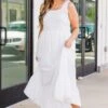 We simply adore this lovely dress! It features a smocked bodice and a classic color, making it the perfect choice for a bachelorette party or any special occasion! With its flattering design, this dress is sure to turn heads and keep you comfortable all day long!