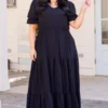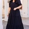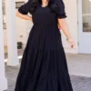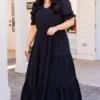 We are so in love with this gorgeous dress! It features a flowy fit, making it perfect for a walk in the park or a day at the beach! Its classic black color is sure to turn heads and add a touch of fun to your outfit!