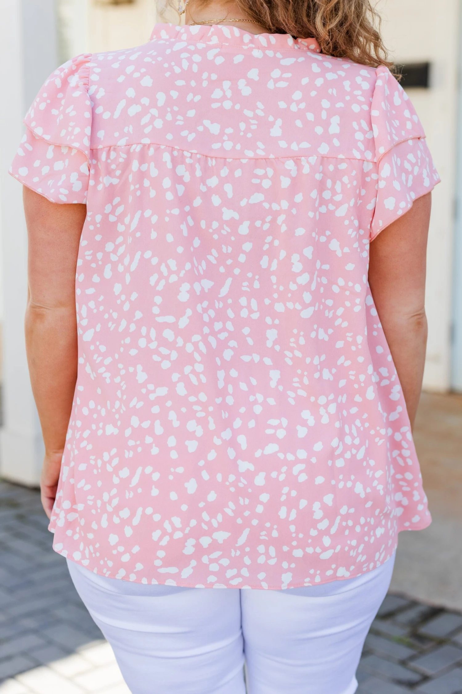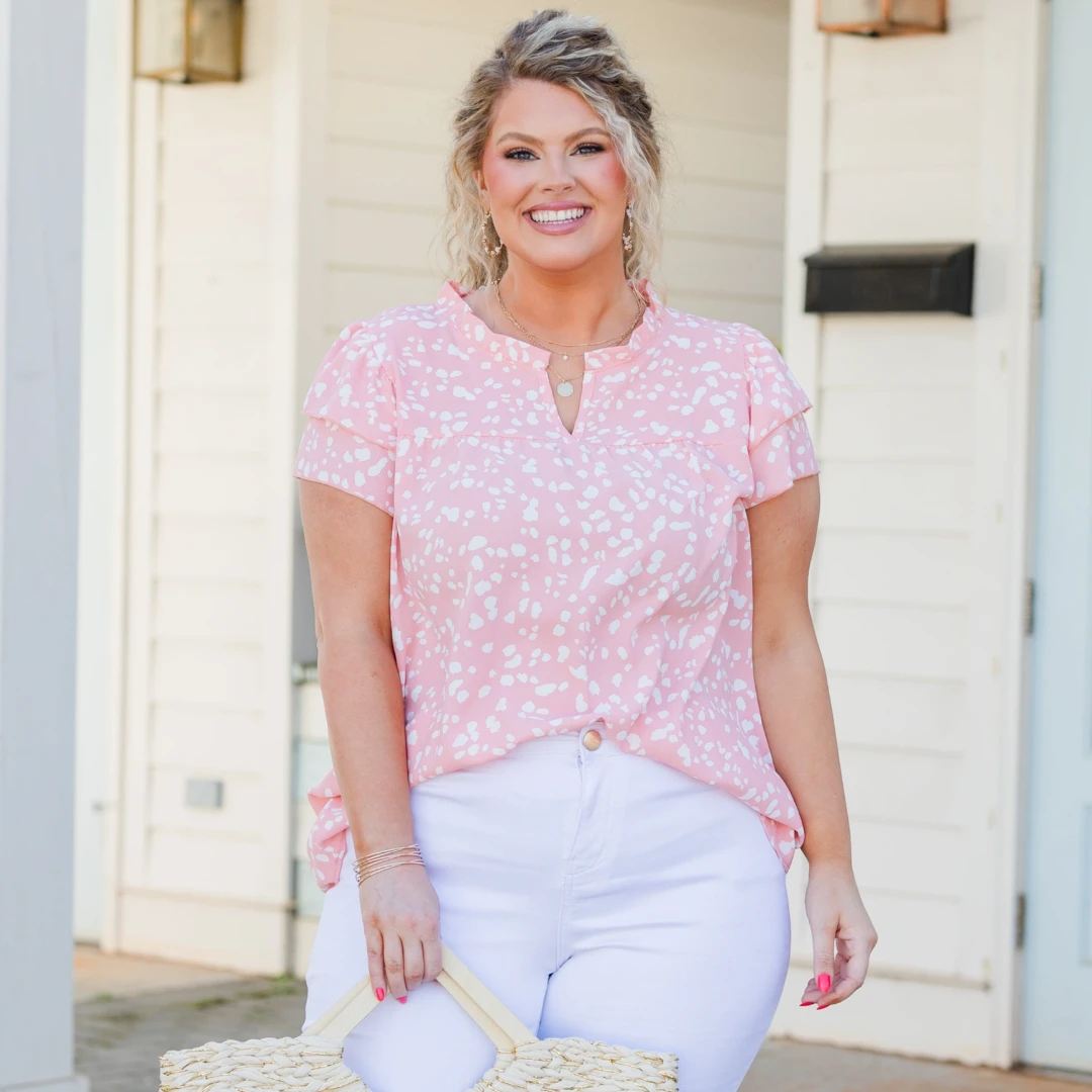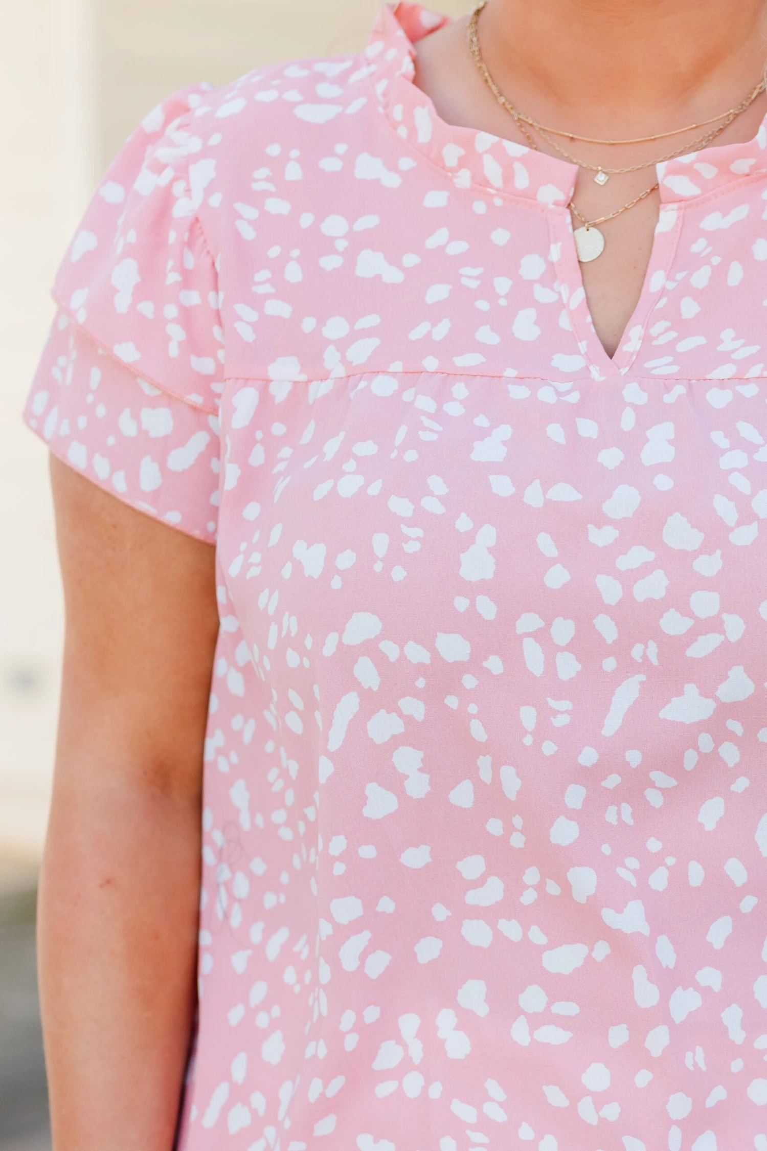 We simply adore this top! This trendy top features a stylish leopard pattern and feminine ruffle detailing! Its pretty pink color adds a pop of color to any outfit! Perfect for a day in the office or a day out, this top is a versatile and fashionable addition to any wardrobe!