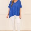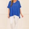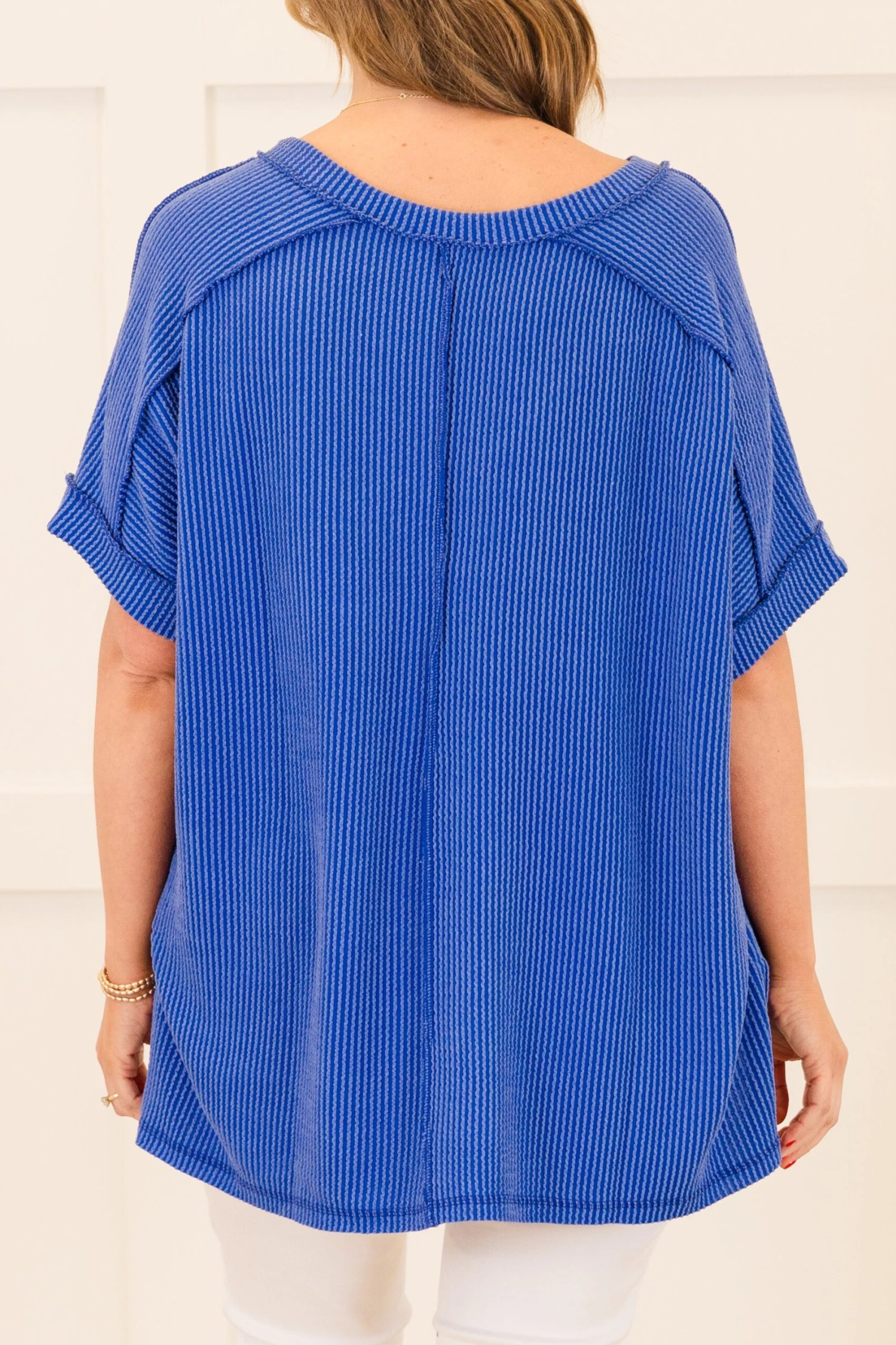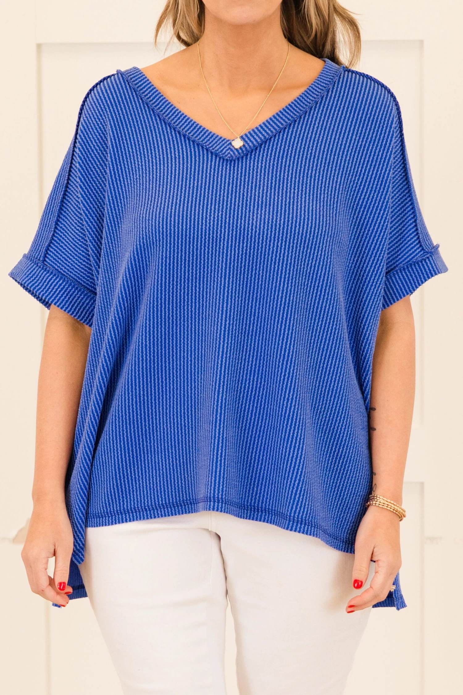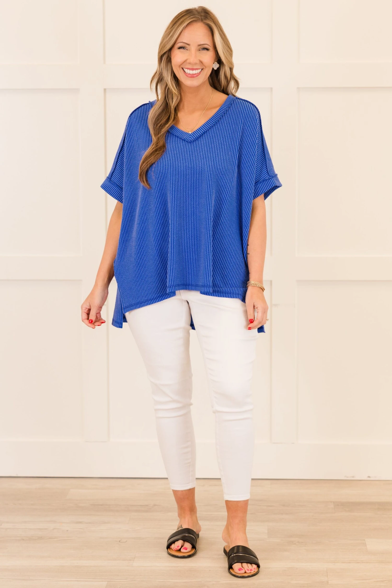 This top is a must-have addition to any wardrobe! Featuring a playful corded rib design, short sleeves, a stylish hi-low hemline and v-neck, this bright blue top adds a touch of fun to your everyday look! Perfect for any occasion, it’s the ultimate blend of comfort and style!