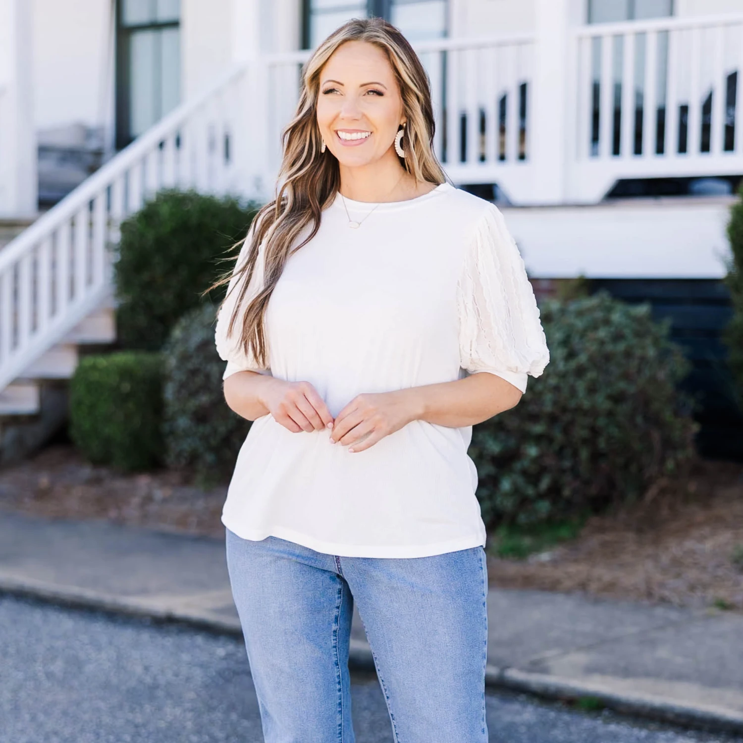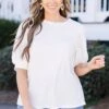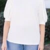 We know that you’ll love this beautiful top! The neutral off white color pairs well with any outfit and the bubble sleeves add a touch of elegance! Mix and match with patterned pants or cute denim for a classic chic look!