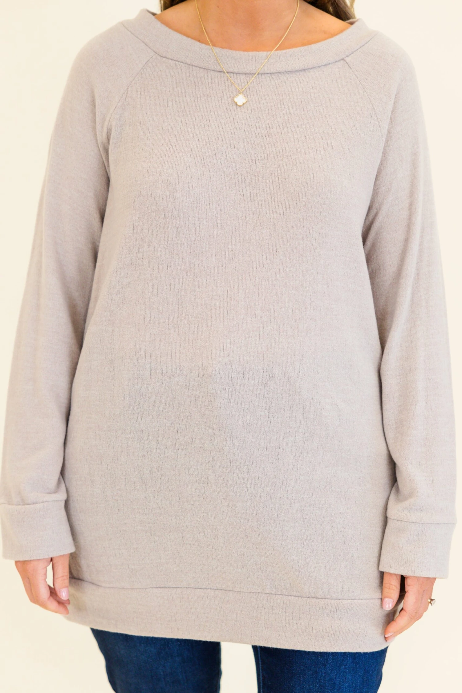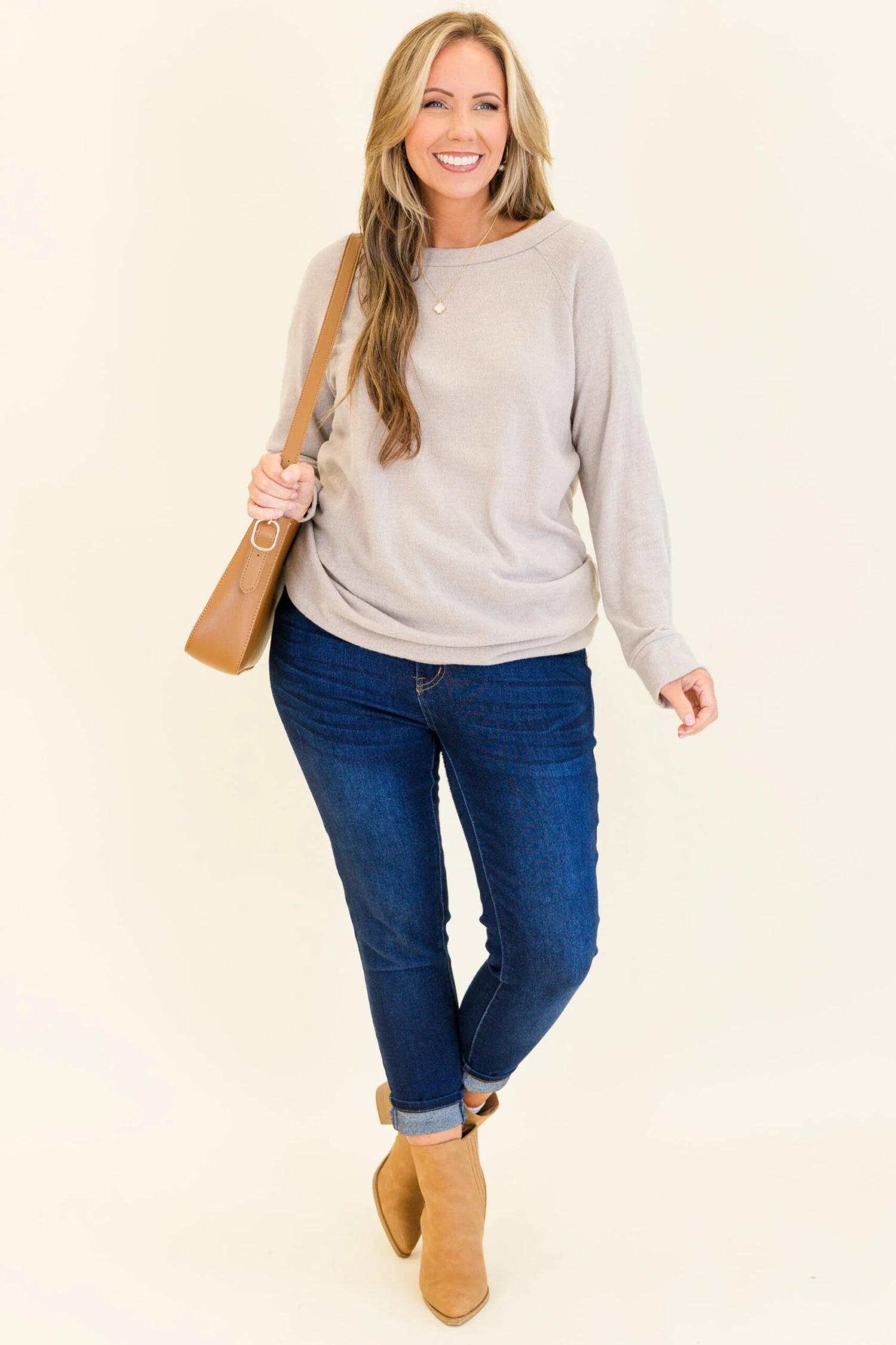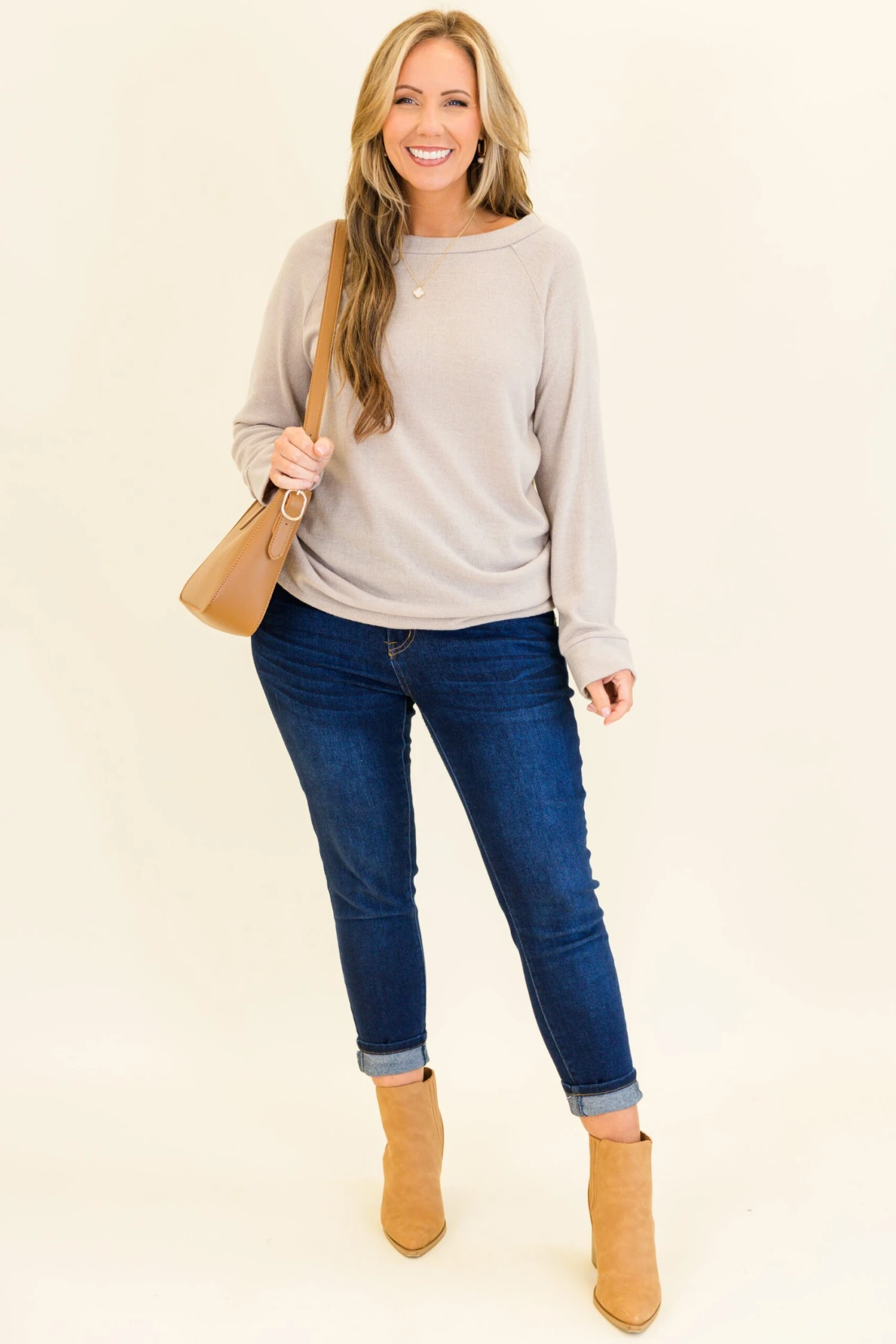 We are SO in love with this top! It is a lightweight top that will add a classic touch to your wardrobe! The taupe color complements your figure for a timeless look! Layer it over a tank and skinnies for a comfortable and stylish outfit!