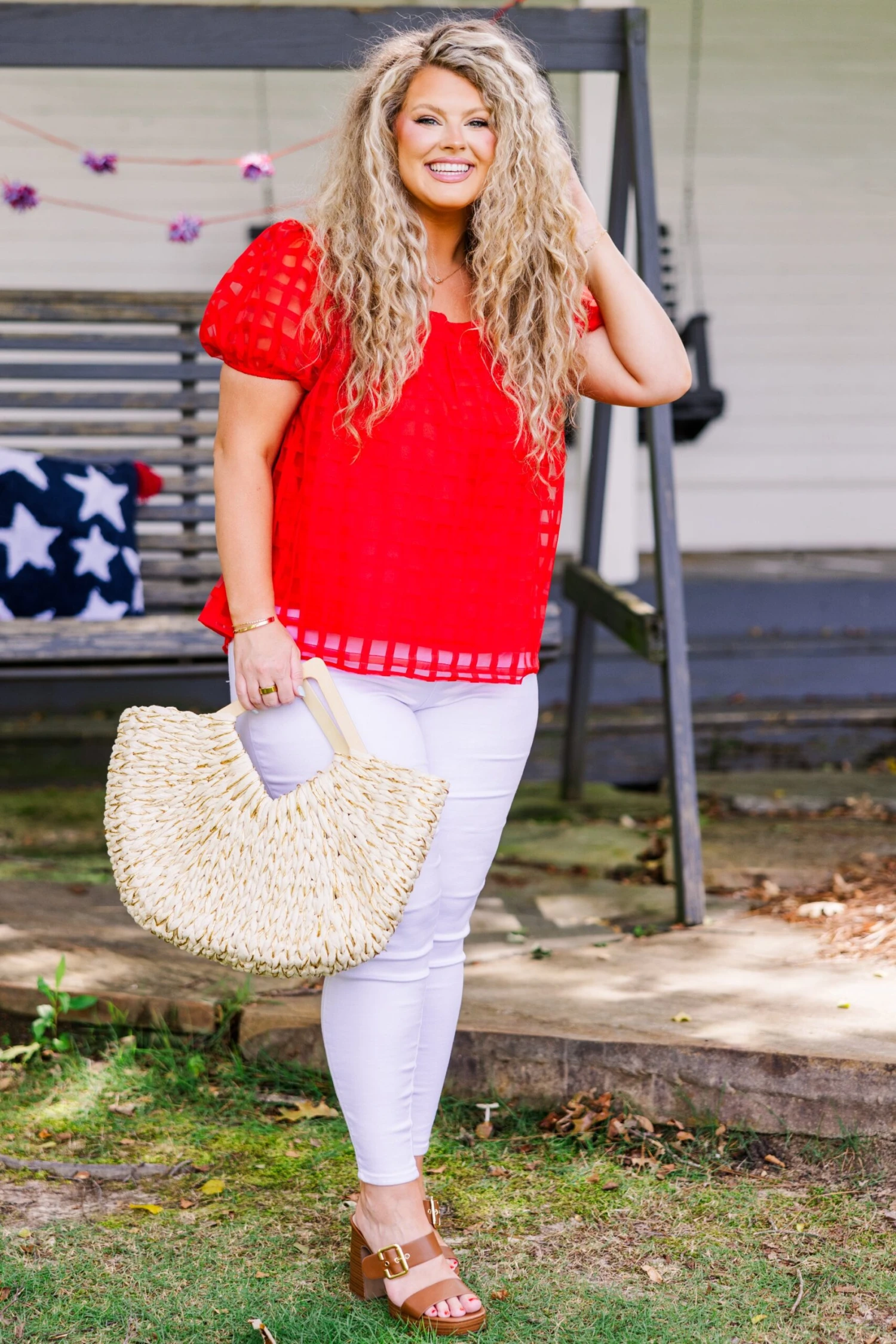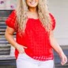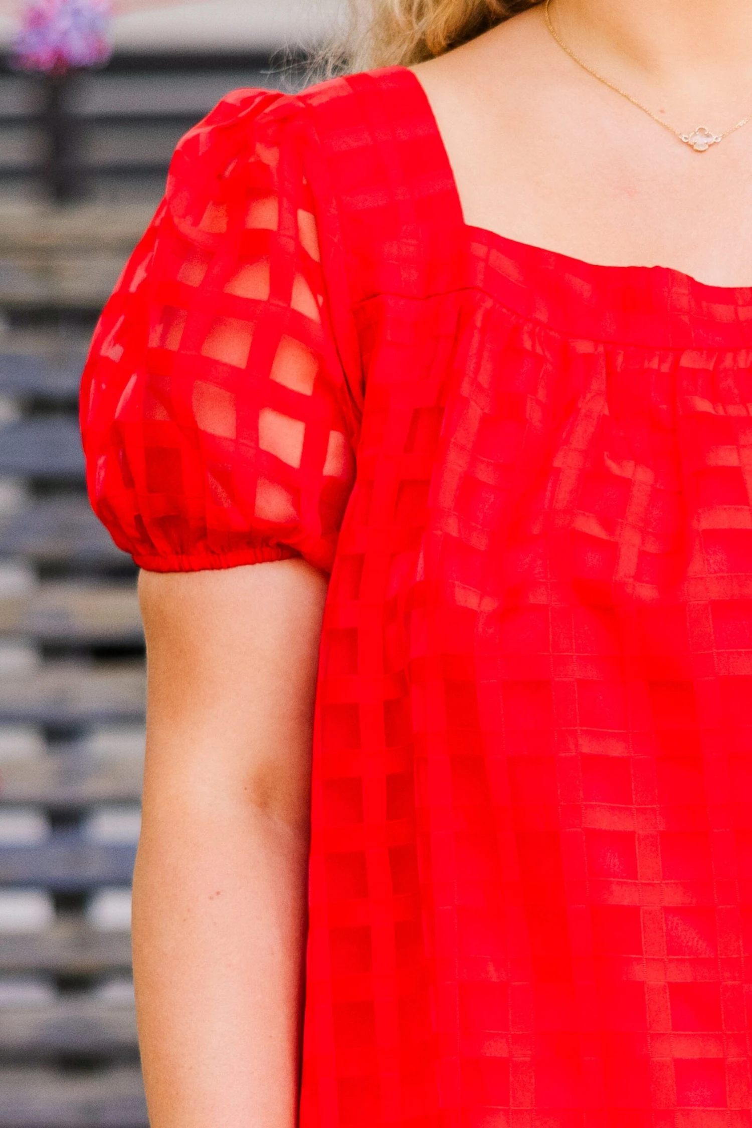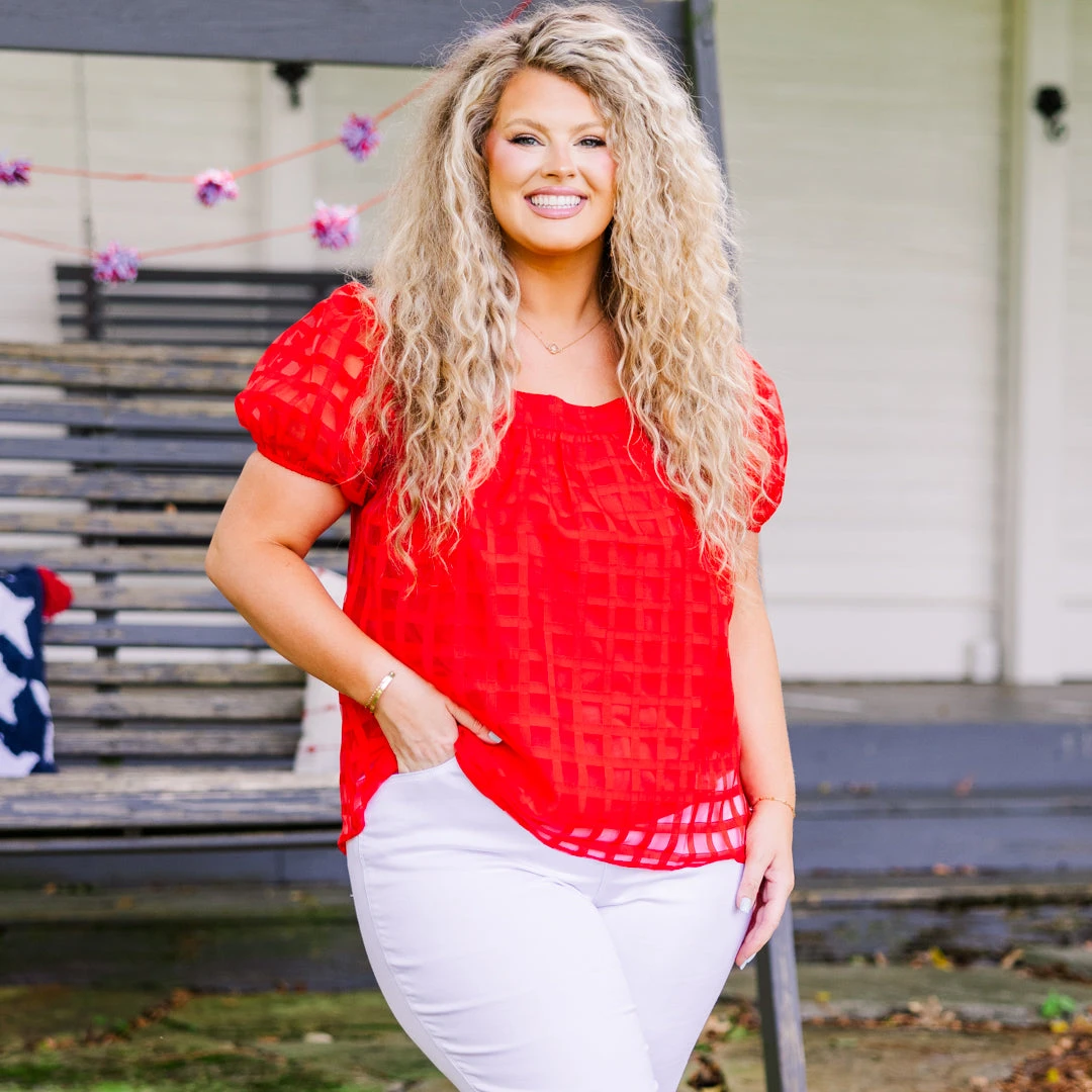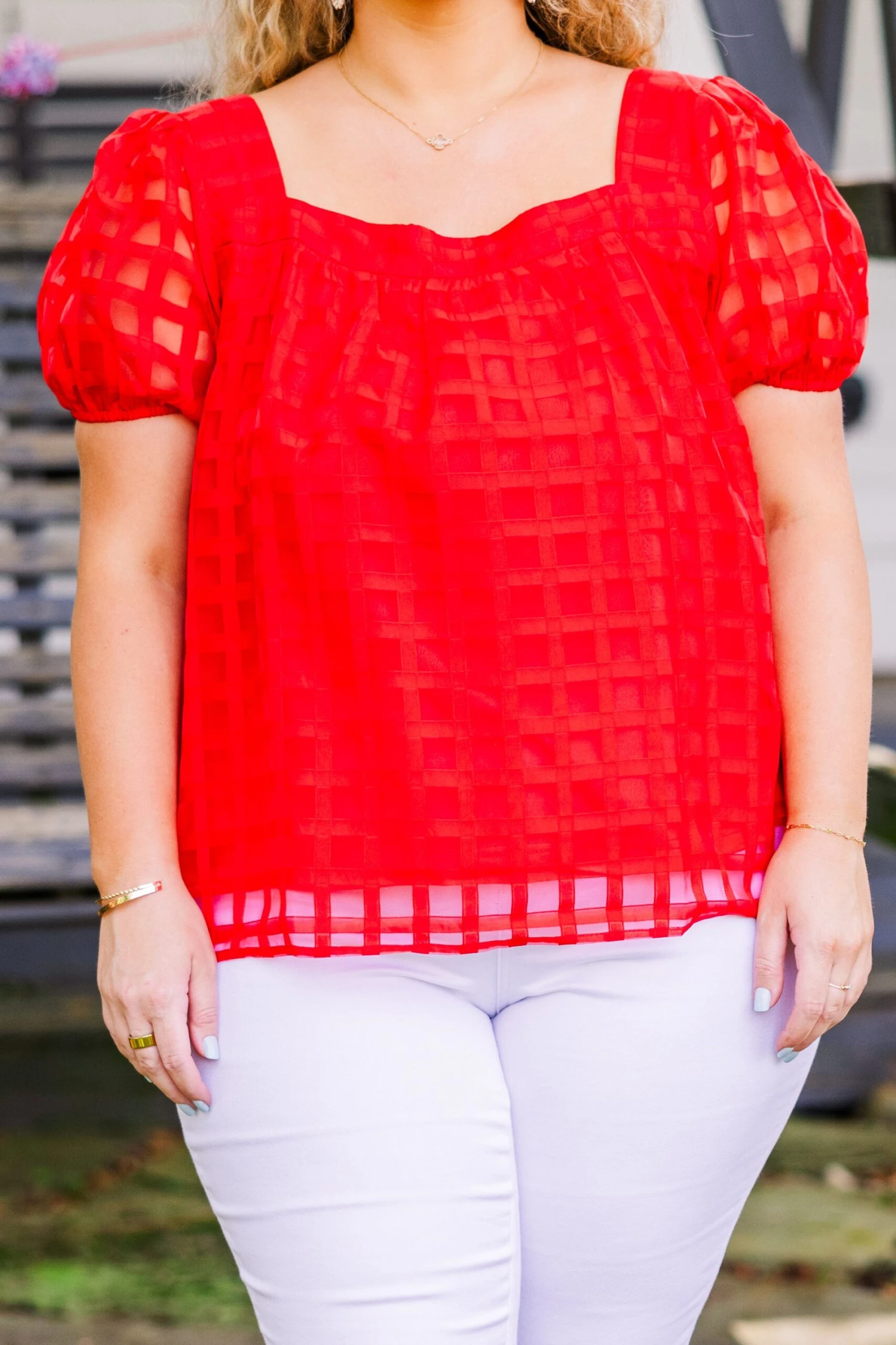 This trendy top features a square neckline and elastic bubble sleeves, all made from a lightweight, bold colored, windowpane fabric! Stay on top of the latest styles with this fashion-forward piece, perfect for any casual outing!