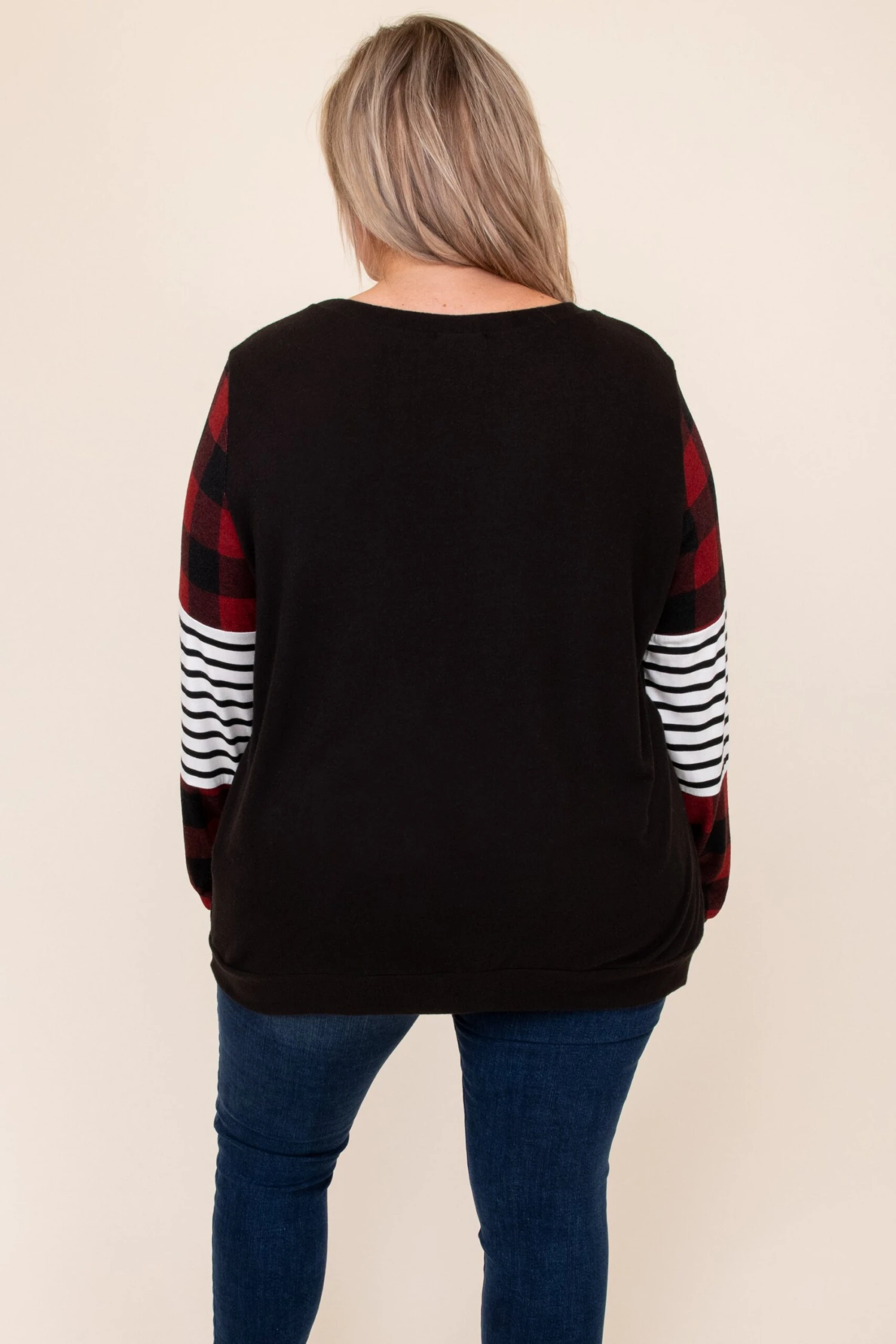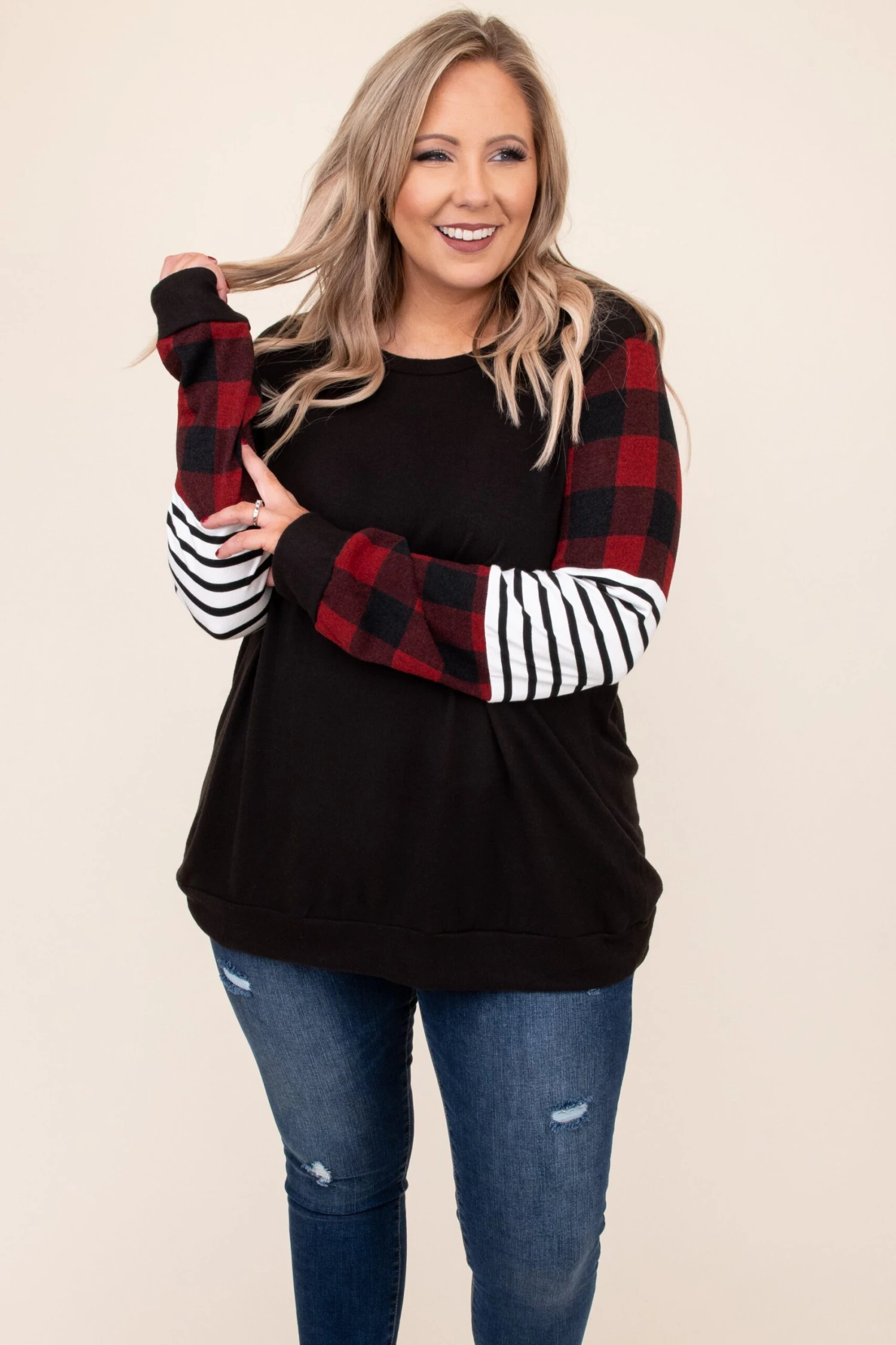 This top was made to wear around town! This top has a classic red plaid and stripe print and a loose, comfy fit that you will love! It is figure-flattering, perfect for all-day wear, and your perfect go-to piece of the season! Toss it on with your fave skinnies and booties for an effortless outfit!
