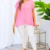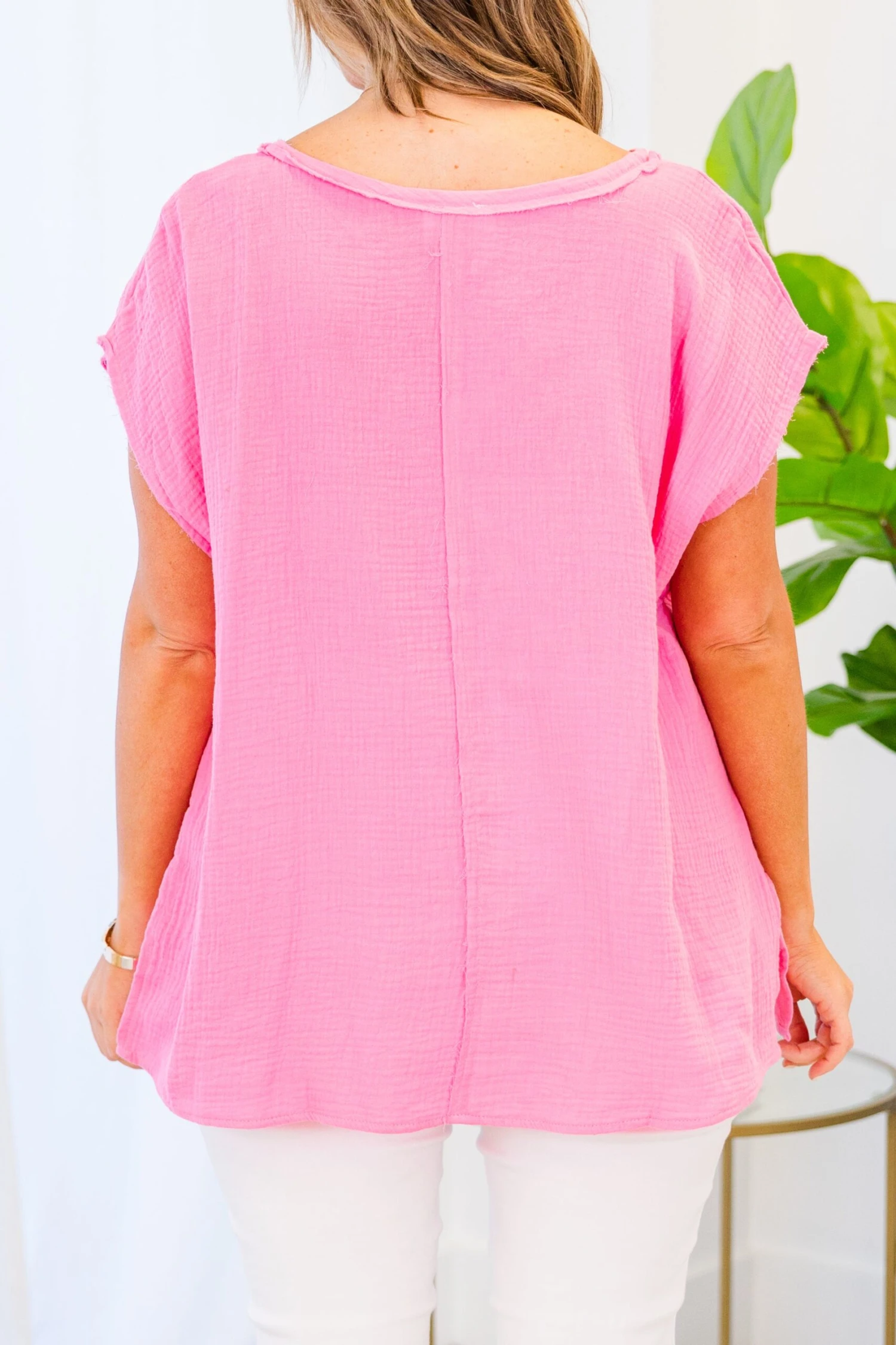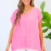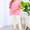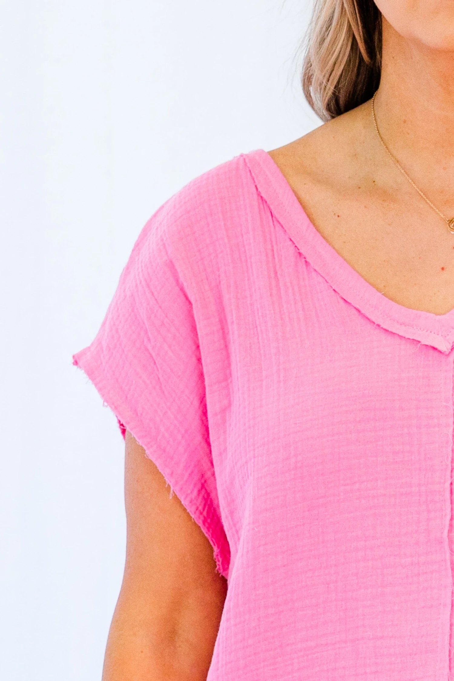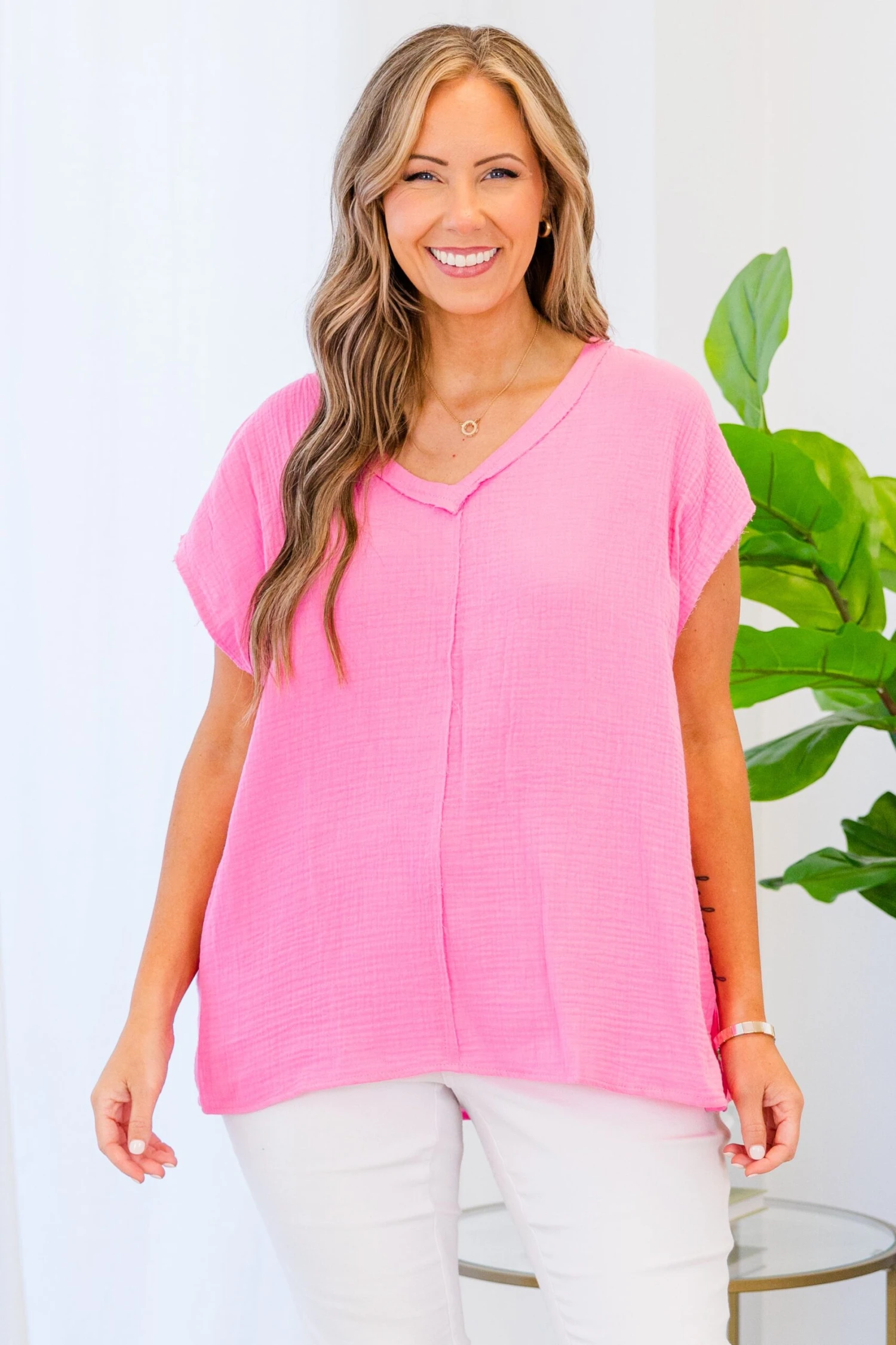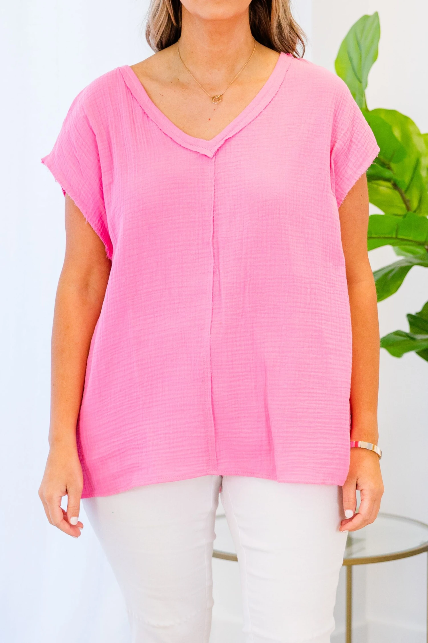 Introducing our Lead With Grace Top in pink cosmos! Crafted from lightweight gauze material and featuring a flattering v-neckline, this top is perfect for any occasion! Pair it with your favorite white or blue denim for a stylish and effortless look!