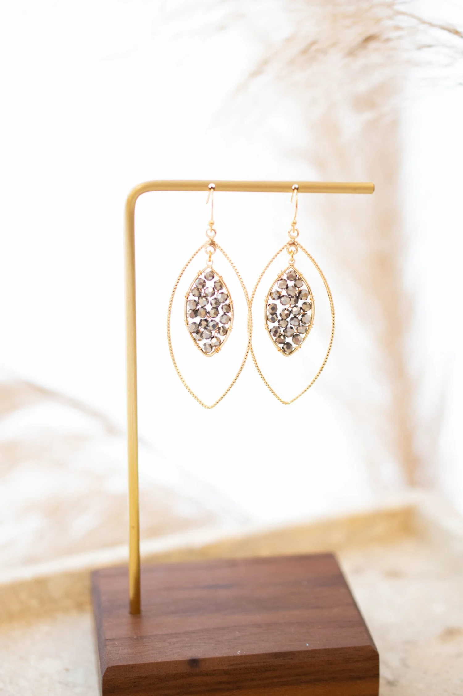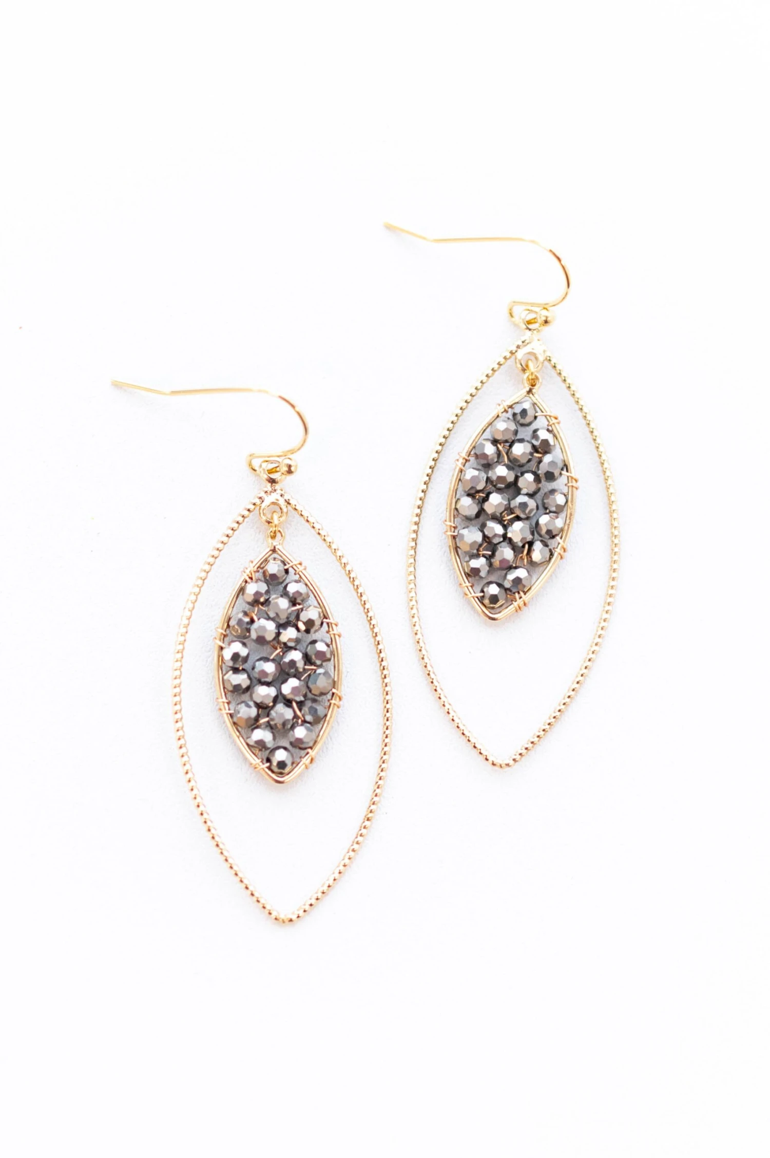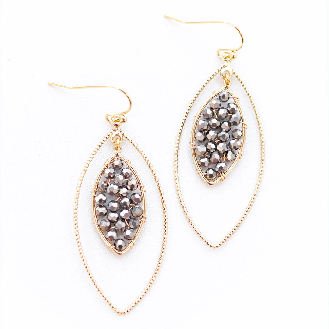 We are in love with these gorgeous earrings! They have a lovely silver gold color with a pretty leaf shape that is so elegant! The dangle style is perfect for any occasion! Style these earrings with a classy dress or cute blouse and pants for an unforgettable look!