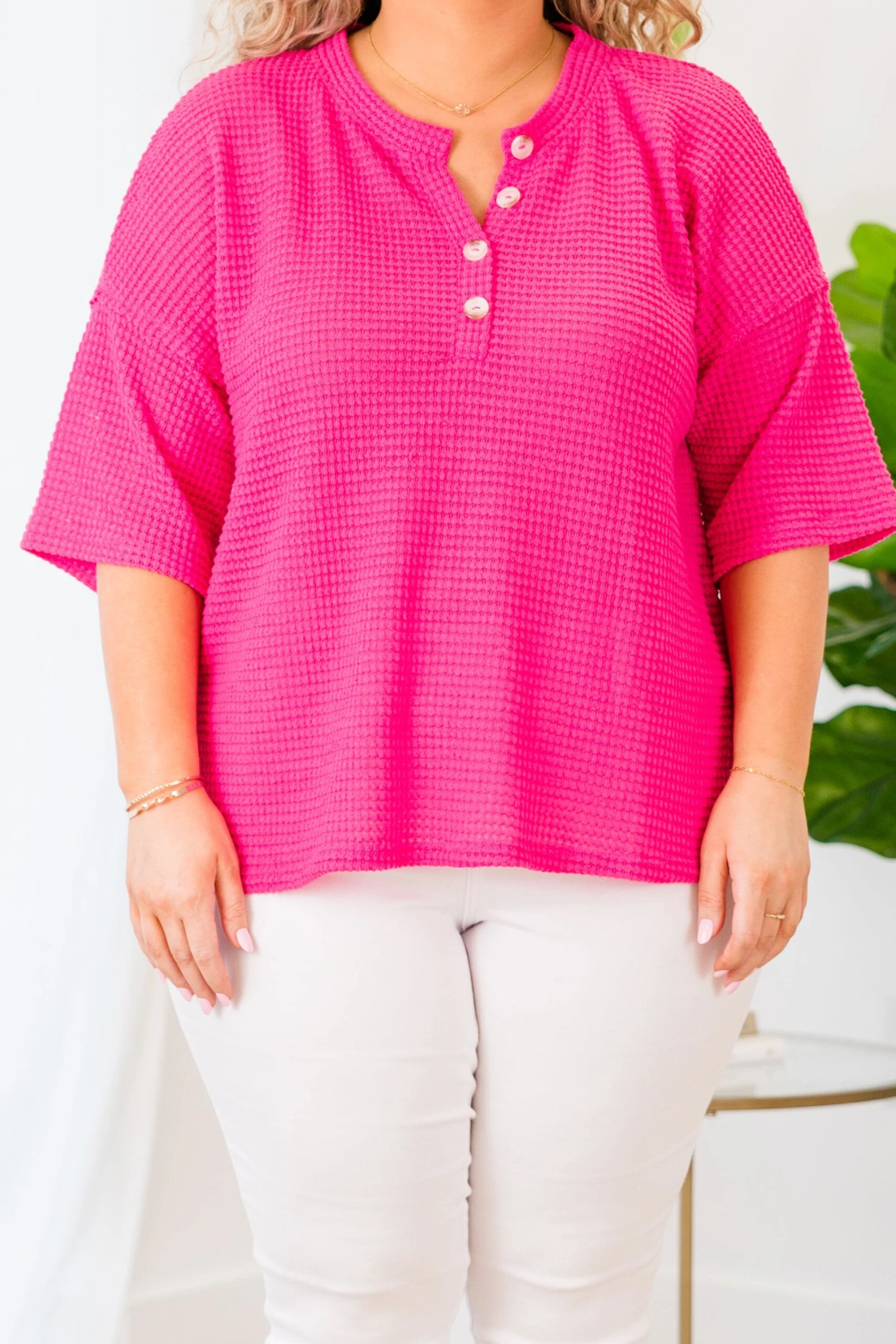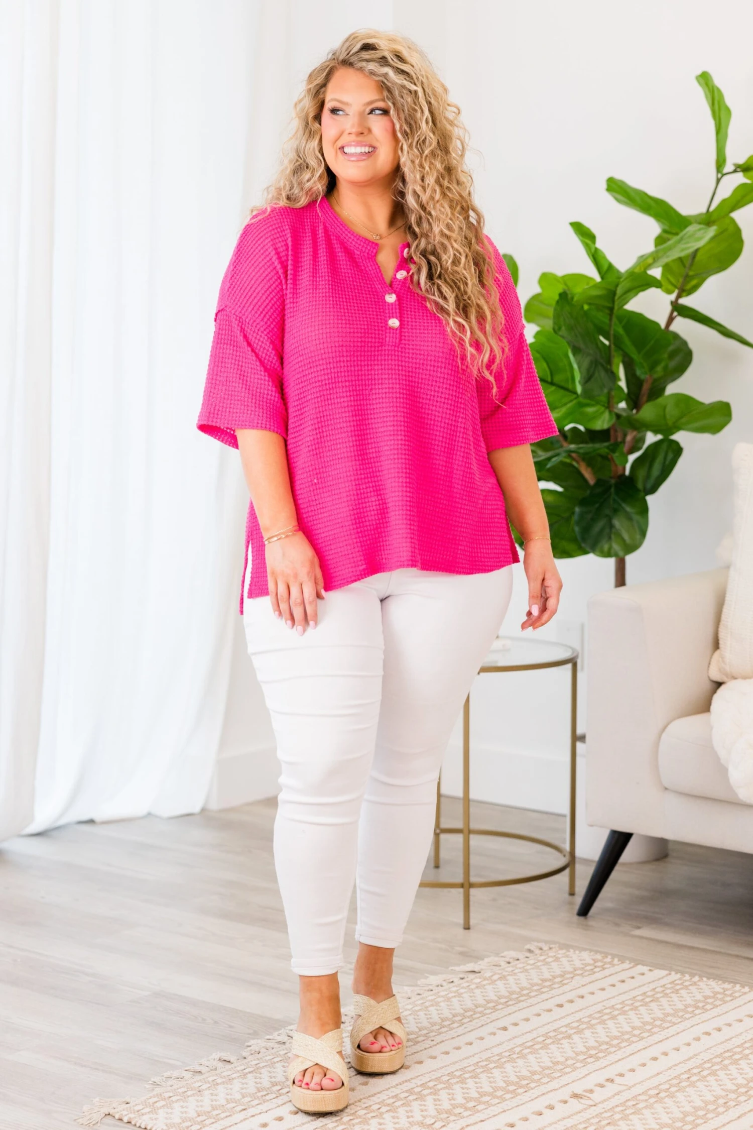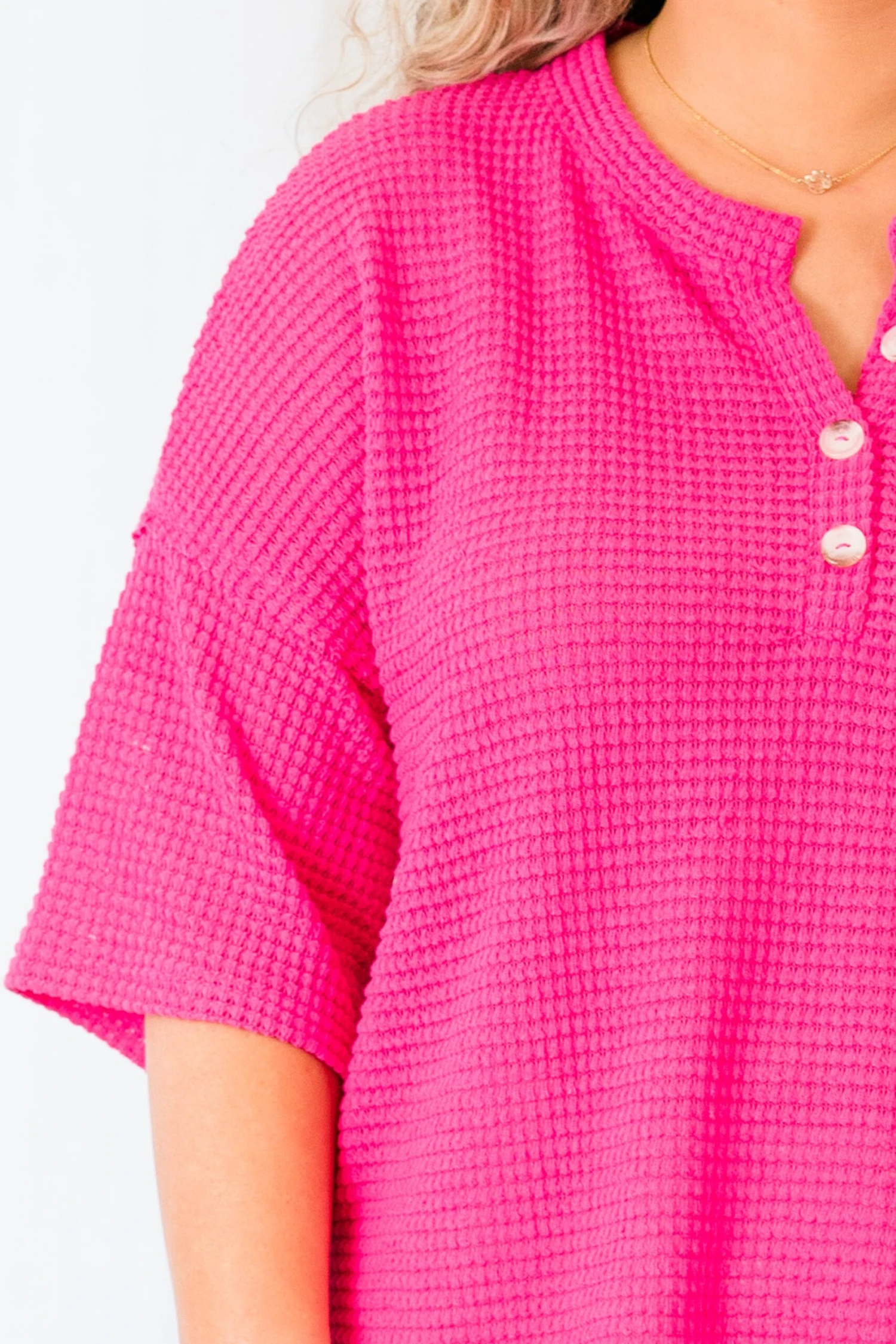 Don’t miss your chance to grab this top! It is must-have addition to your wardrobe! The light weight, diamond lattice design is so classic, while the hot pink color adds a classic touch to your wardrobe! Pair this cutie with a tank and cute denim for a sassy chic look!