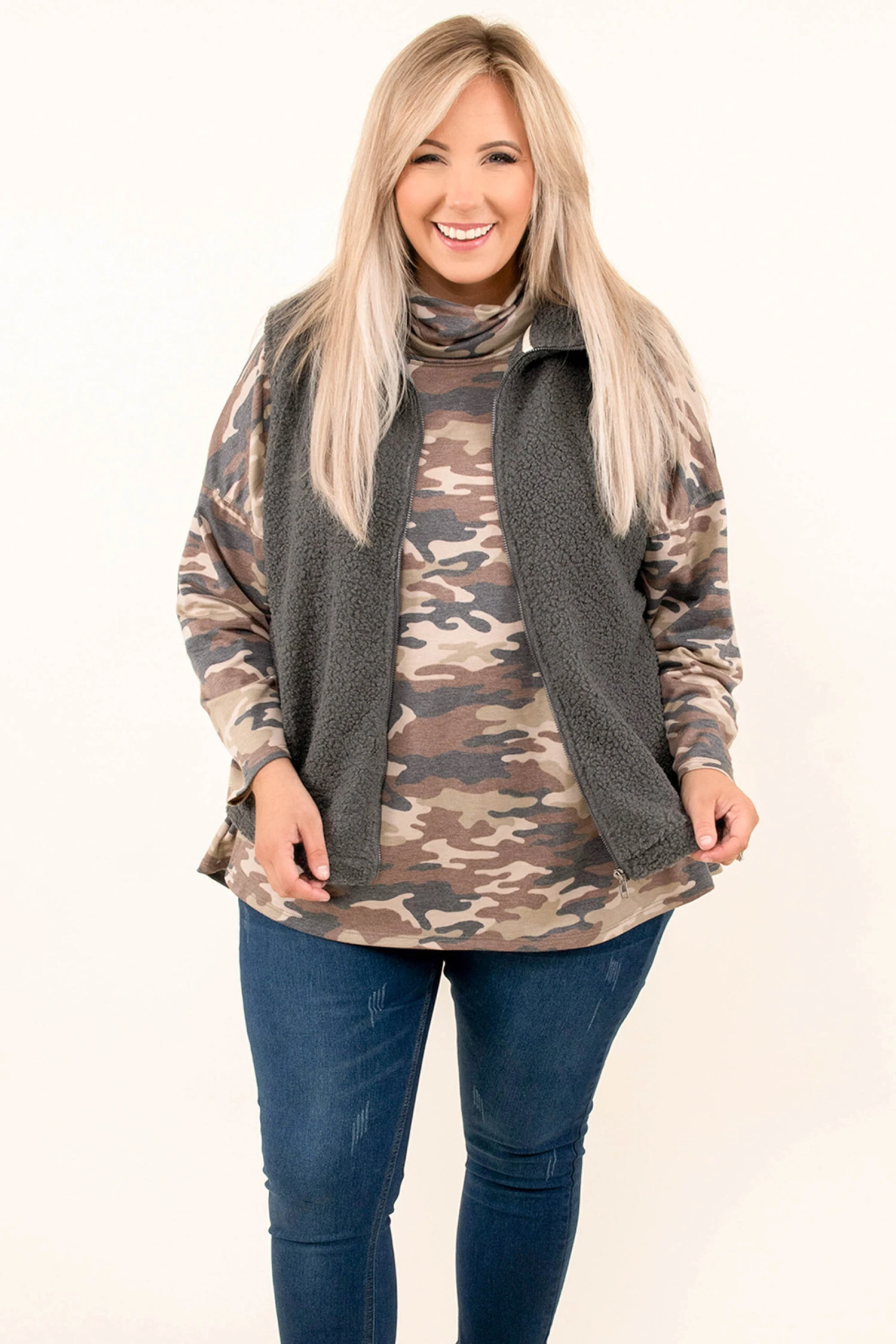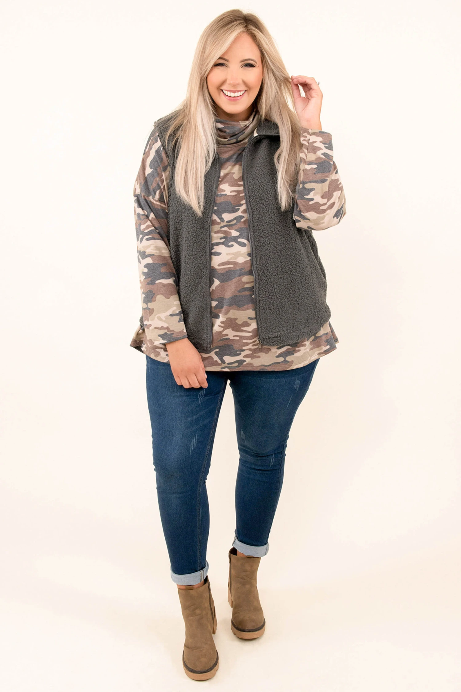 Don’t leave without adding this vest to your cart! The slate gray color is easy to dress up or down and can be styled with everything in your wardrobe! It’s comfortable, figure-flattering, and has a trendy design you can wear all season long! Pair this vest with a patterned top and skinnies for an effortlessly trendy look!