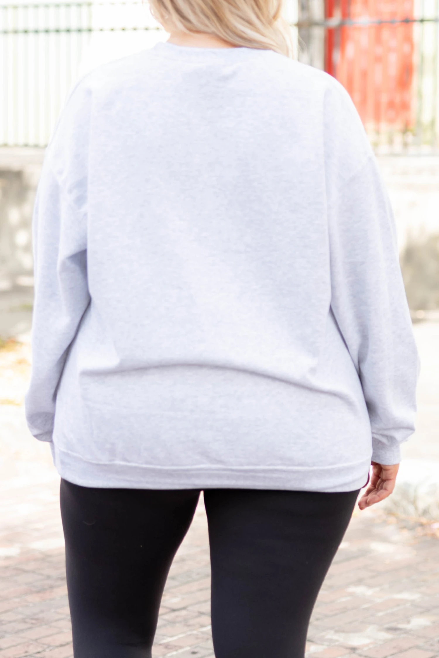 This sweatshirt has our hearts! This trendy top has a simple graphic design with neutral colors you can pair with everything in your wardrobe! It’s comfortable for all-day wear, has a flowy fit to flatter your figure, and is perfect for the season! Style this top with skinnies or shorts for a fun and flirty look!