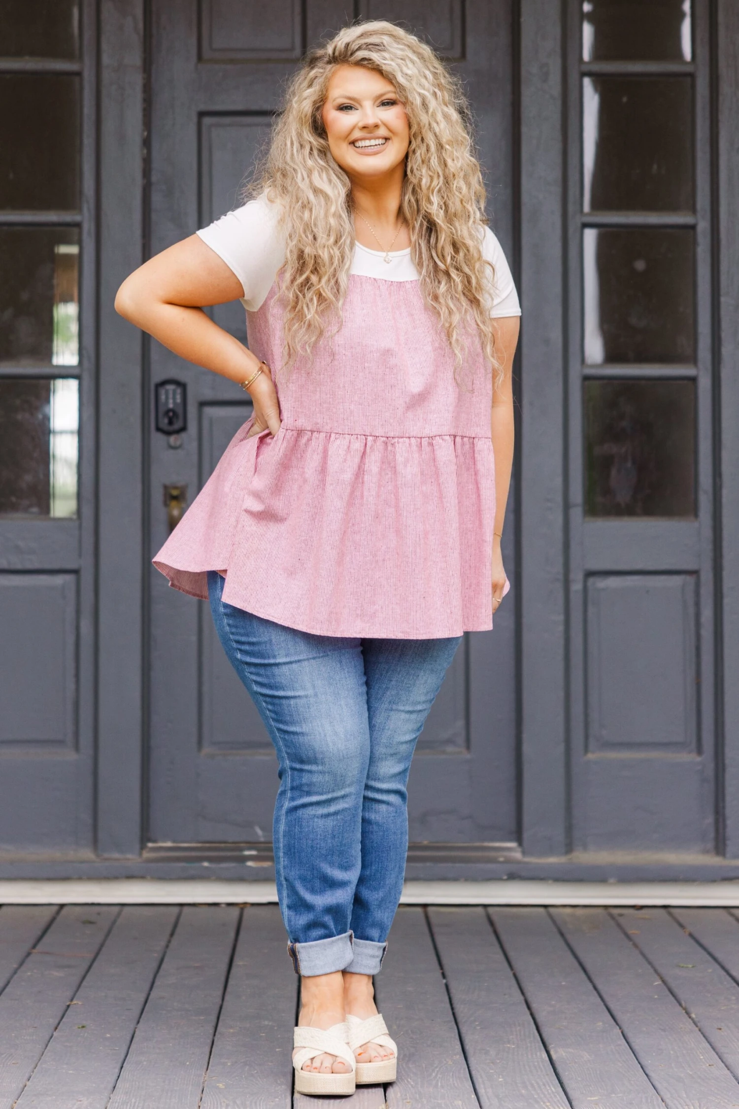 This top is simply breathtaking! It features a bold red, flattering babydoll design and stylish stripe pattern that is perfect for the season! Perfect for a casual day out on the town, this top will add a touch of sass to any ensemble!