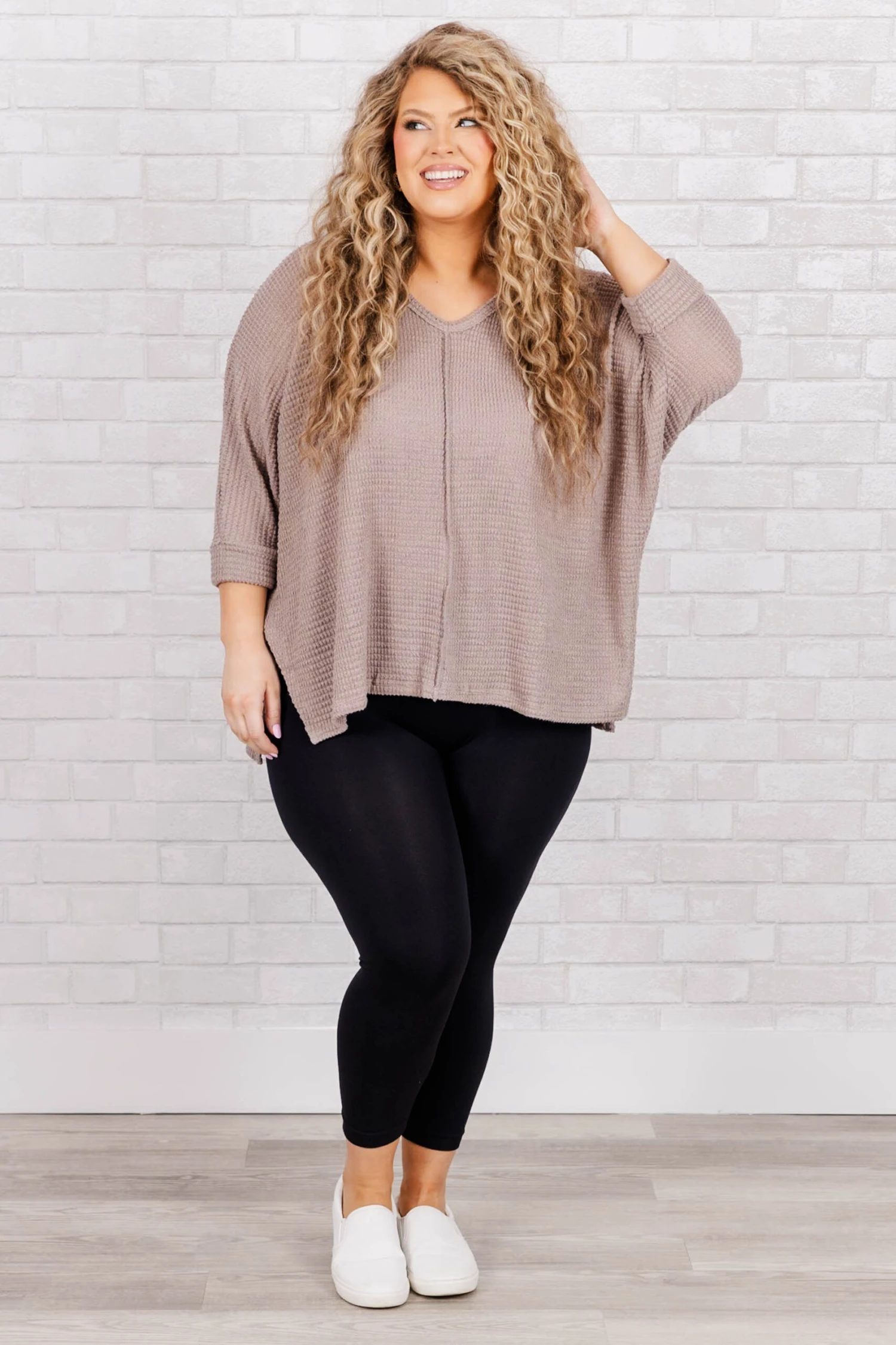 You don’t have to think twice about grabbing this cute! This lightweight top features a light mocha color, perfect for the season, and a textured design that is so sweet! Ideal for casual occasions all throughout the season!