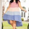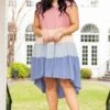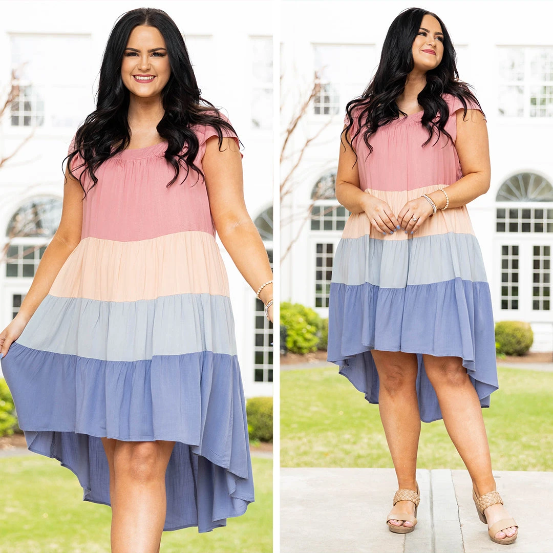 Get ready for this beauty to grace your wardrobe! This dress has a beautiful multi color with a colorblock design that is perfect for the season! The flutter sleeves and flowy fit are great for any occasion! Style this dress with some heels and cute accessories for a sassy chic look!
