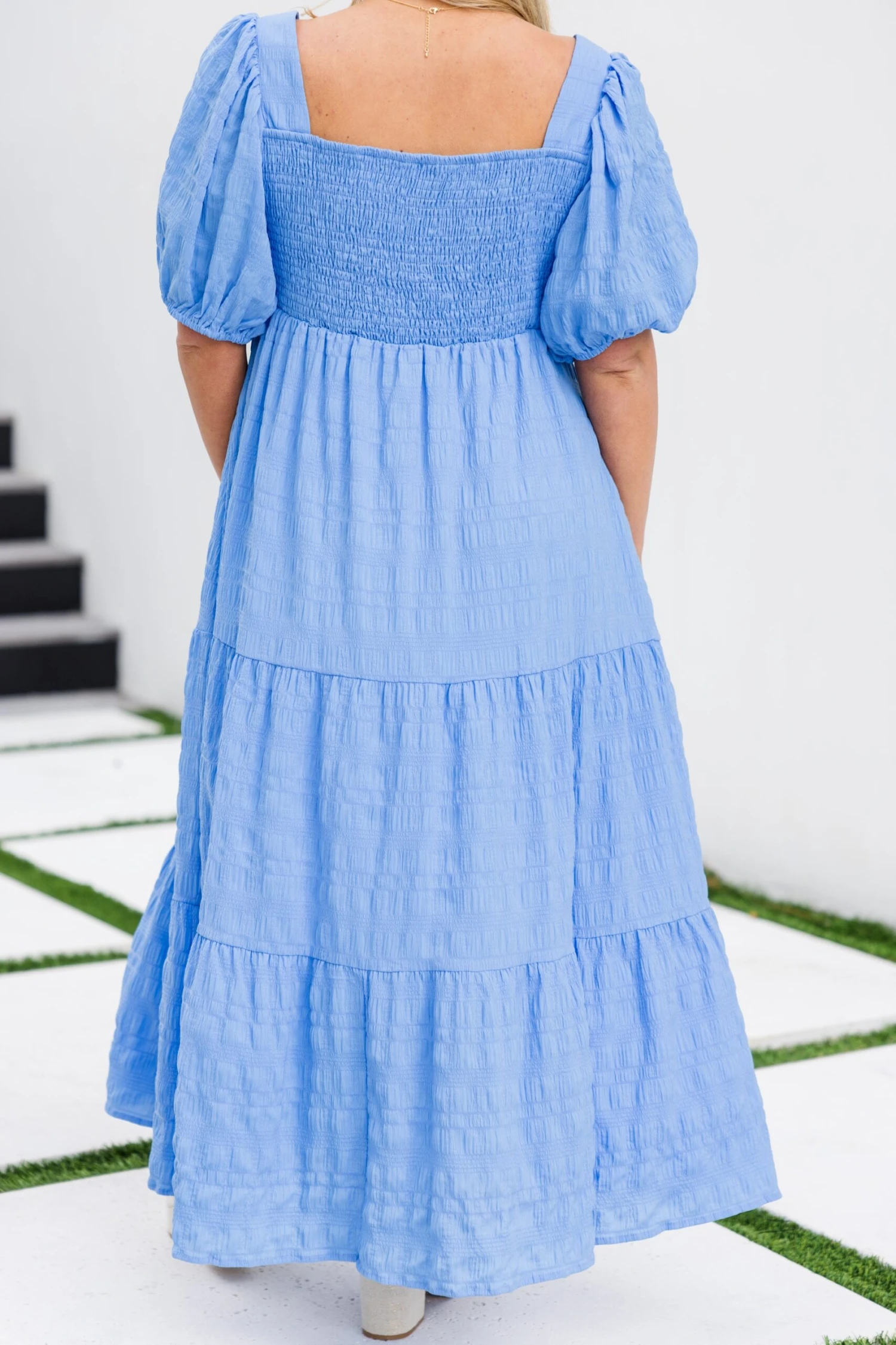 Enjoy the perfect getaway in this mesmerizing dress! It is the perfect choice for any brunch date! Its monochromatic stripe pattern and lovely light blue color make it a stylish and feminine option! The bubble sleeves and flowy fit add a touch of charm, while providing a comfortable and flattering look! Get ready to turn heads in this must-have dress!